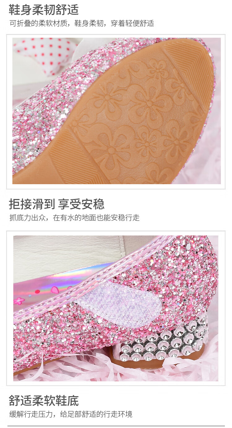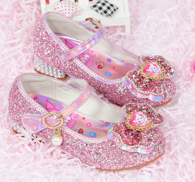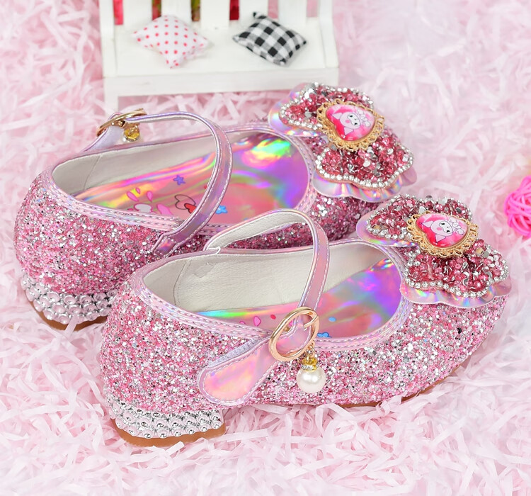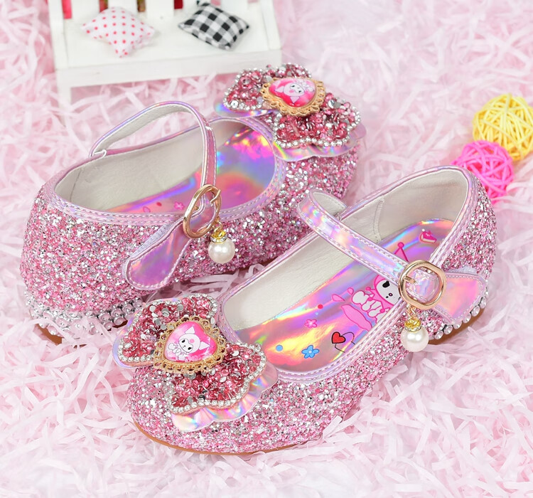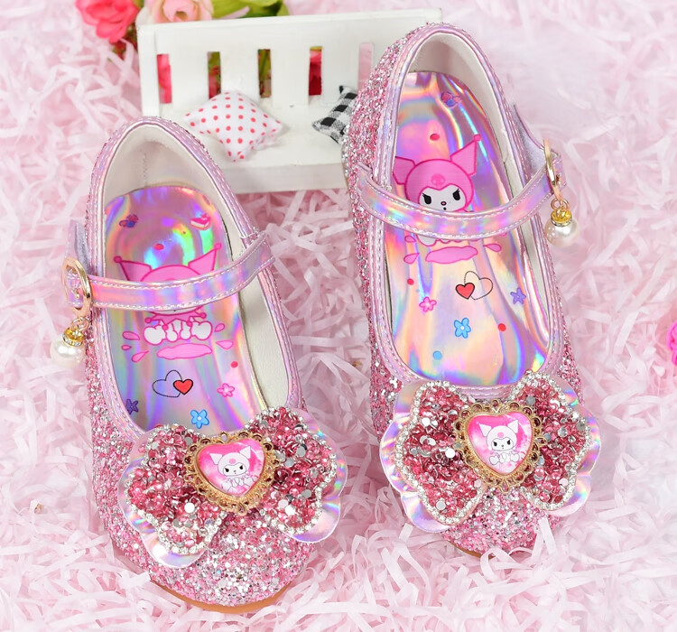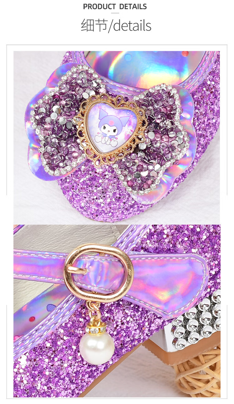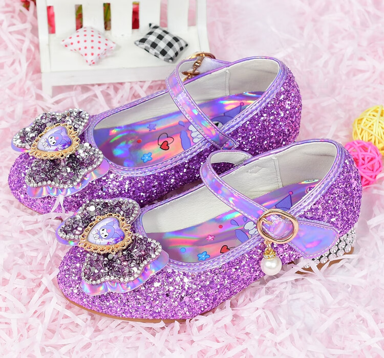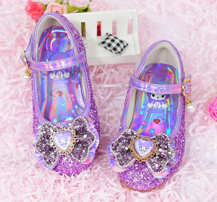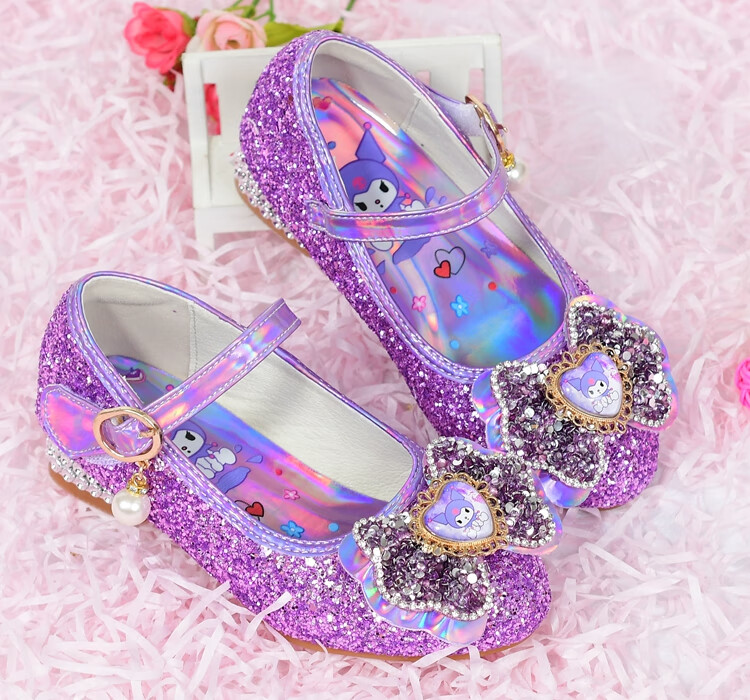 G.duck Girls High Heels Spring and Autumn Kuromi Children's Shoes Children's Purple Princess Crystal Soft Sole Shoes Children's Leather Shoes Purple Size 26 / Inner Length 16.8cm