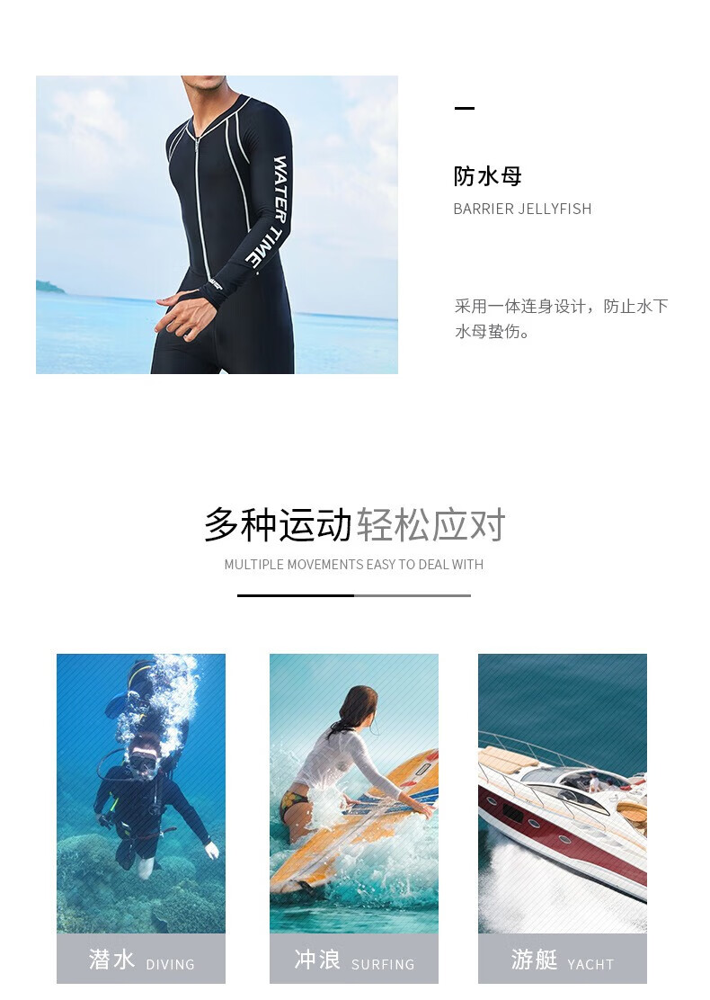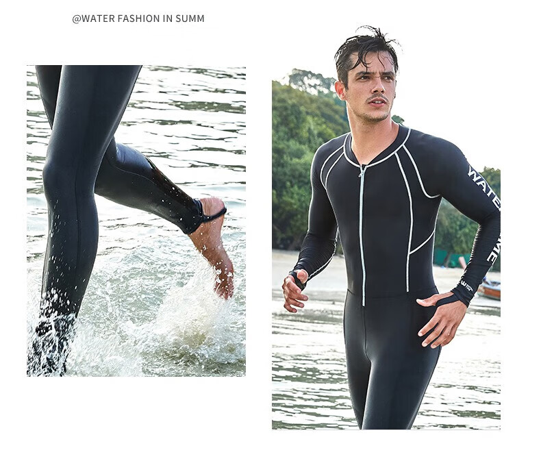 WATERTIME wetsuit, men's jellyfish suit, snorkeling suit, sun protection, waterproof, cold-proof one-piece long-sleeved swimsuit, swimming and surfing equipment, black M (height 165-170, weight 55-60kg)