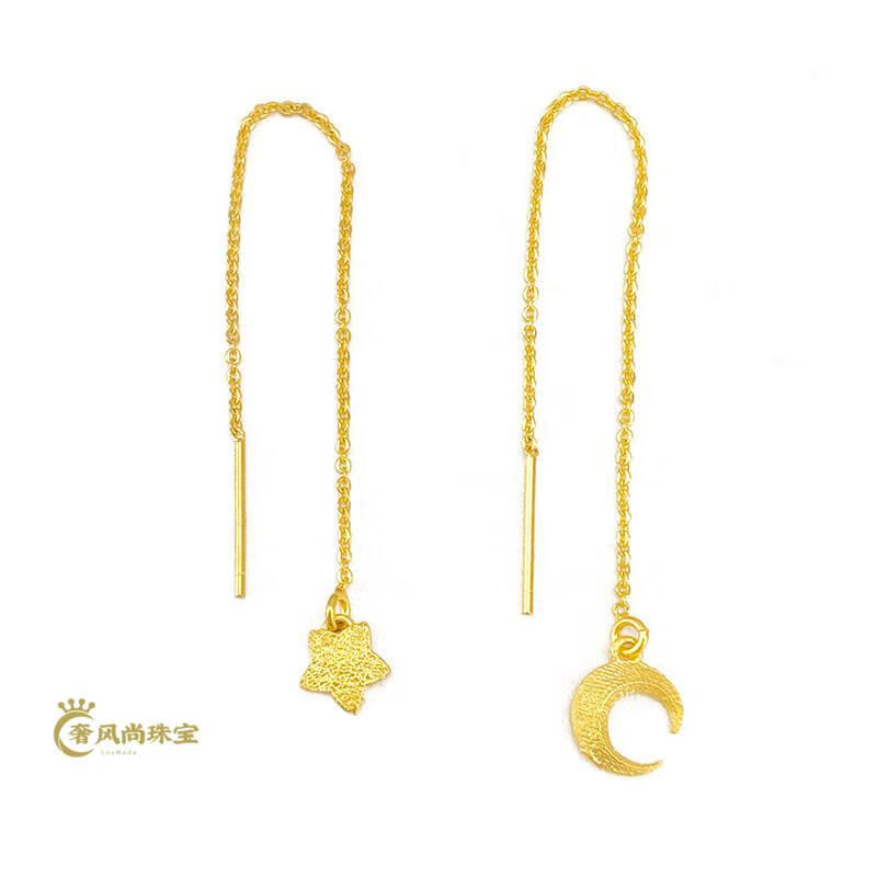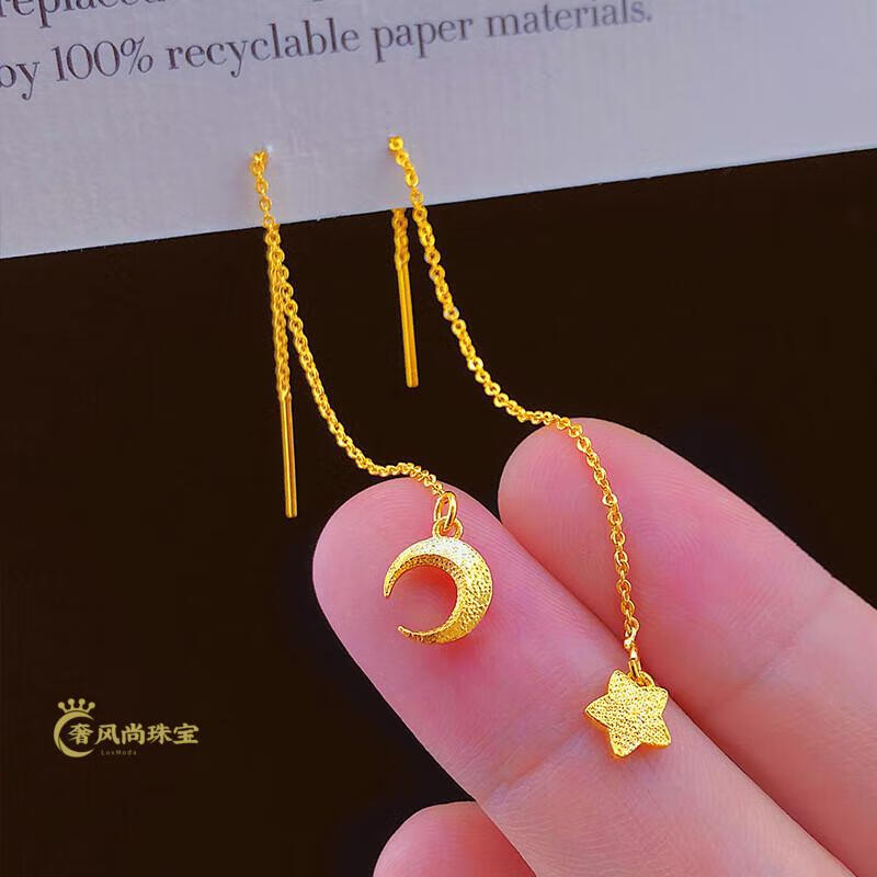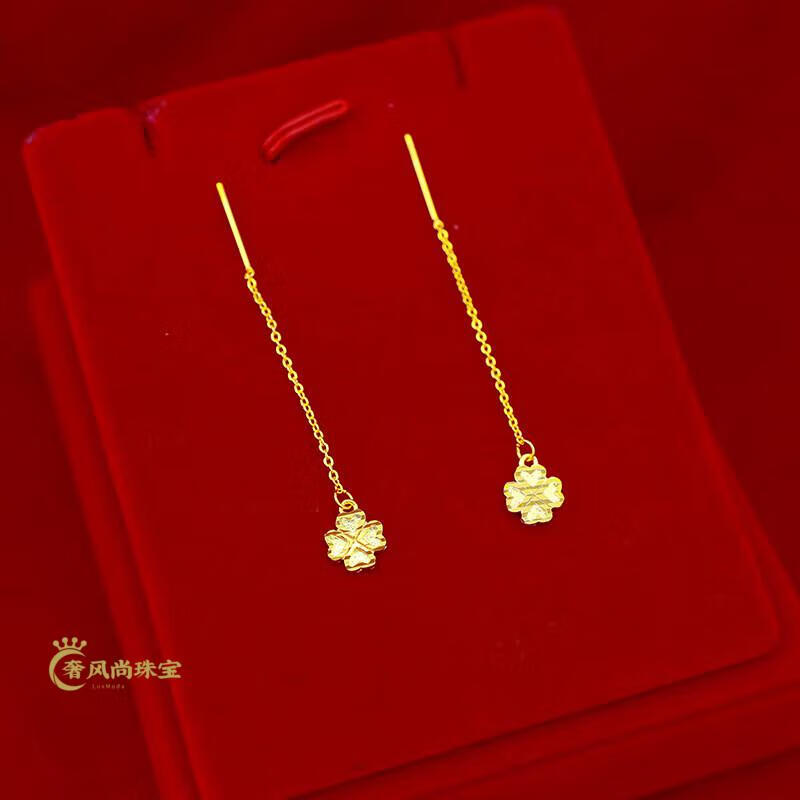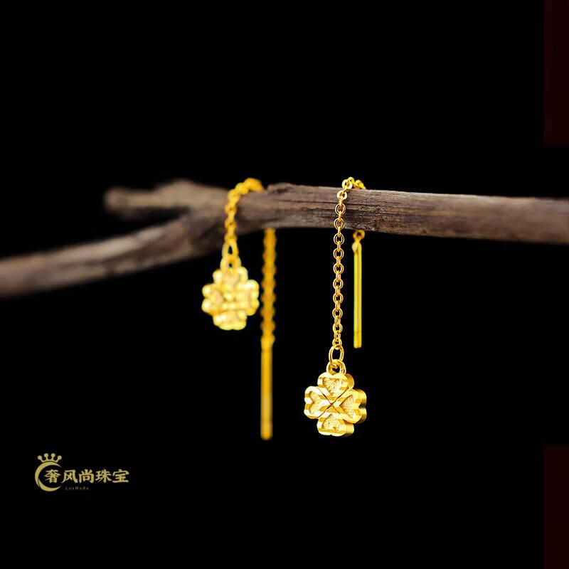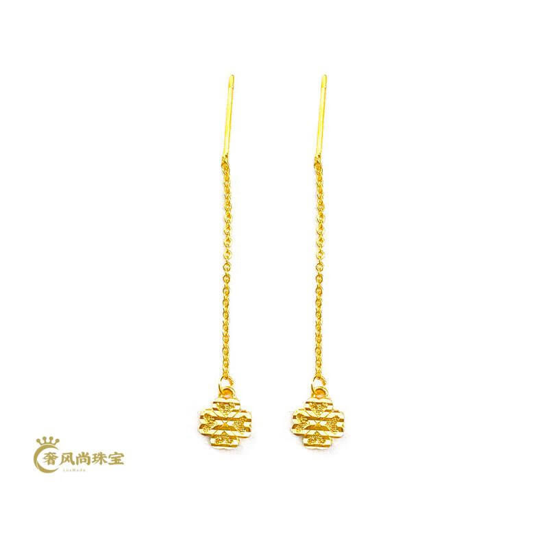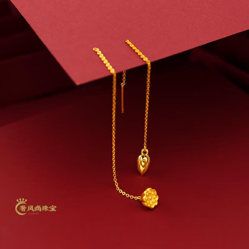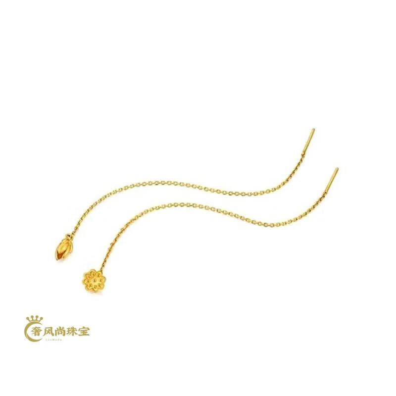 Fat Donglai's same style 18K gold tassel new gold women's model 999 pure gold 3d hard gold lotus lotus mesh of two generations Xingyue gold ear wire pair 1.06g