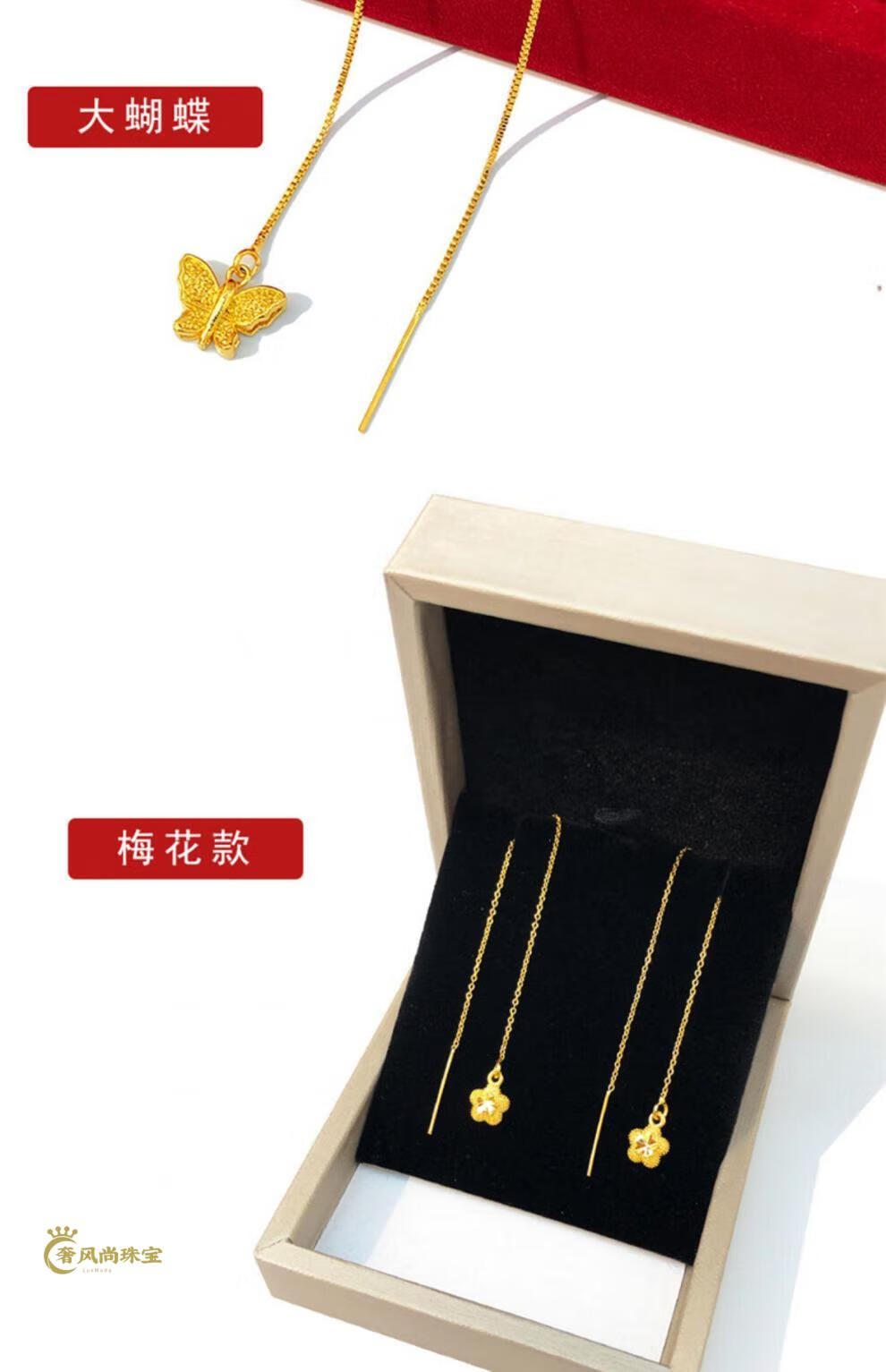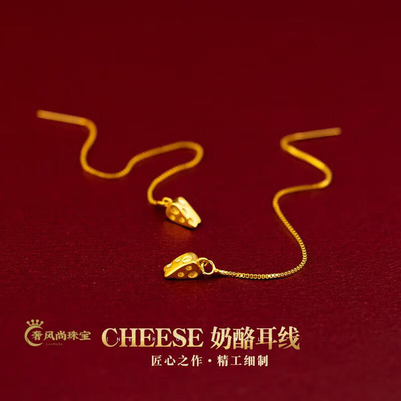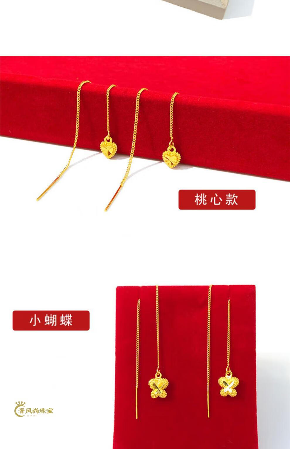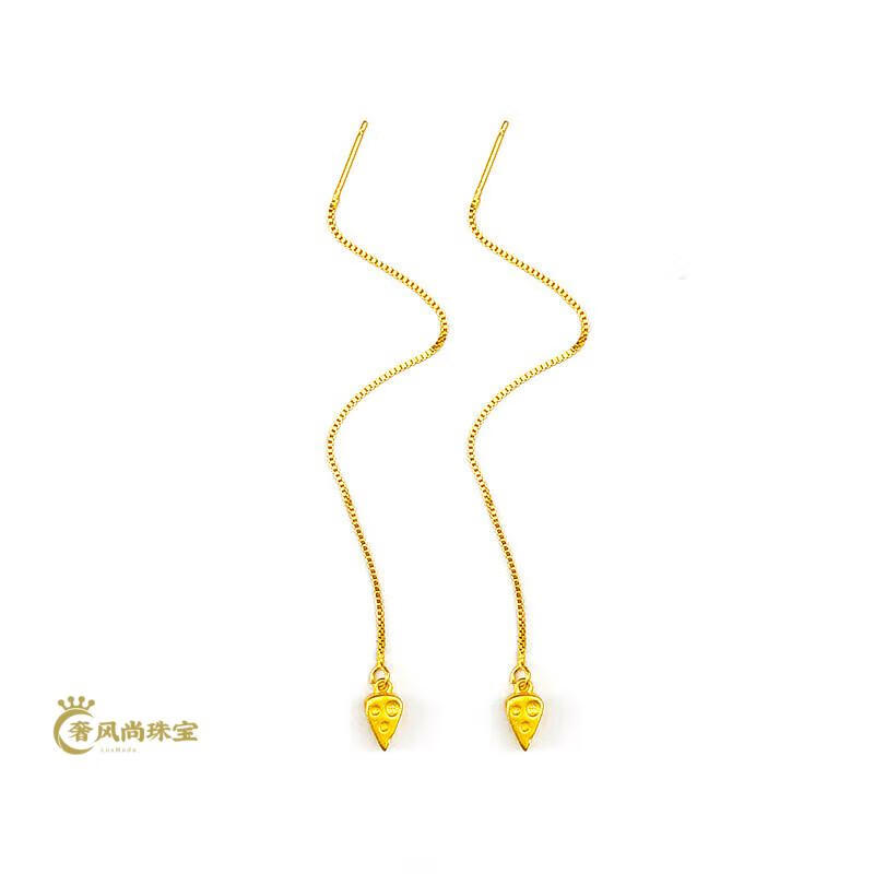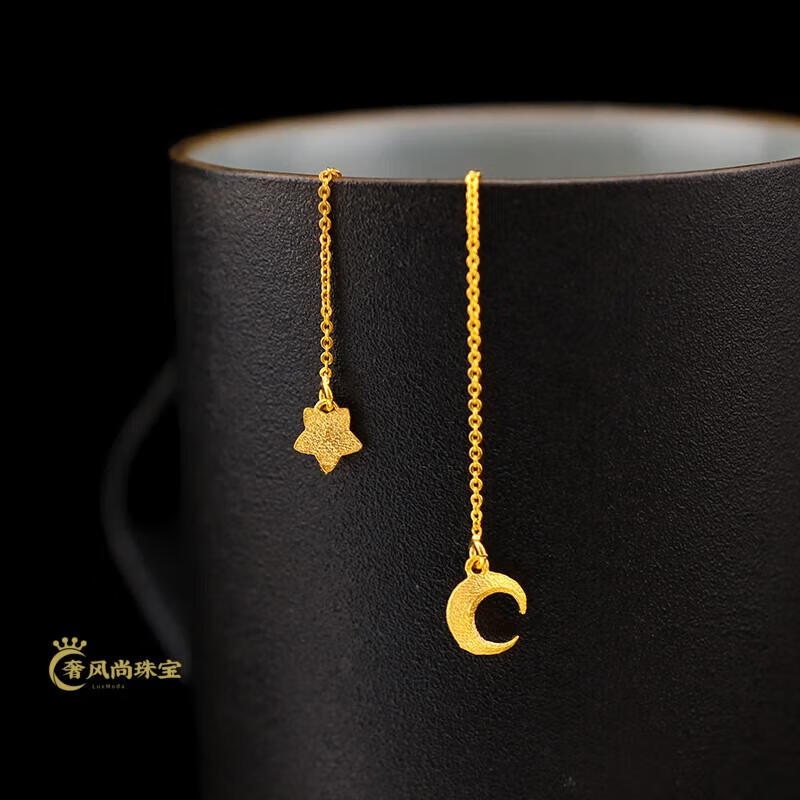 Fat Donglai's same style 18K gold tassel new gold women's model 999 pure gold 3d hard gold lotus lotus mesh of two generations Xingyue gold ear wire pair 1.06g