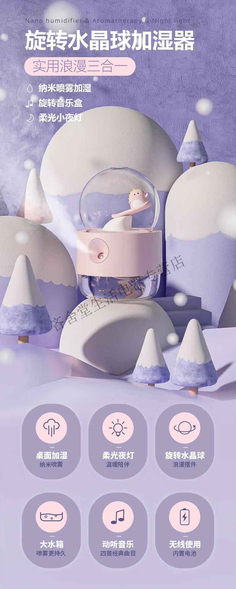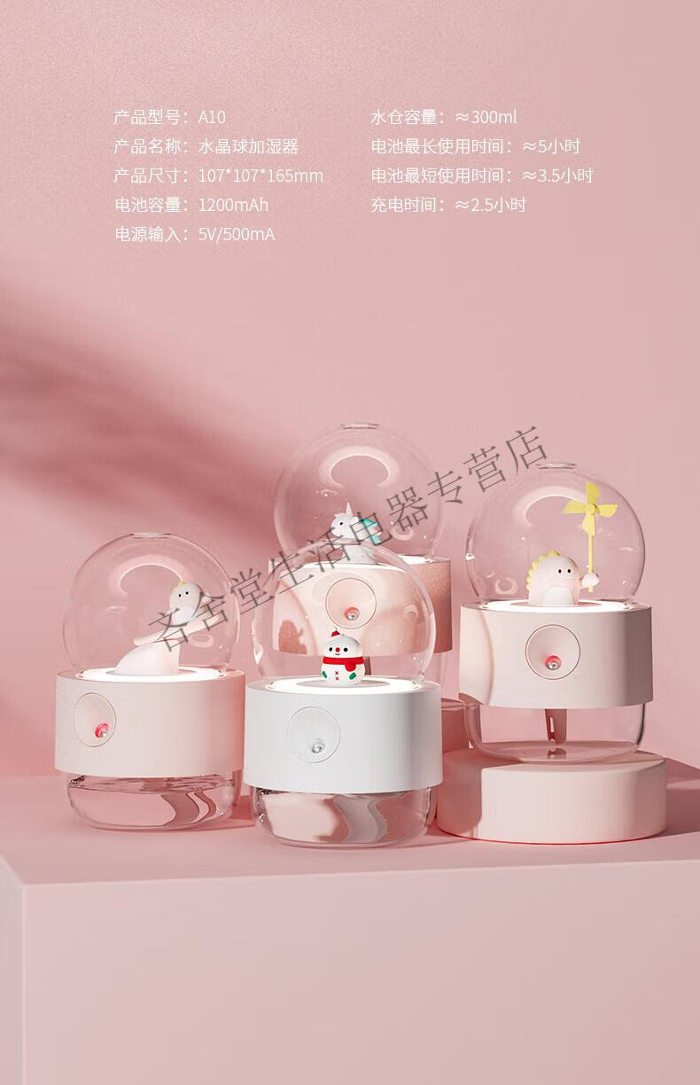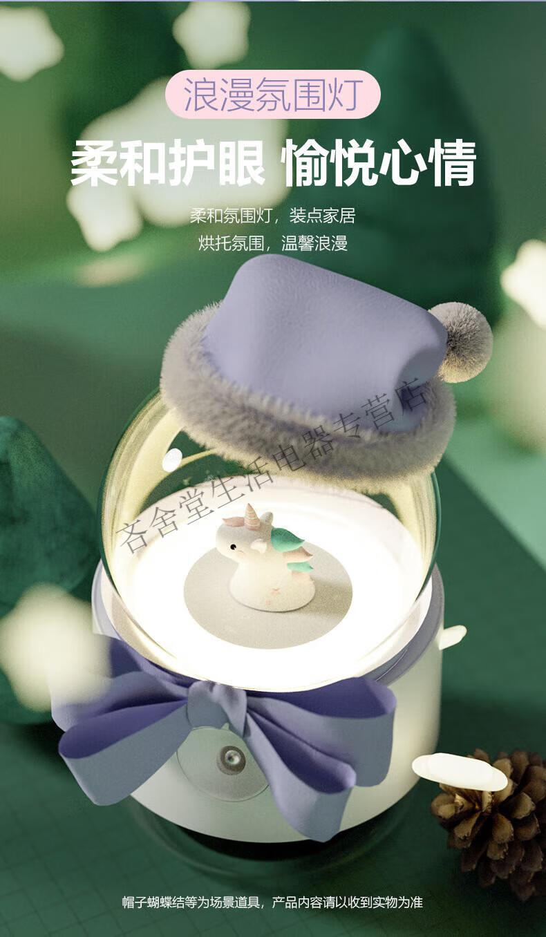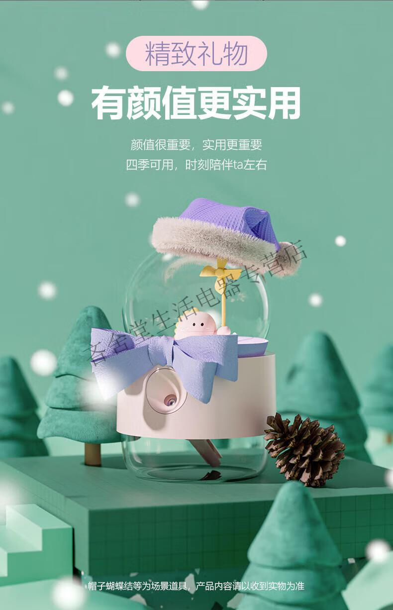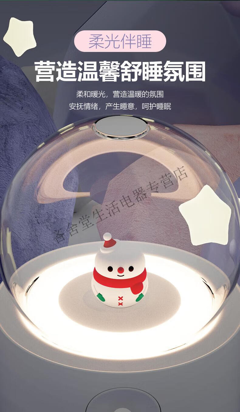 CLCEY is suitable for rotating crystal ball humidifier mini cute cartoon hydration instrument with night light music desktop office white snowman basic model