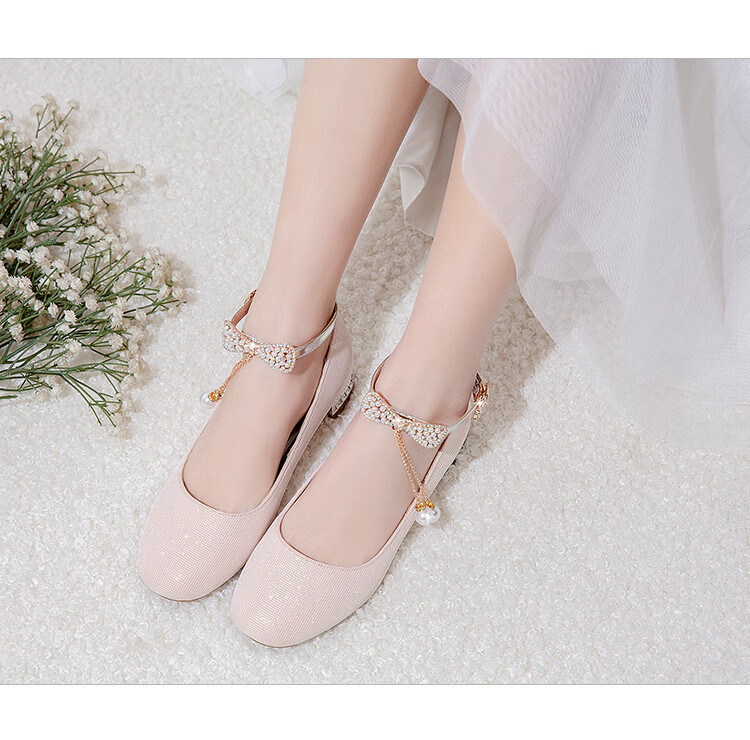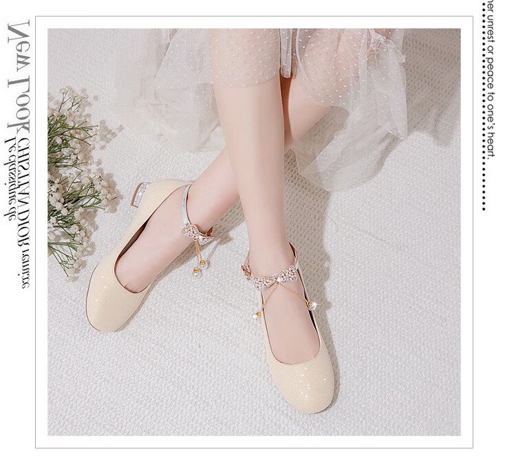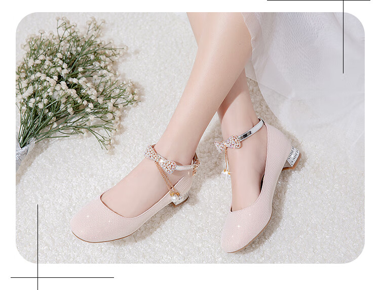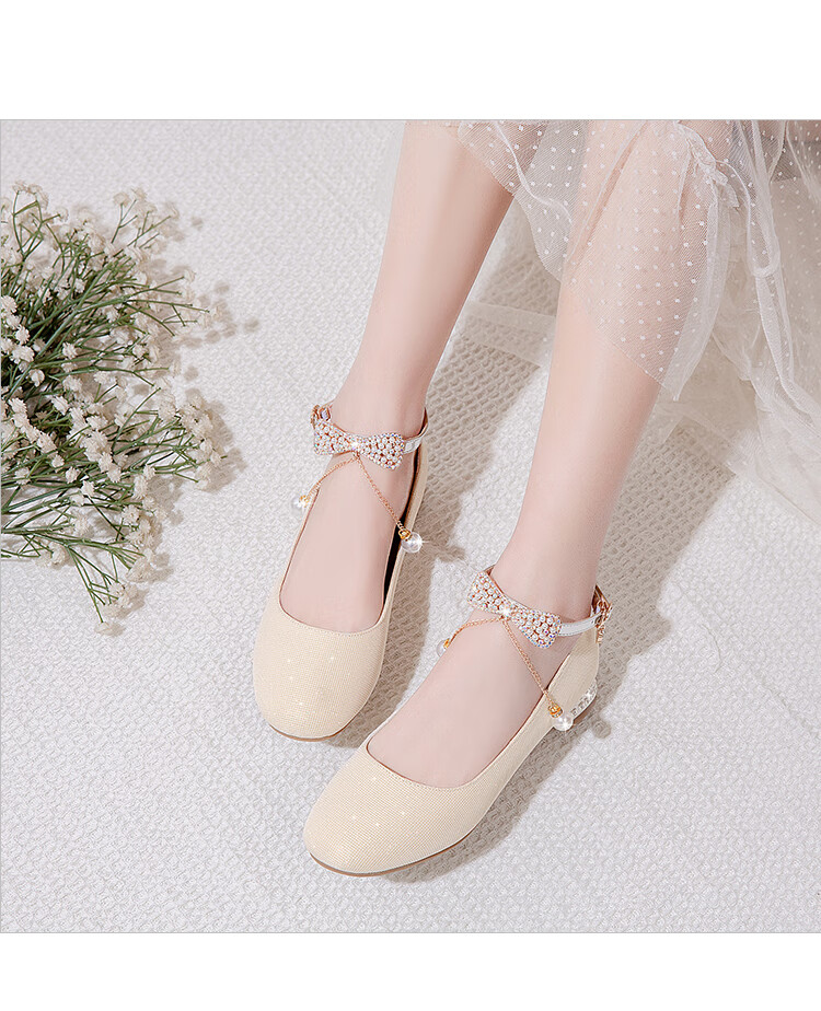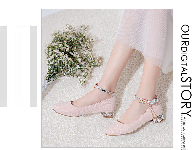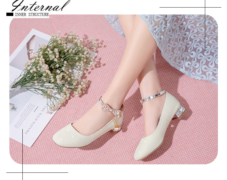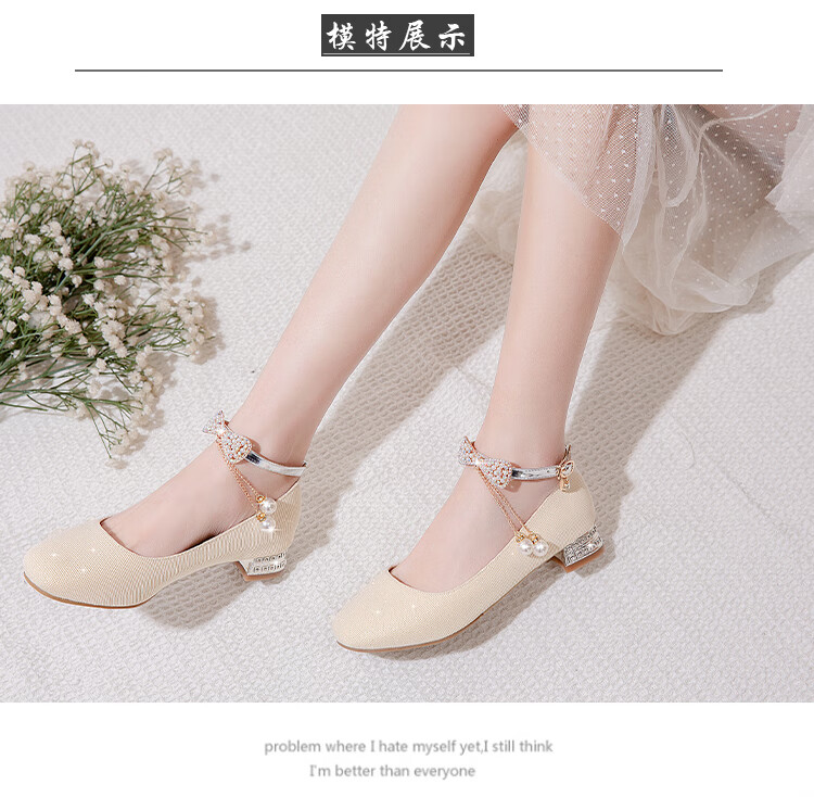 G.duck girls' leather shoes, princess shoes, medium-sized children's performance shoes, small host dress shoes, children's high-heeled single shoes, crystal shoes, white, size 18.5, 35