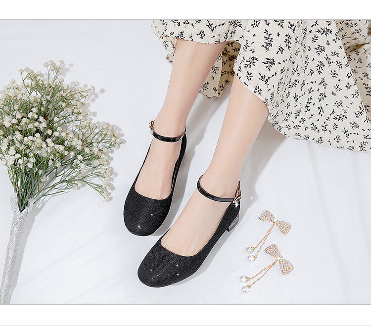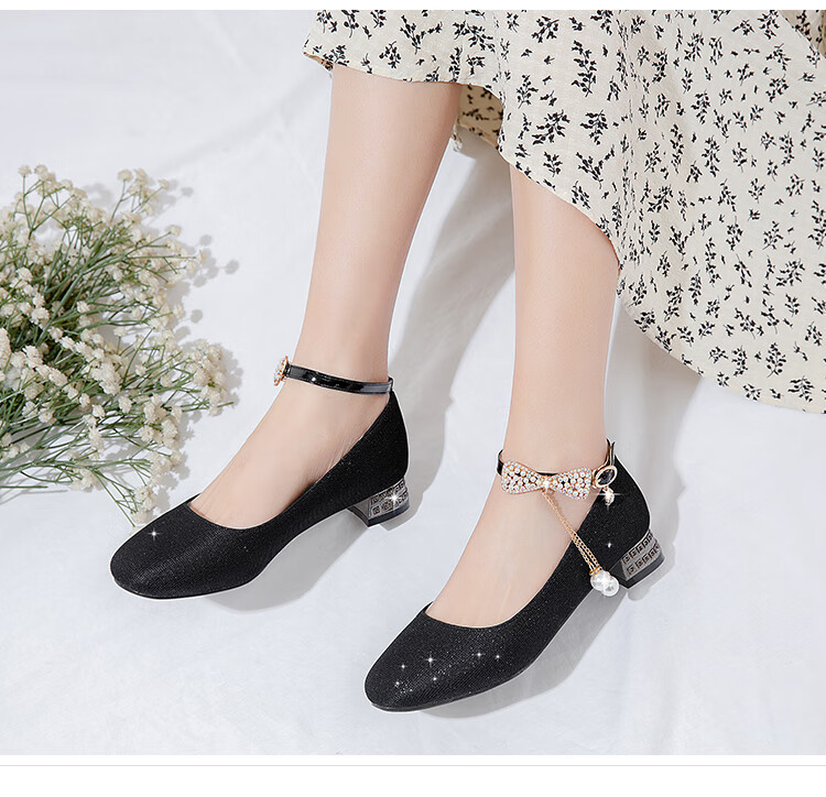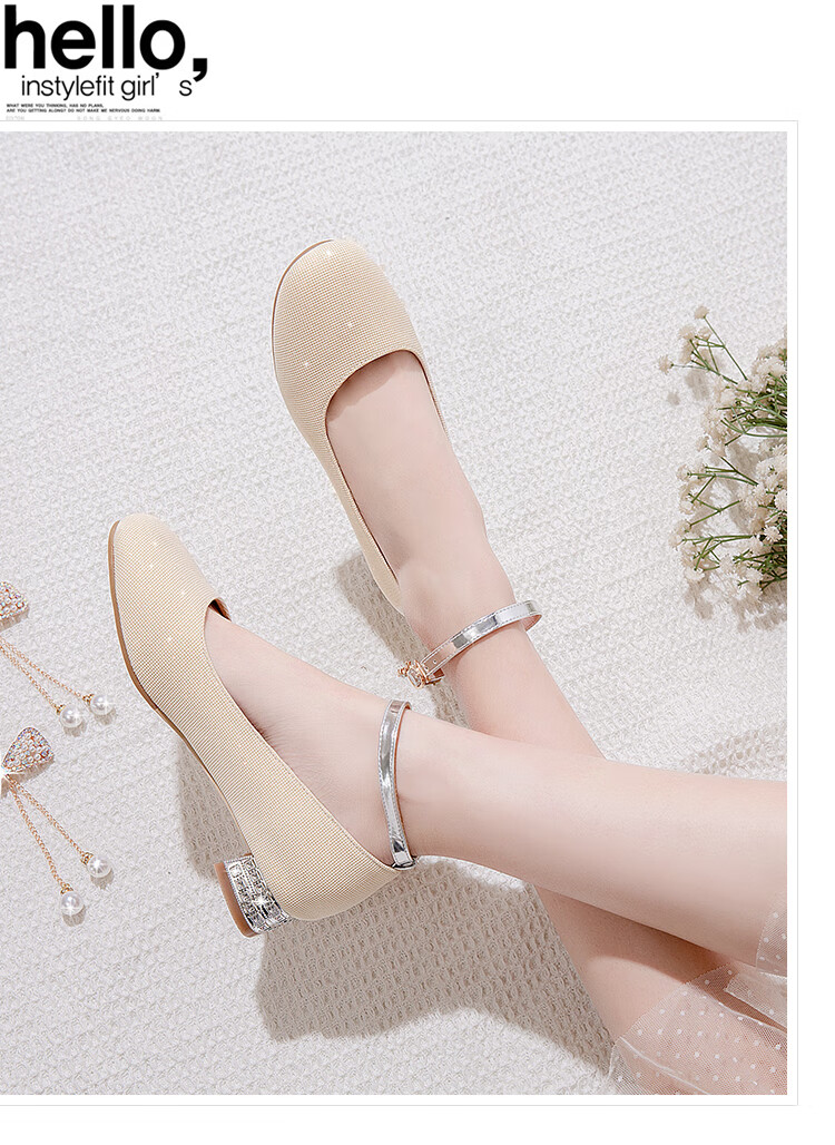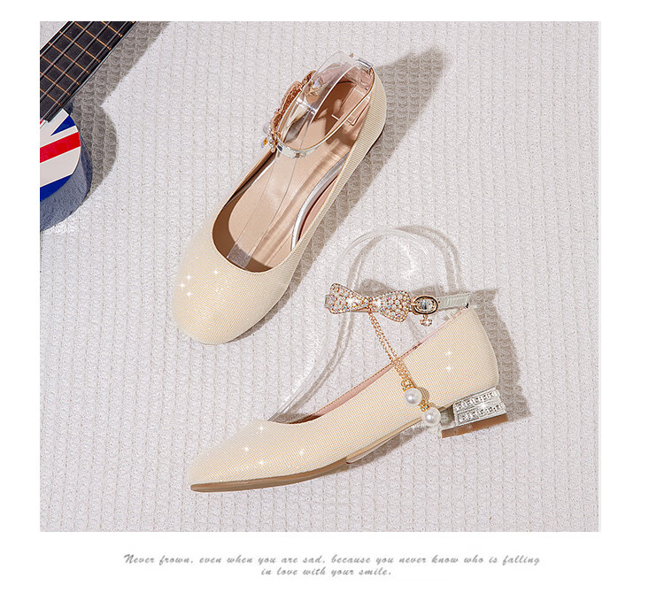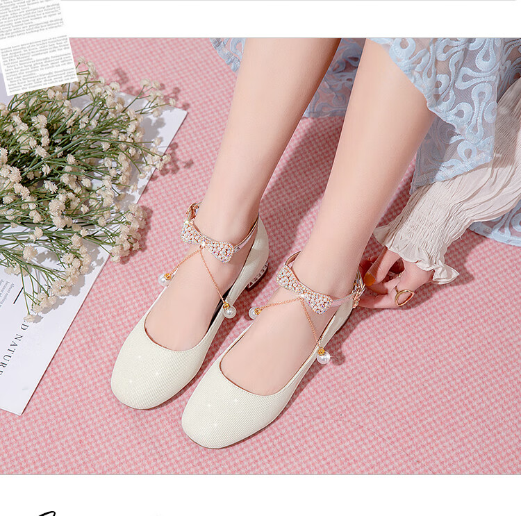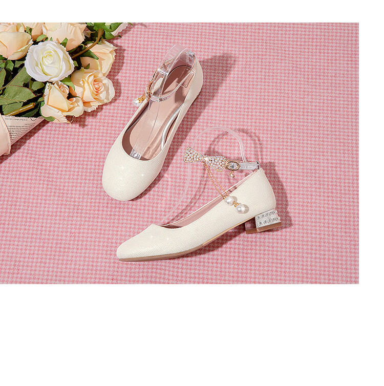 G.duck girls' leather shoes, princess shoes, medium-sized children's performance shoes, small host dress shoes, children's high-heeled single shoes, crystal shoes, white, size 18.5, 35
