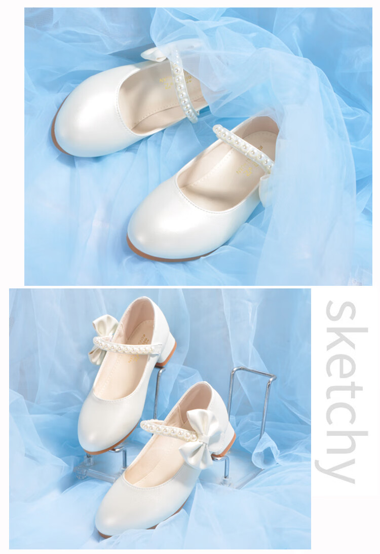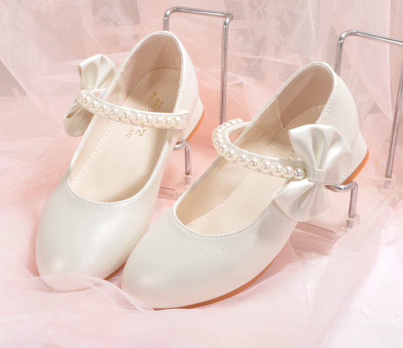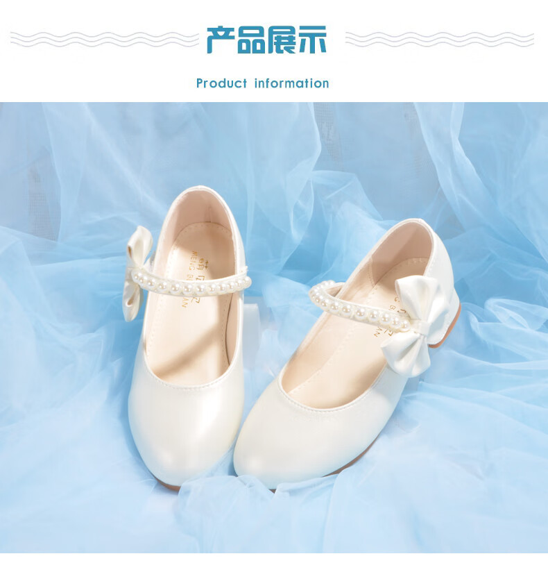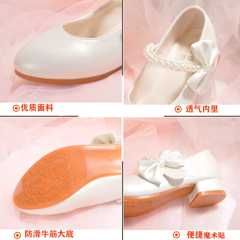 G.duck white leather shoes for girls, princess shoes, elementary school students' dress, chorus performance shoes, soft sole spring and autumn children's high-heeled women's shoes 1062, size 33, inner length 20.5 cm