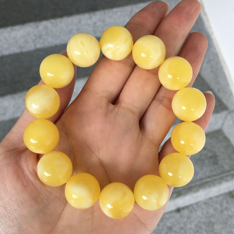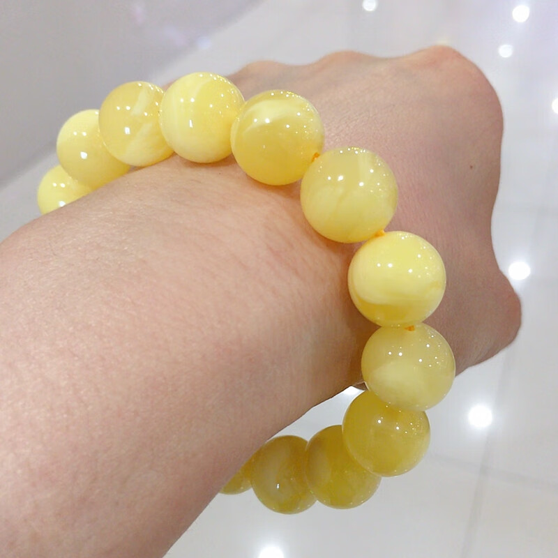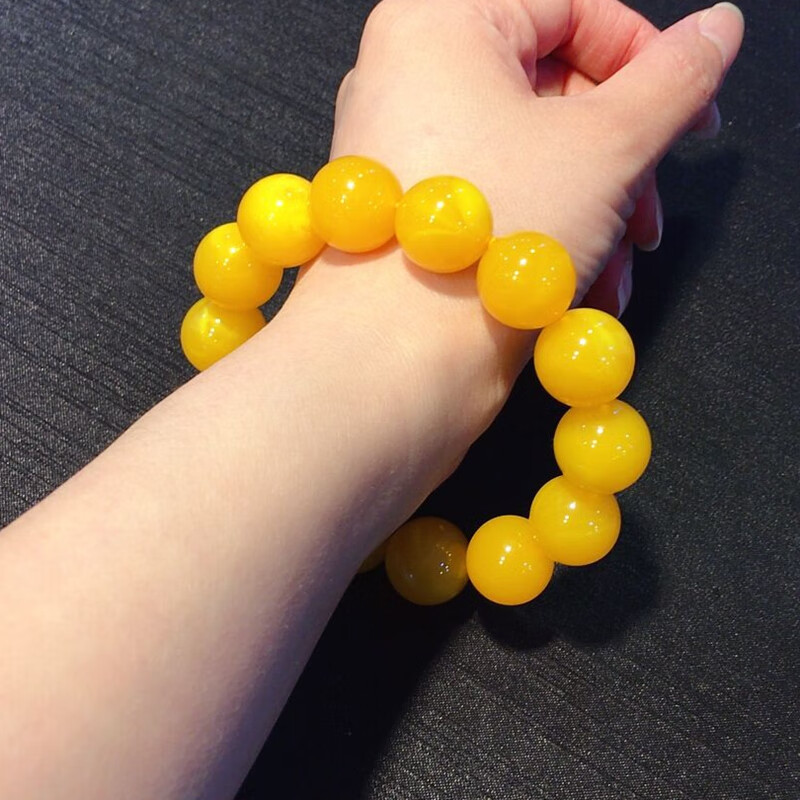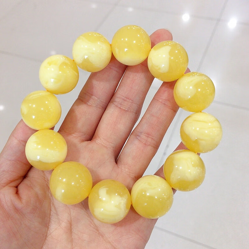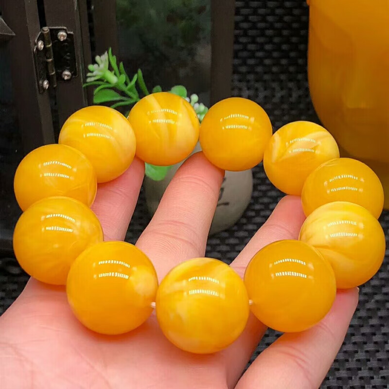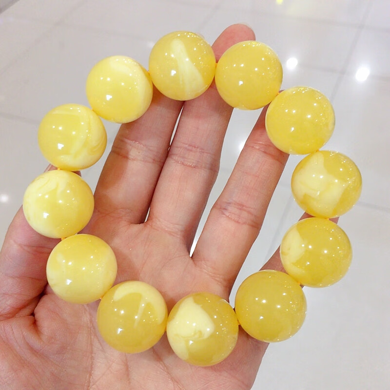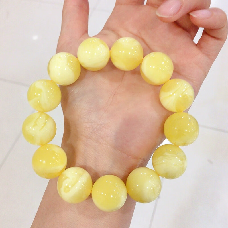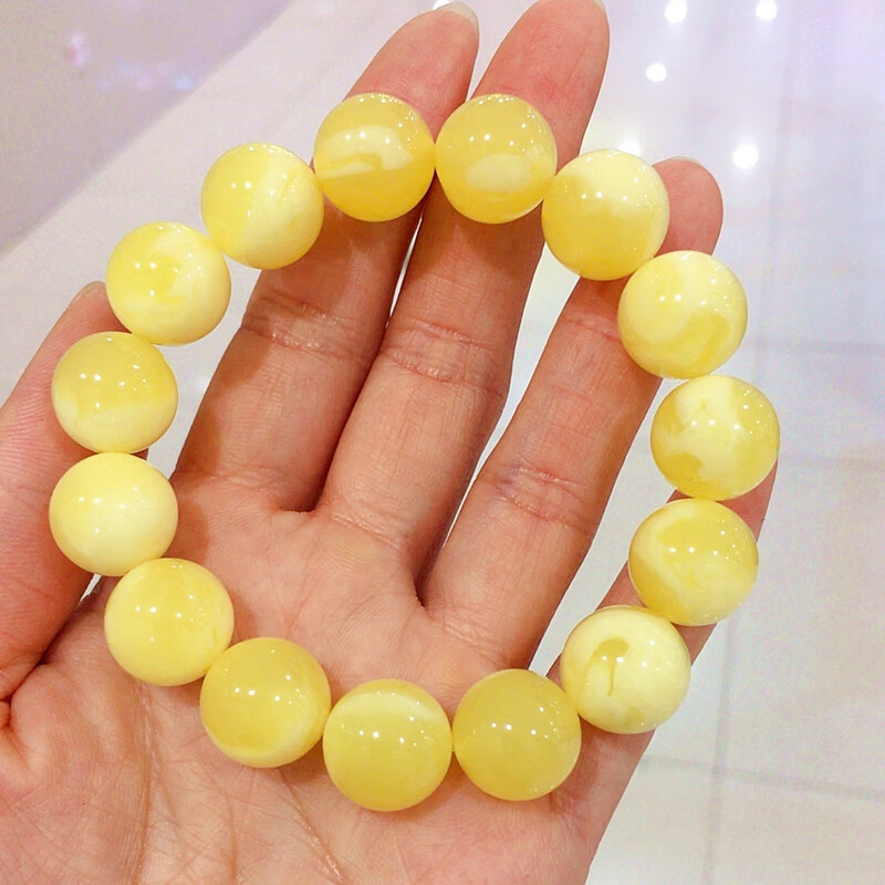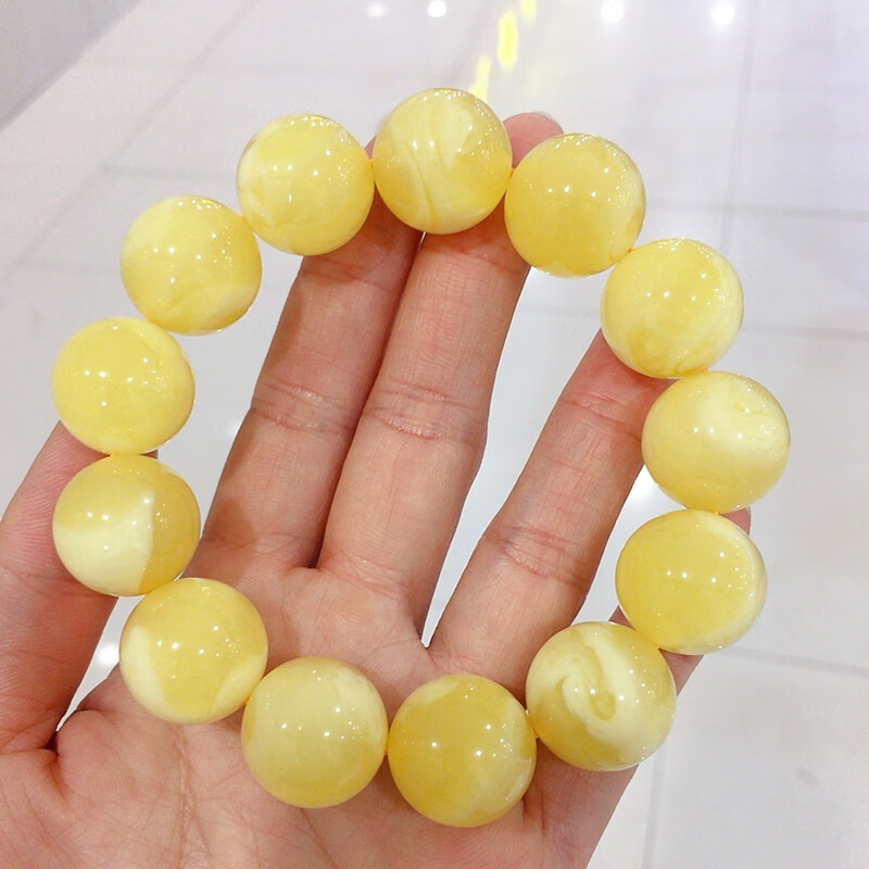 DL 1998 Amber Bracelet Floating Flowers Second Generation Beeswax Chicken Oil Yellow Bracelet for Boys and Girls Round Beads Couple Diameter 10mm Floating Flower Bracelet Small Beads for Women