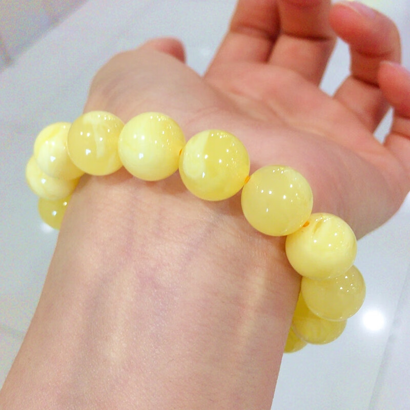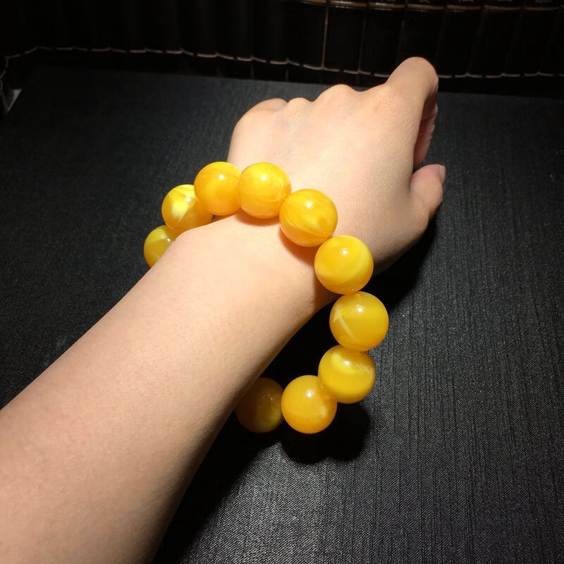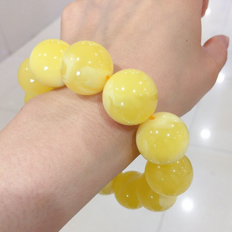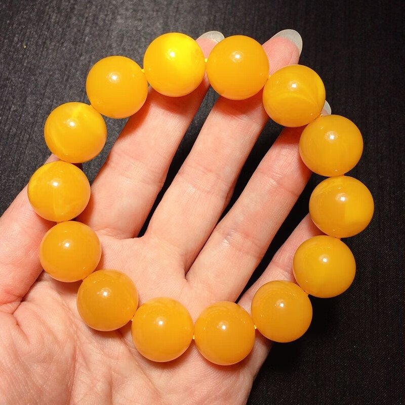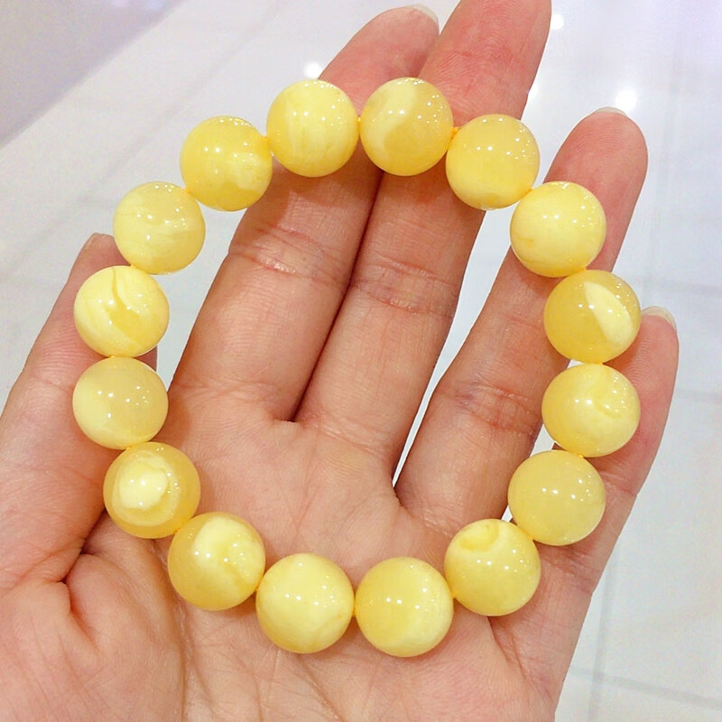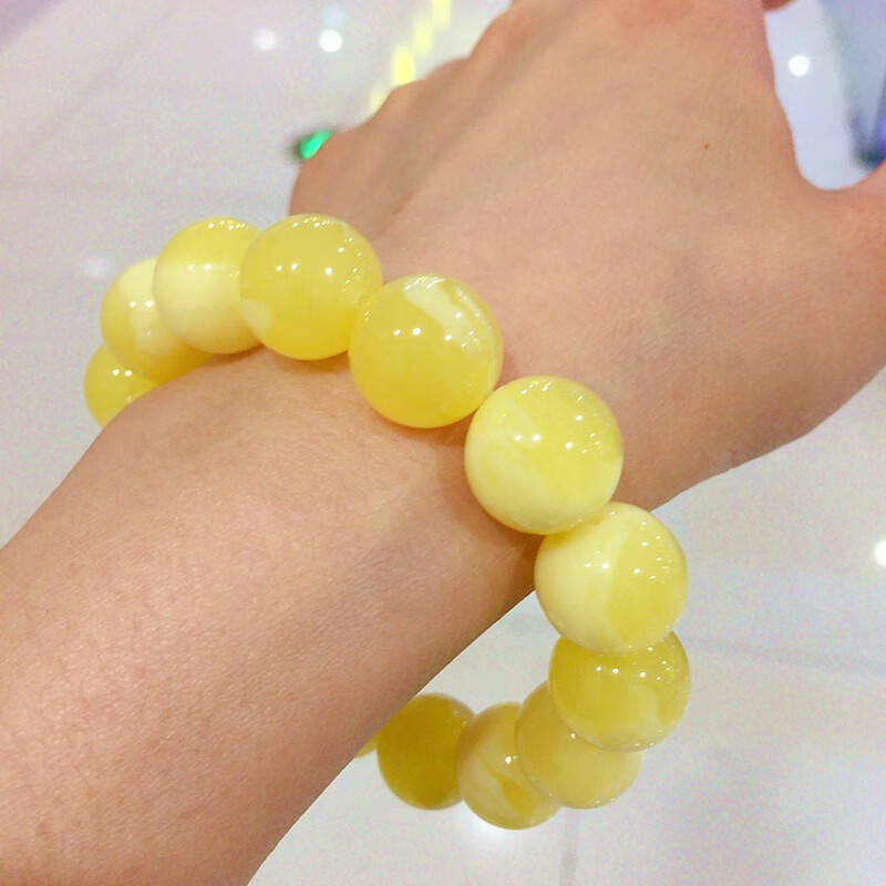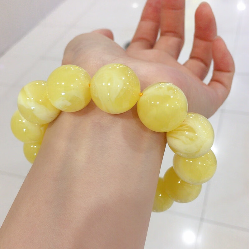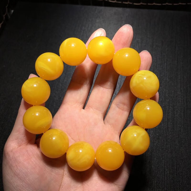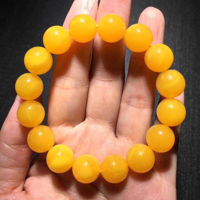 DL 1998 Amber Bracelet Floating Flowers Second Generation Beeswax Chicken Oil Yellow Bracelet for Boys and Girls Round Beads Couple Diameter 10mm Floating Flower Bracelet Small Beads for Women