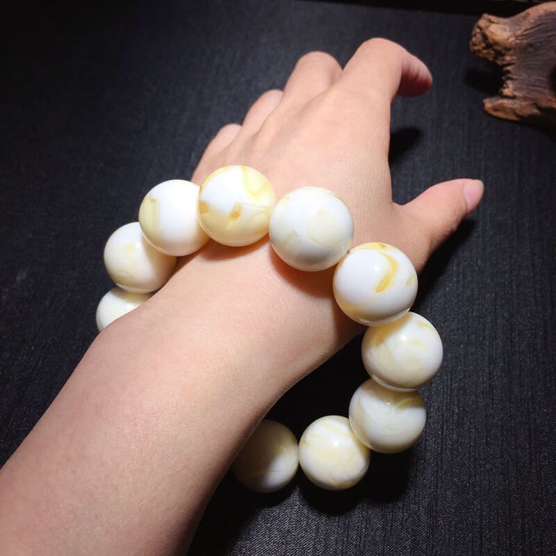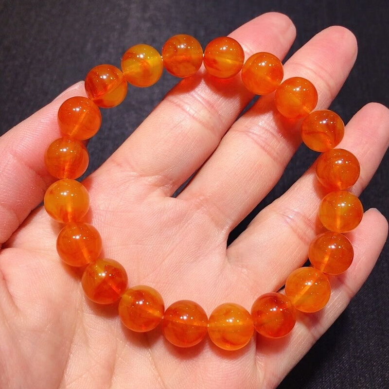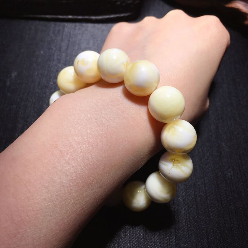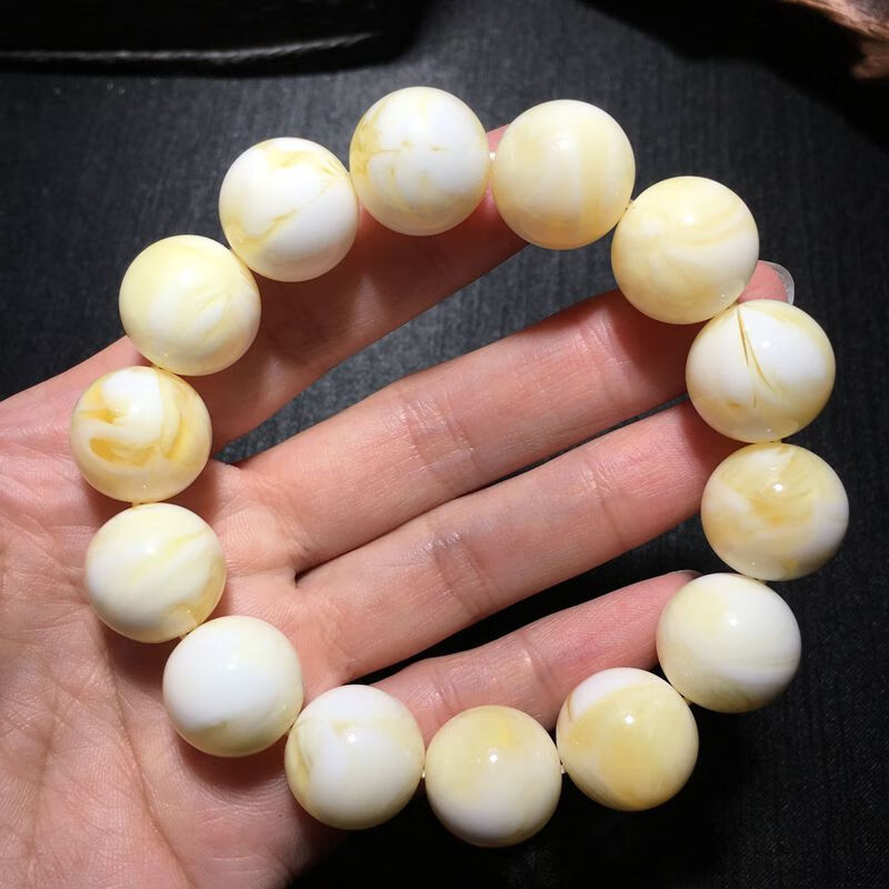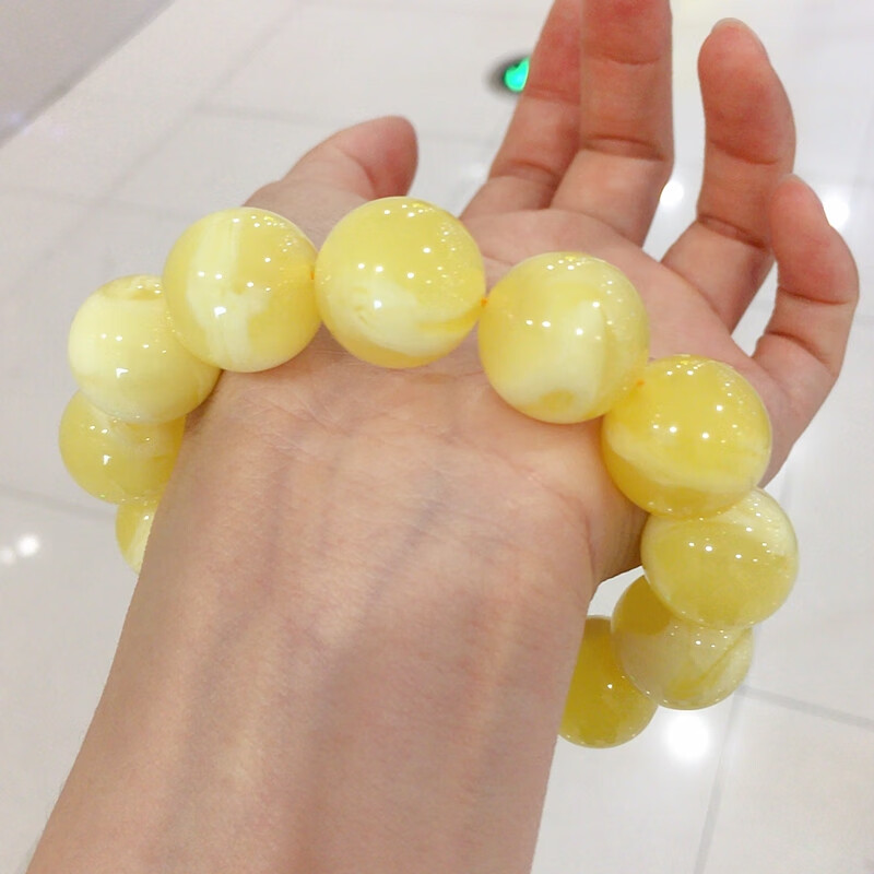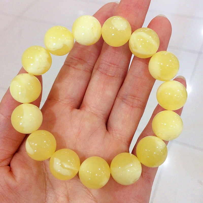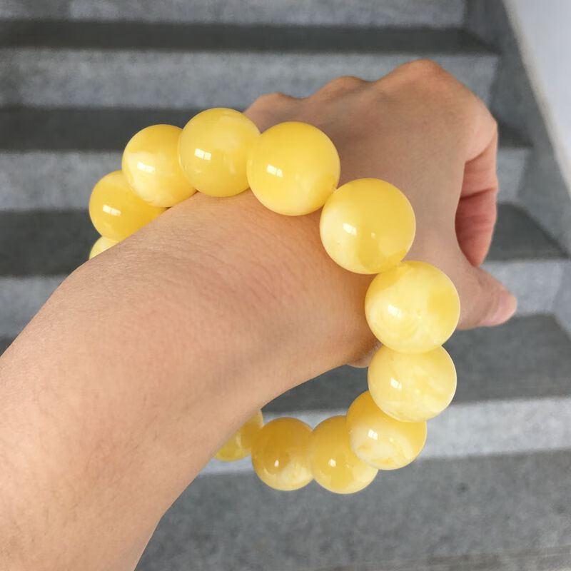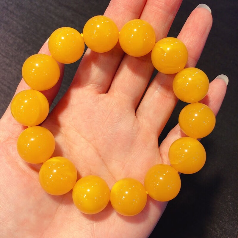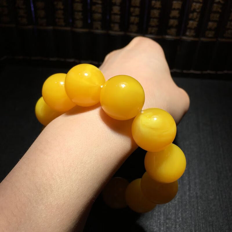 DL 1998 Amber Bracelet Floating Flowers Second Generation Beeswax Chicken Oil Yellow Bracelet for Boys and Girls Round Beads Couple Diameter 10mm Floating Flower Bracelet Small Beads for Women
