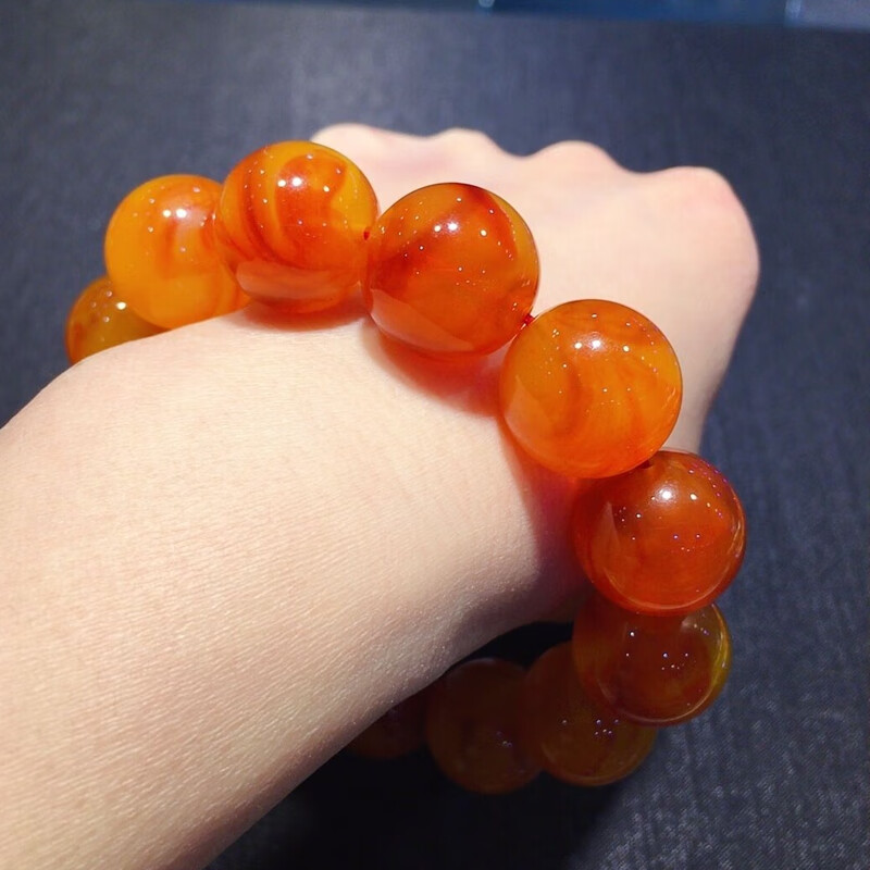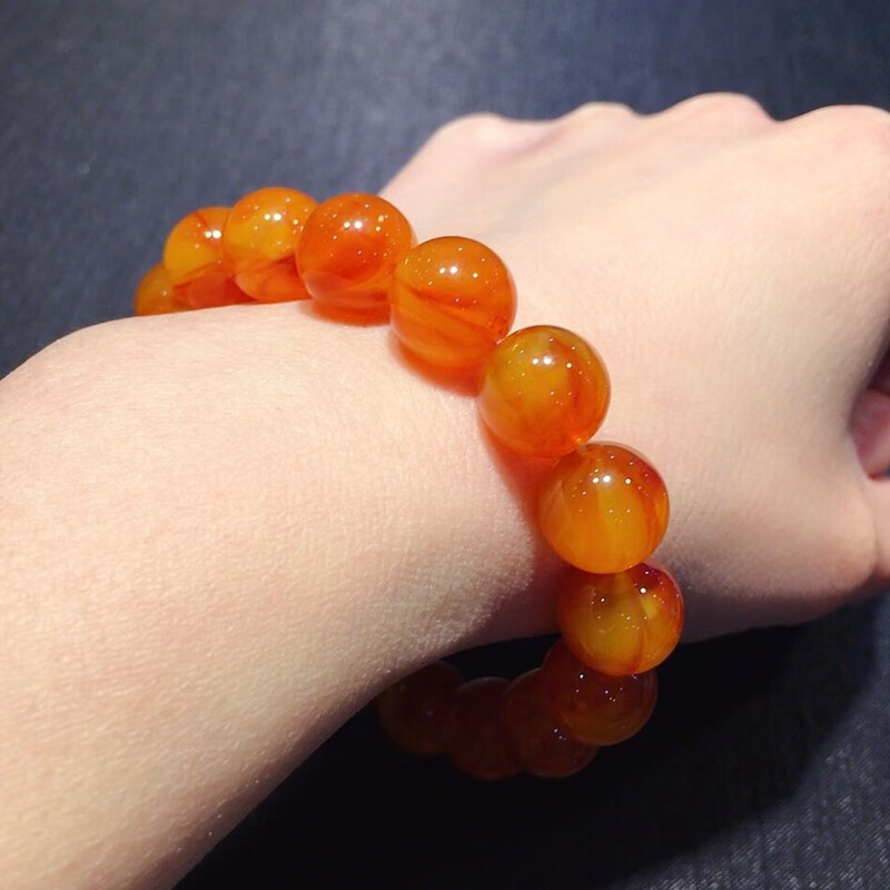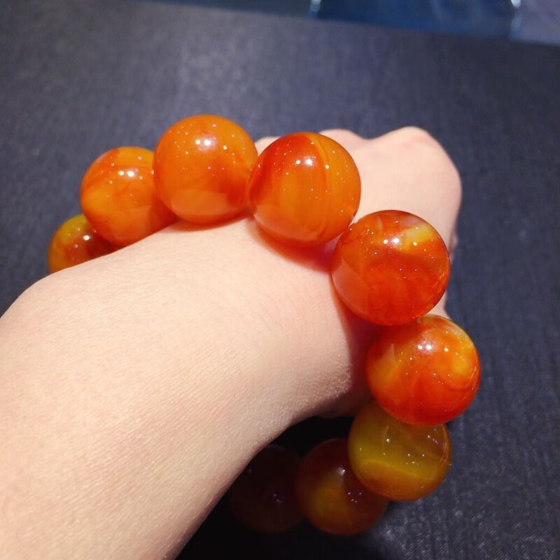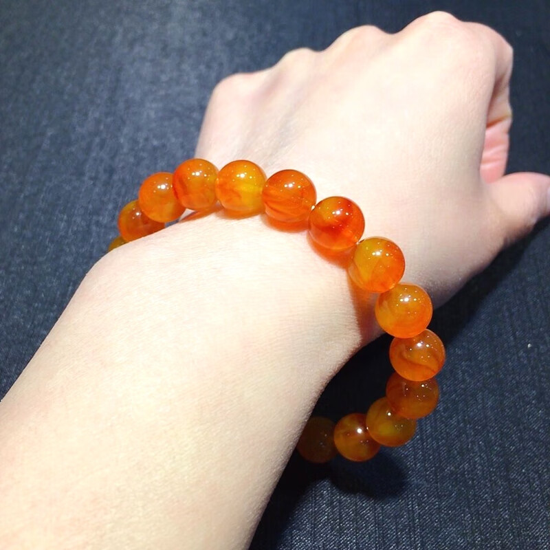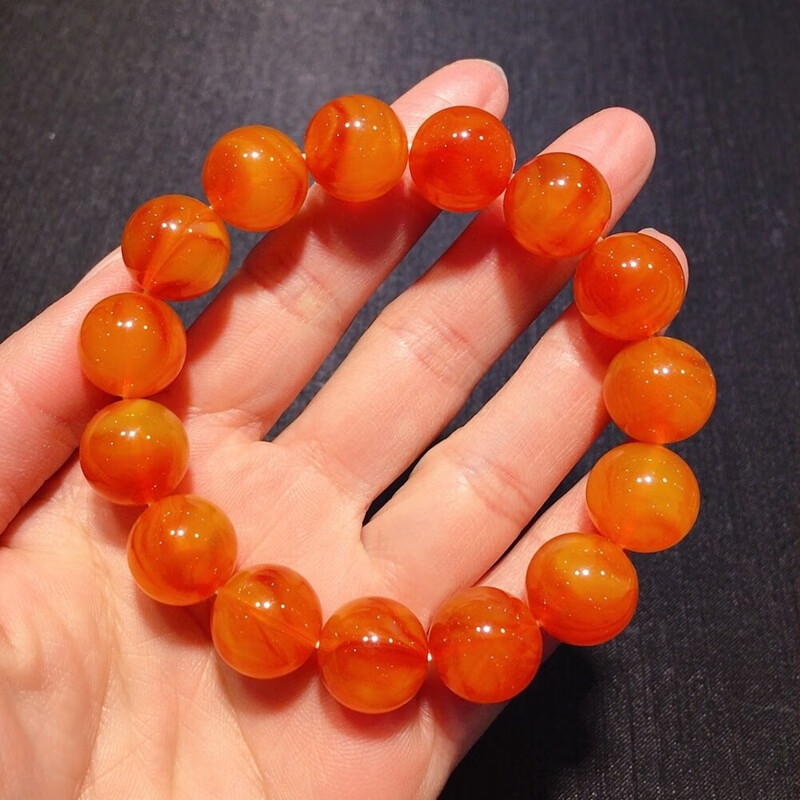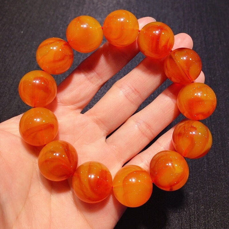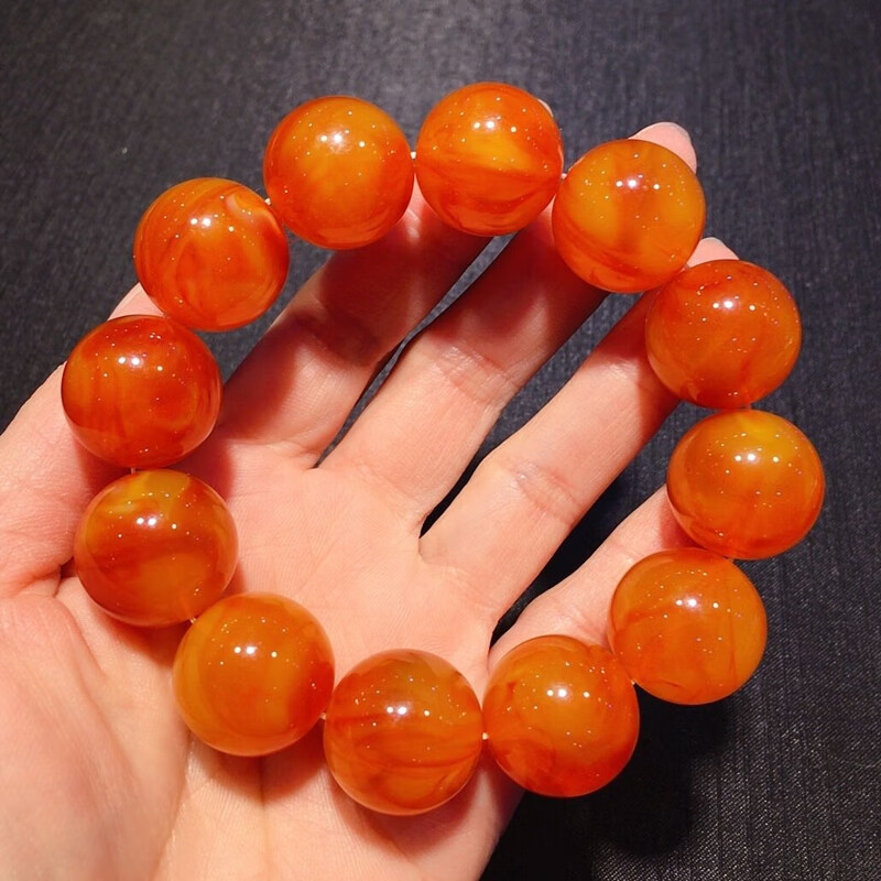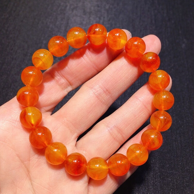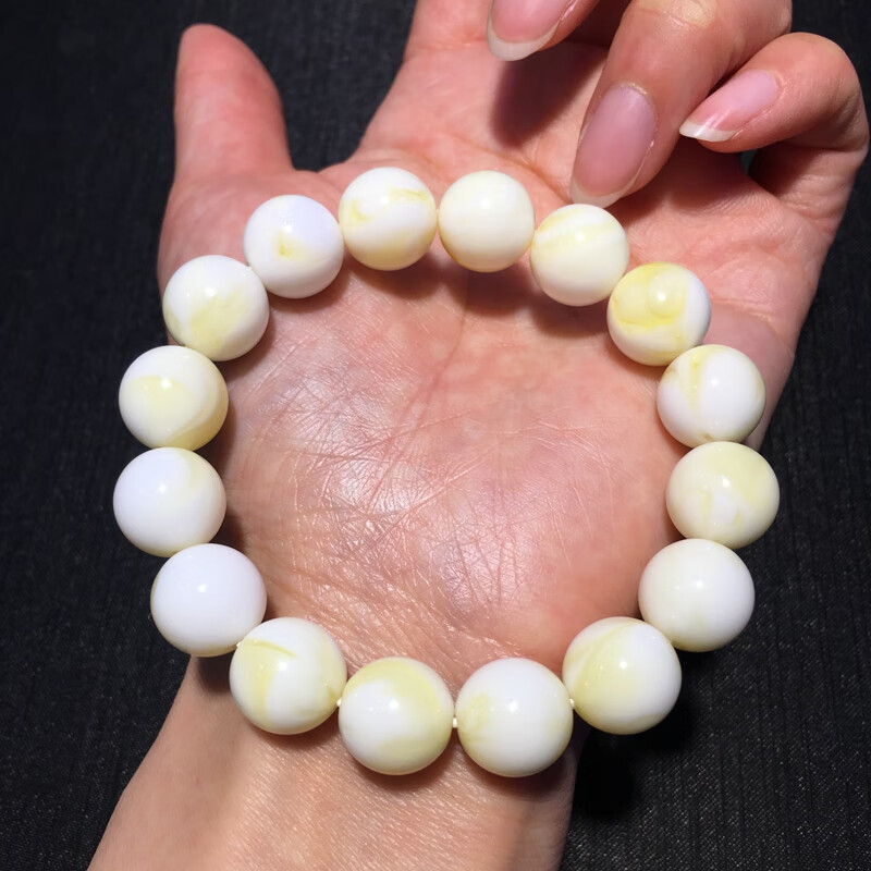 DL 1998 Amber Bracelet Floating Flowers Second Generation Beeswax Chicken Oil Yellow Bracelet for Boys and Girls Round Beads Couple Diameter 10mm Floating Flower Bracelet Small Beads for Women