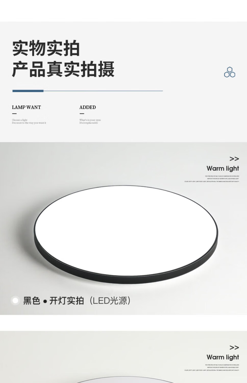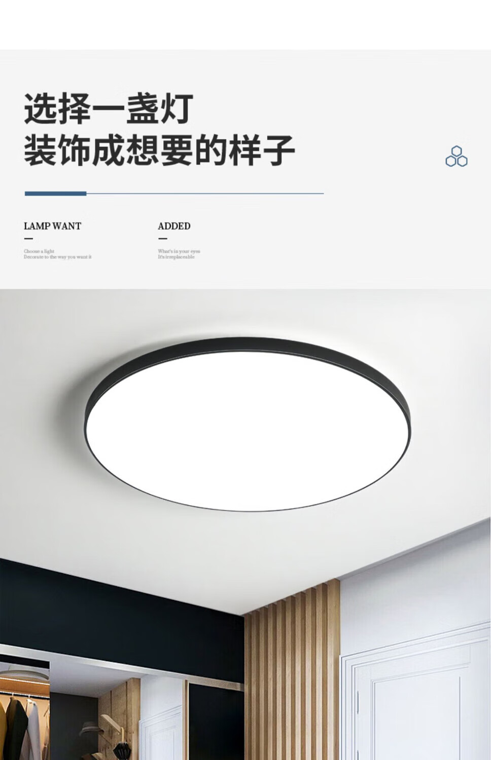 SUOYADA索亚达led三防吸顶灯超薄圆形防水卫生间浴室阳台卧室厨卫灯过道走廊灯 三防23CM白光18W(黑框)过道