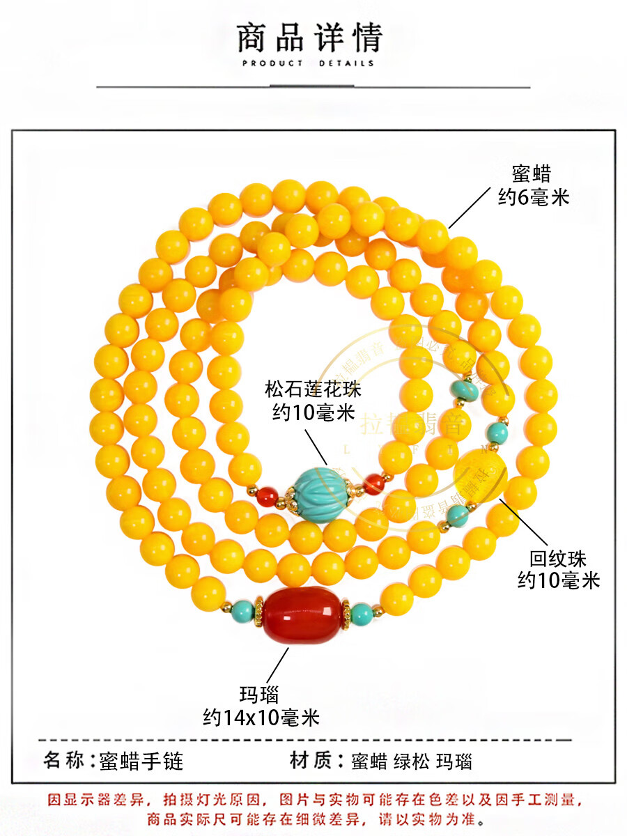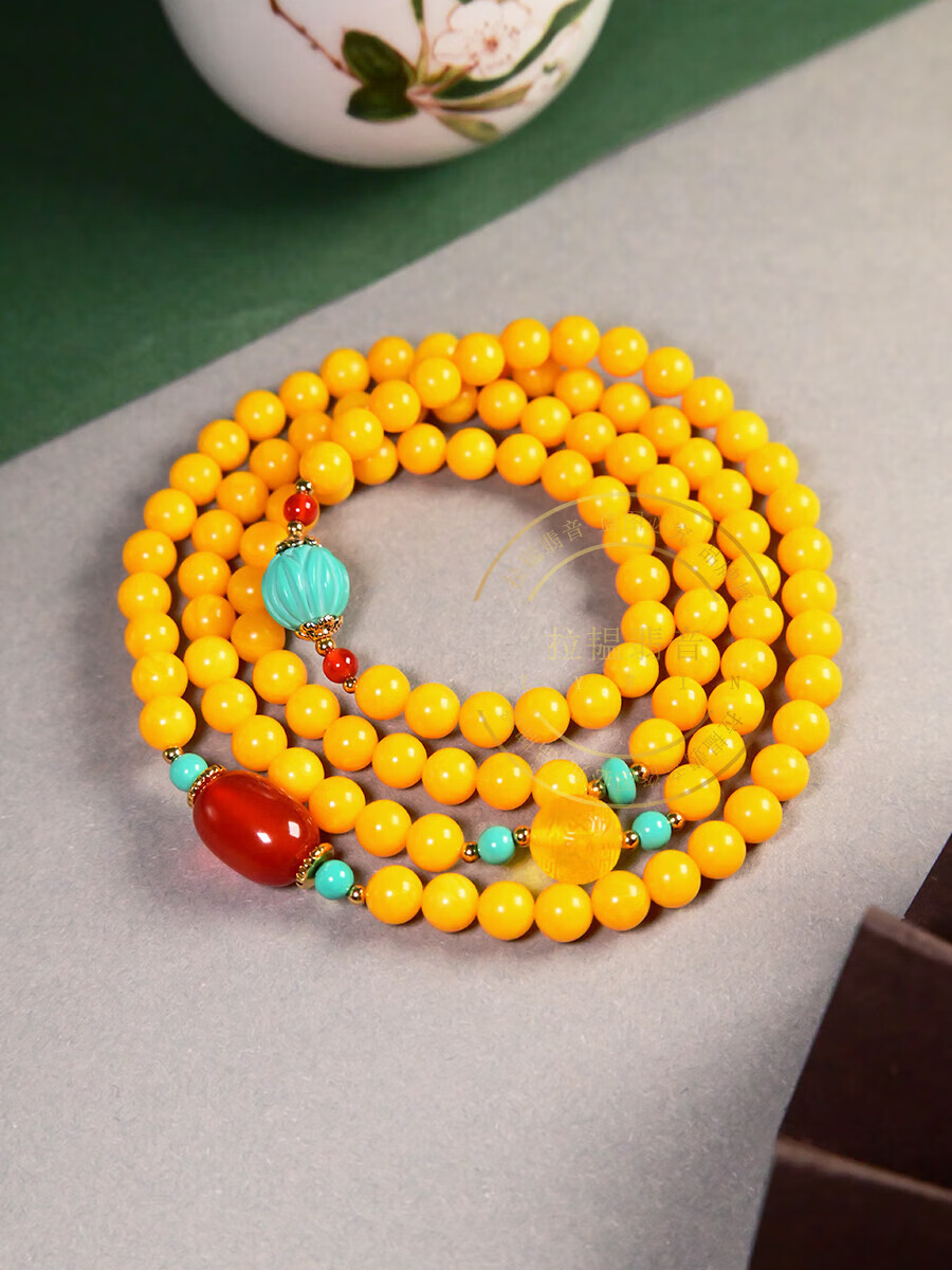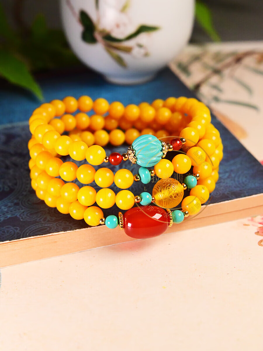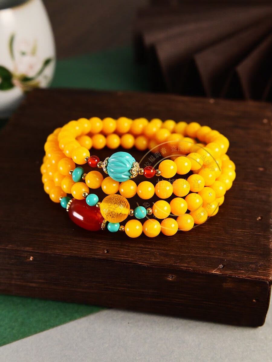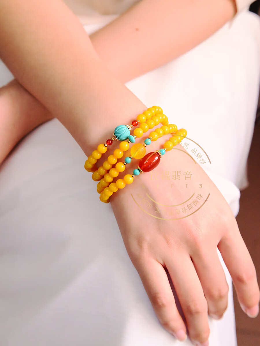 La Yun Feiyin Amber Beeswax Chicken Oil Yellow Bracelet Multi-circle Agate Turquoise Amber Ball Bracelet Elegant Women's Hand Accessories