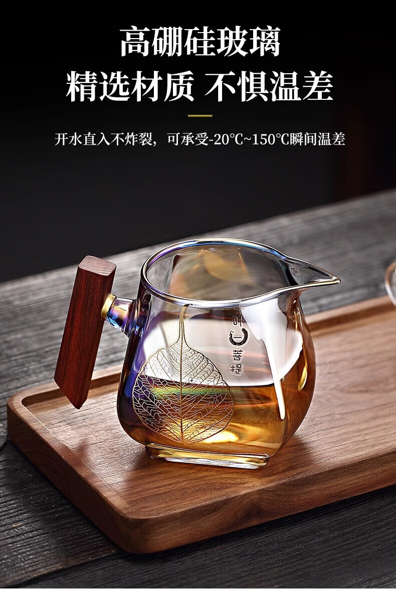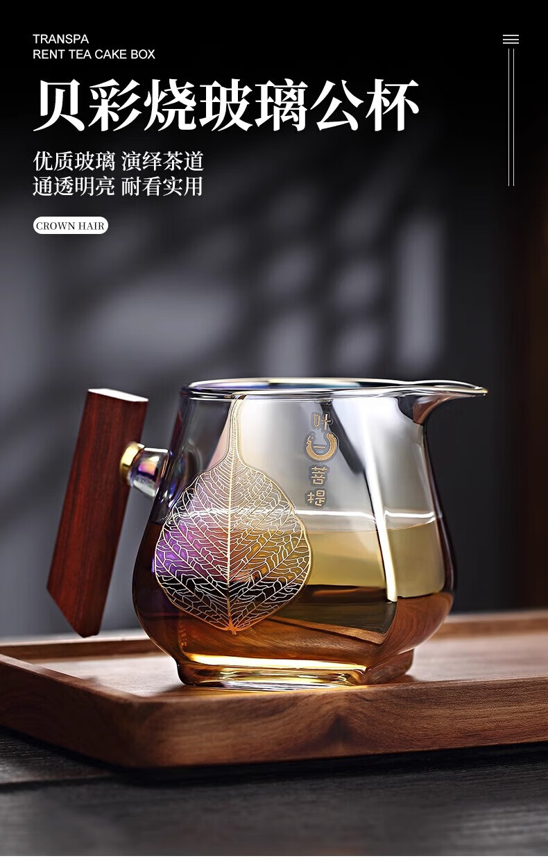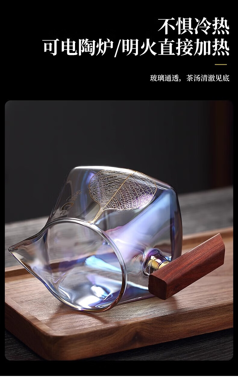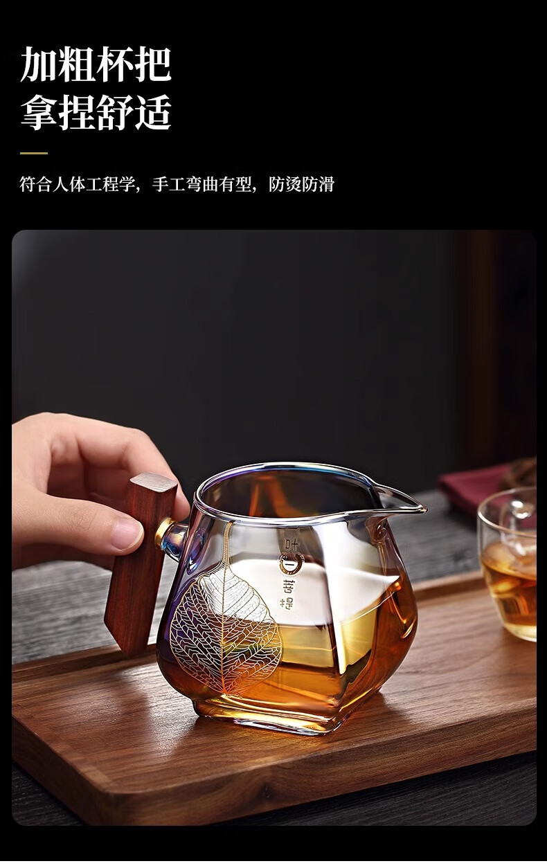 Jinpan heat-resistant glass fair cup large-capacity glass tea divider tea sea bodhi shell color burnt wood handle tea fair tea cup color burnt fair cup