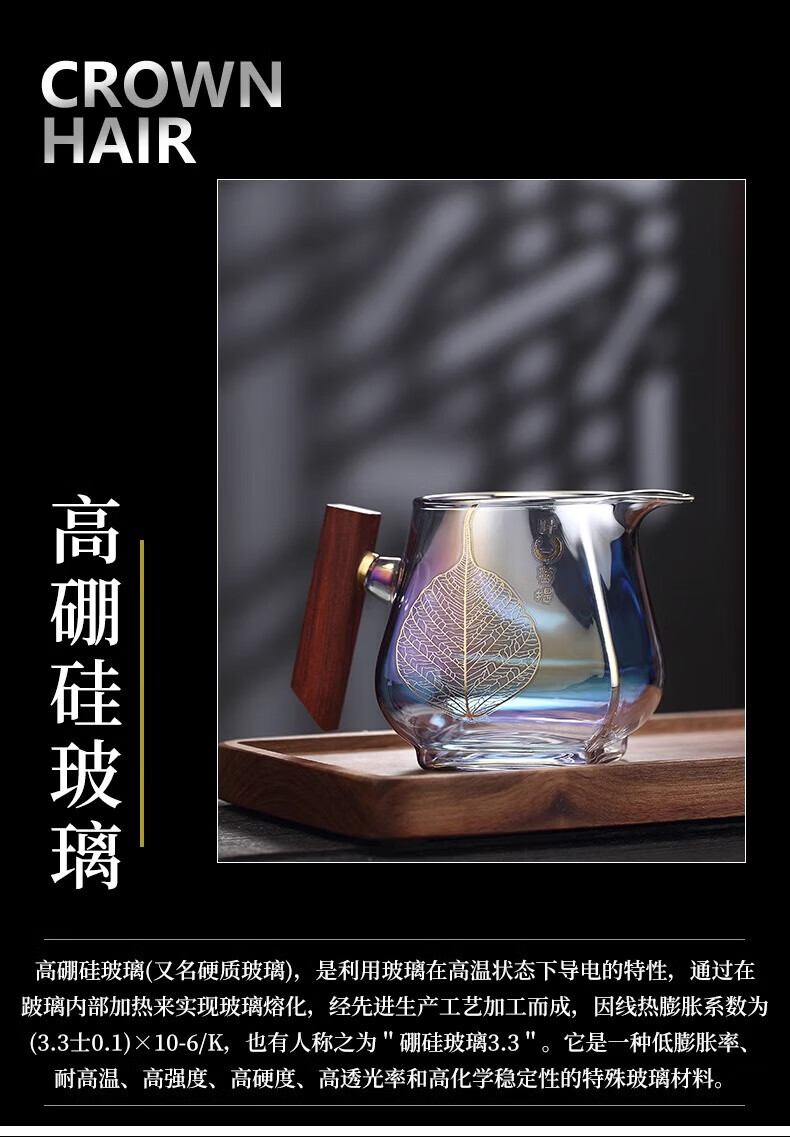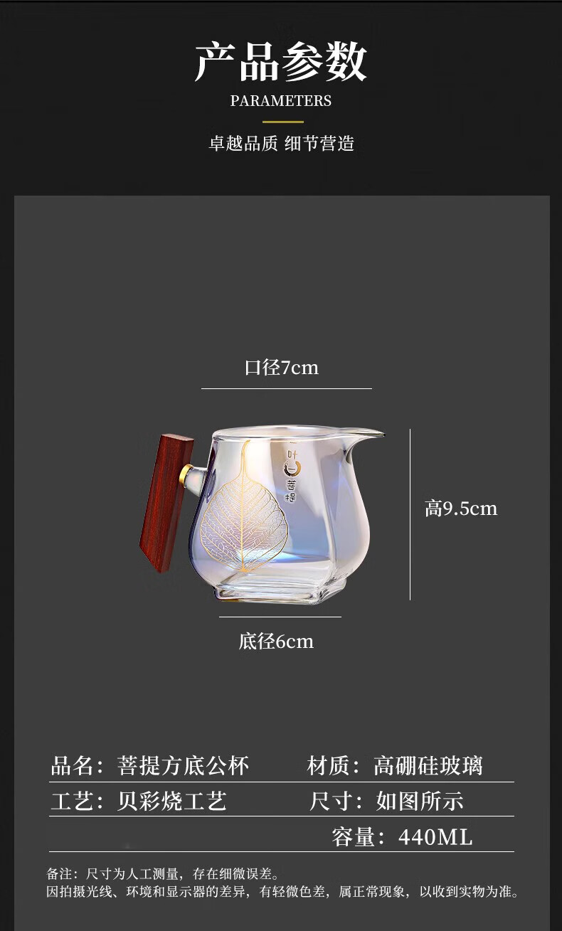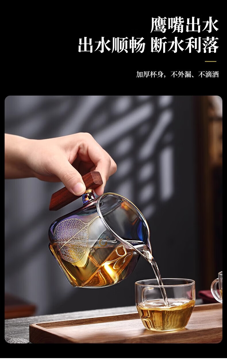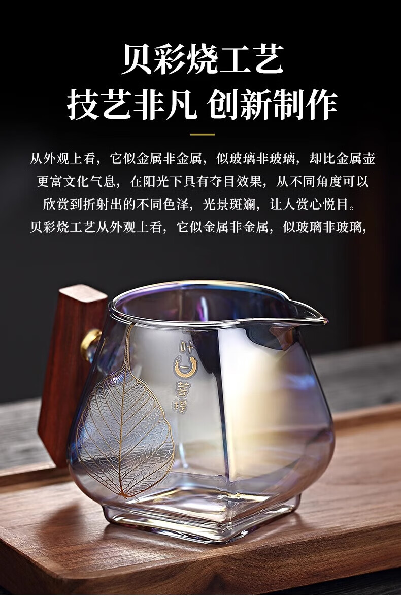 Jinpan heat-resistant glass fair cup large-capacity glass tea divider tea sea bodhi shell color burnt wood handle tea fair tea cup color burnt fair cup