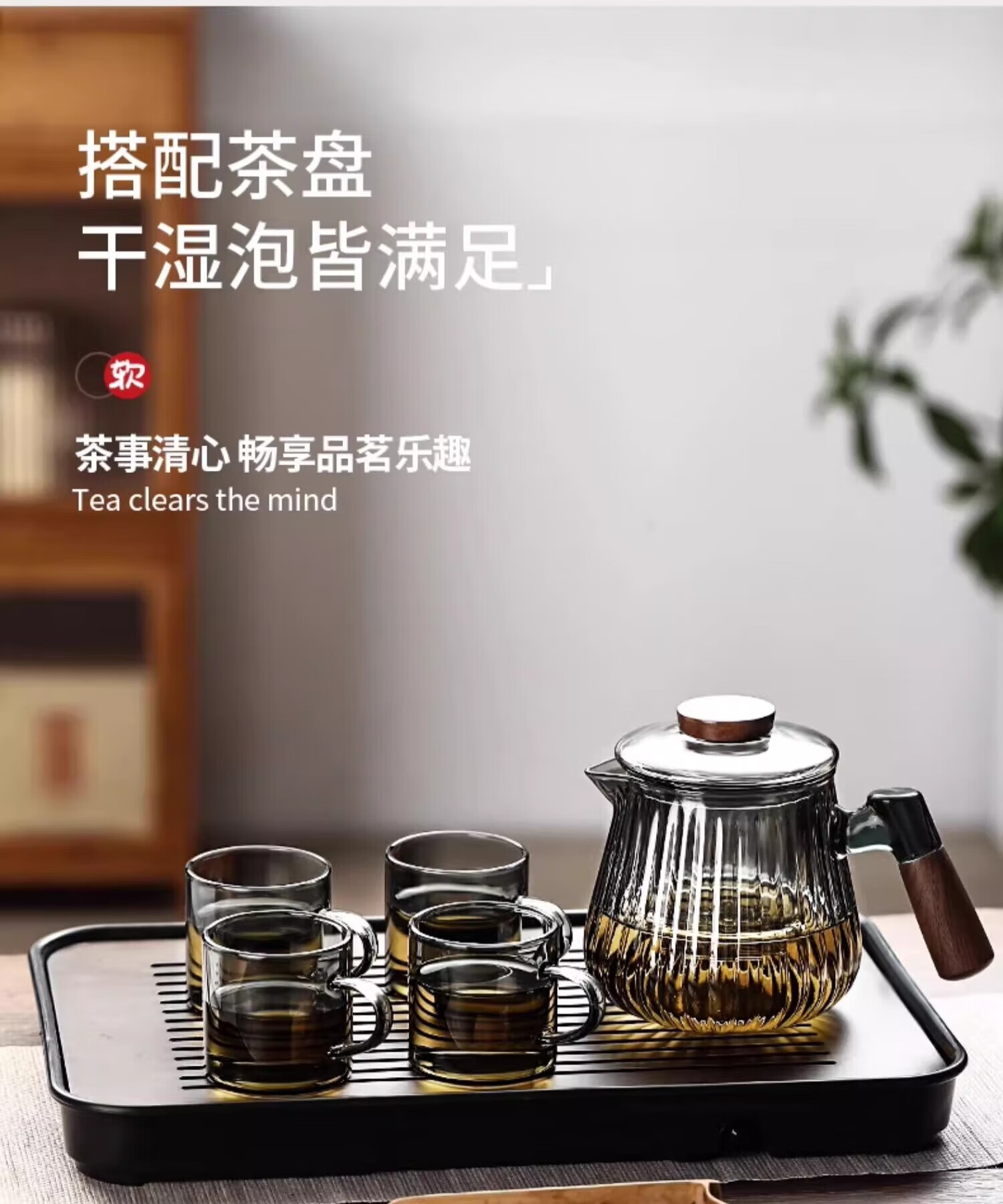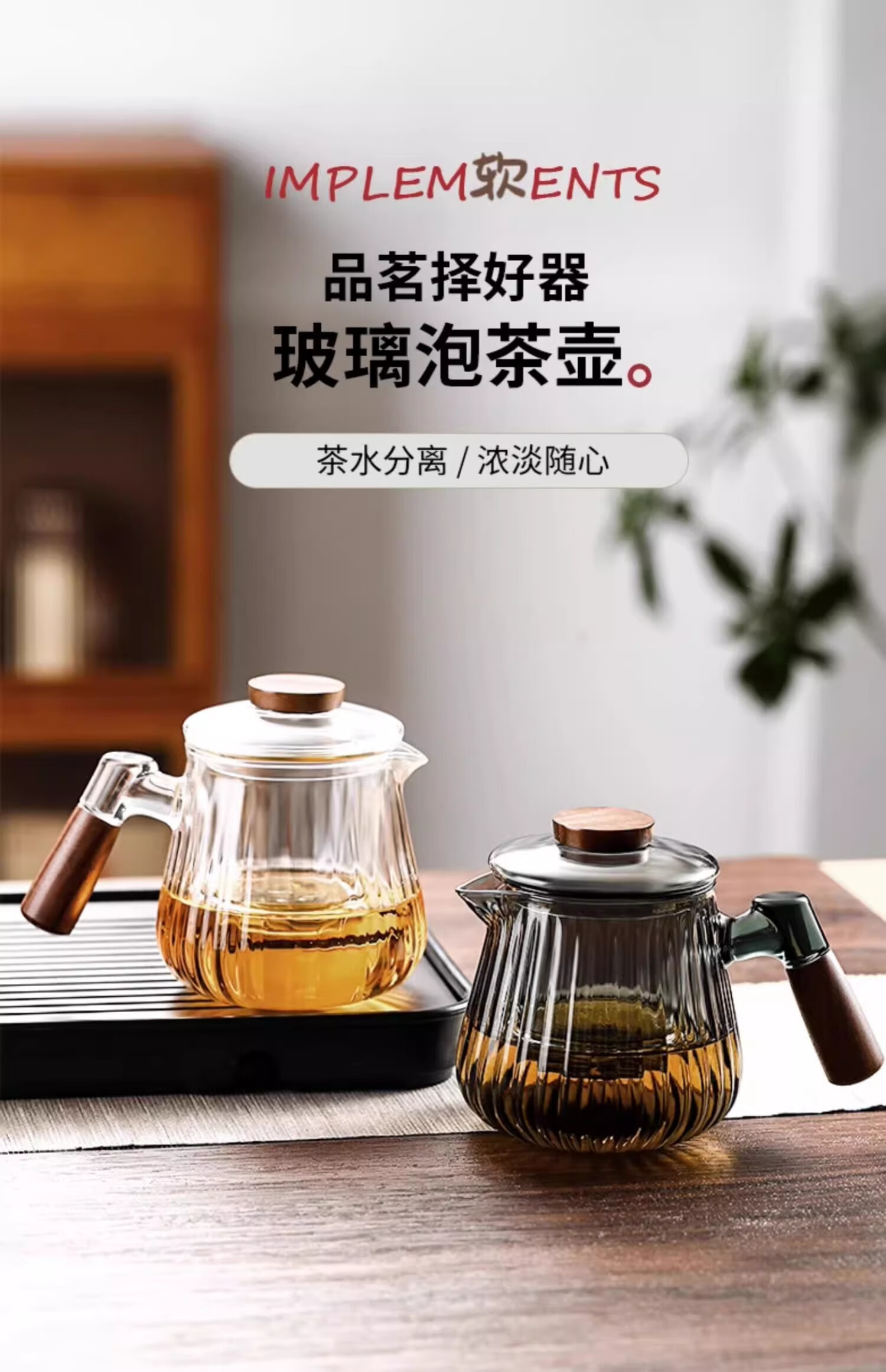 Jinpan teapot glass tea water separation high temperature resistant tea maker with filter wooden handle single pot Kung Fu tea set tea cup household vertical pattern teapot 600ml
