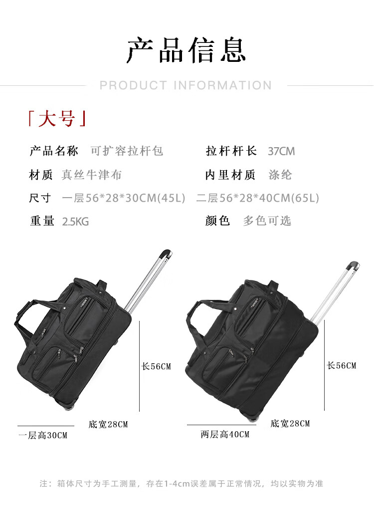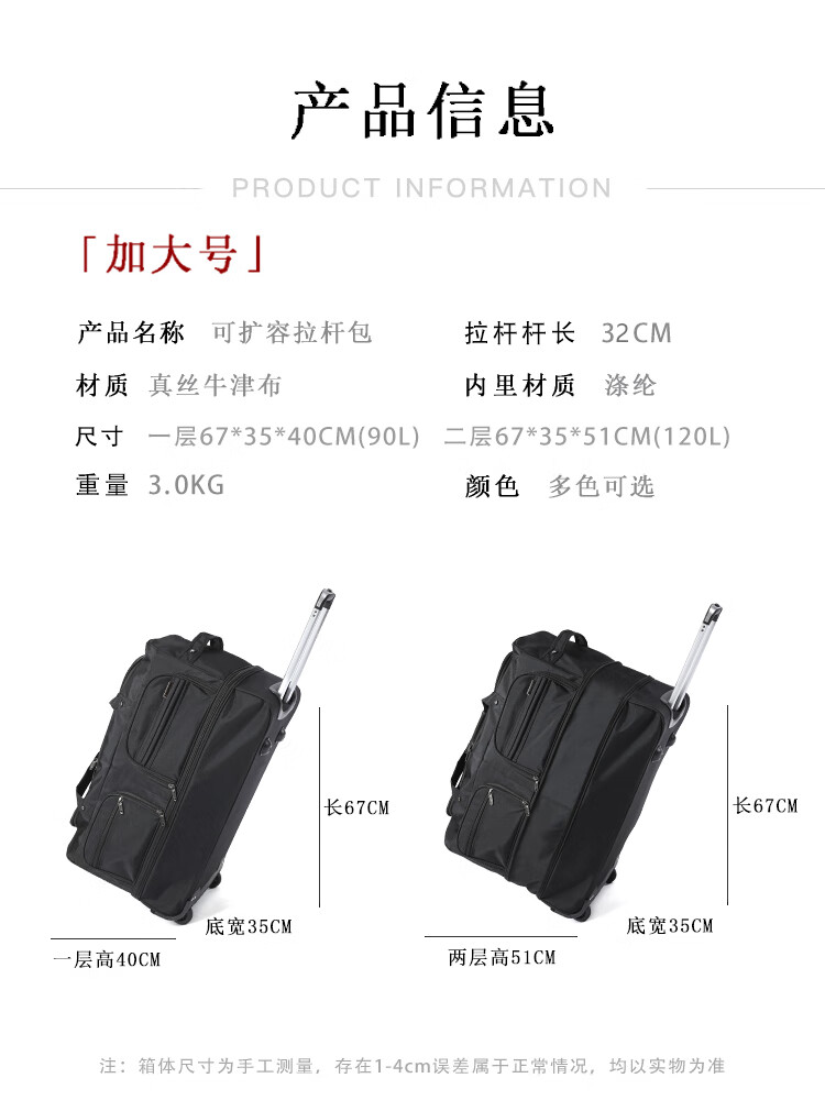 DITD DESIGN IN THE DESIGN Large-capacity travel bag checked trolley bag men's expandable foldable large bag portable heightenable luggage bag 368 black extra large size (required to be checked)