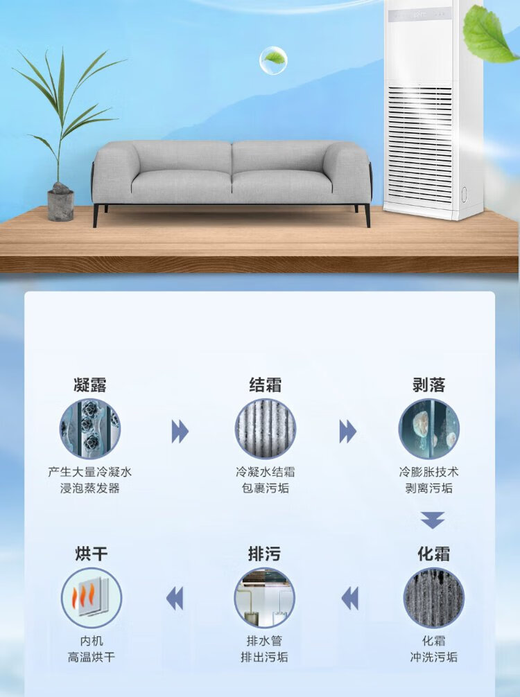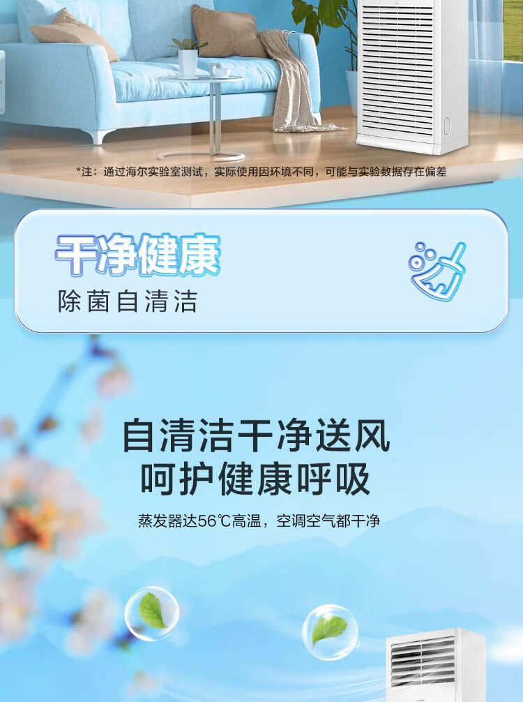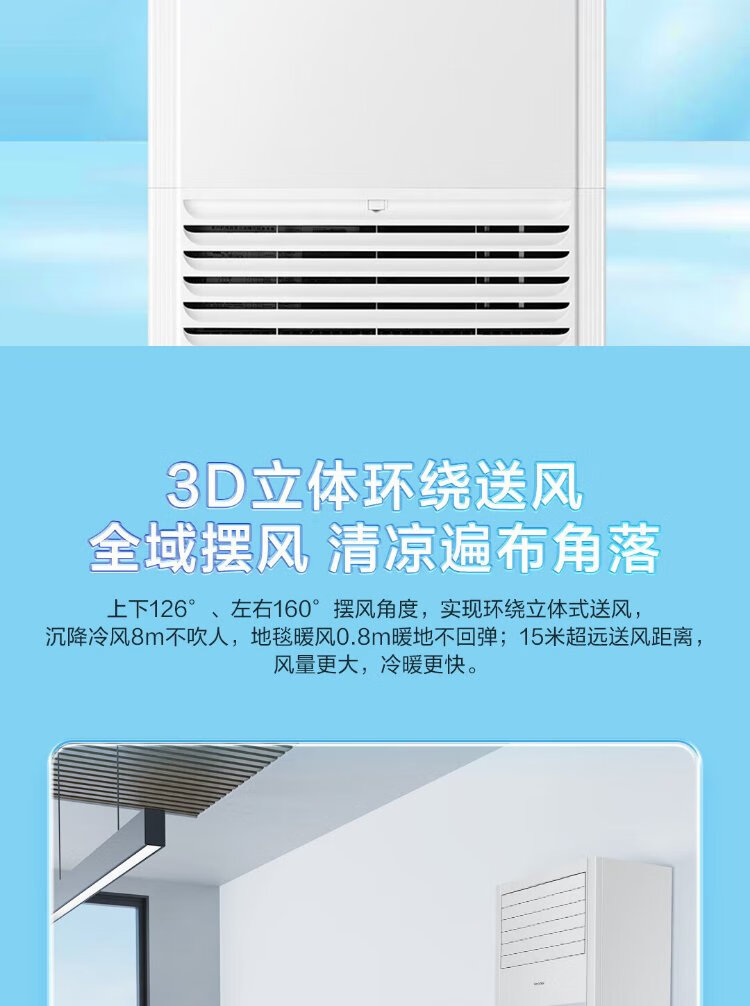 Haier 15% off national subsidy, 5 HP vertical cabinet central air conditioner, five HP variable frequency self-cleaning, fast cooling and heating, large air volume, commercial office 380V voltage, cooling and heating, 5 HP, first-class energy efficiency, high efficiency and energy saving, sterilization and self-cleaning