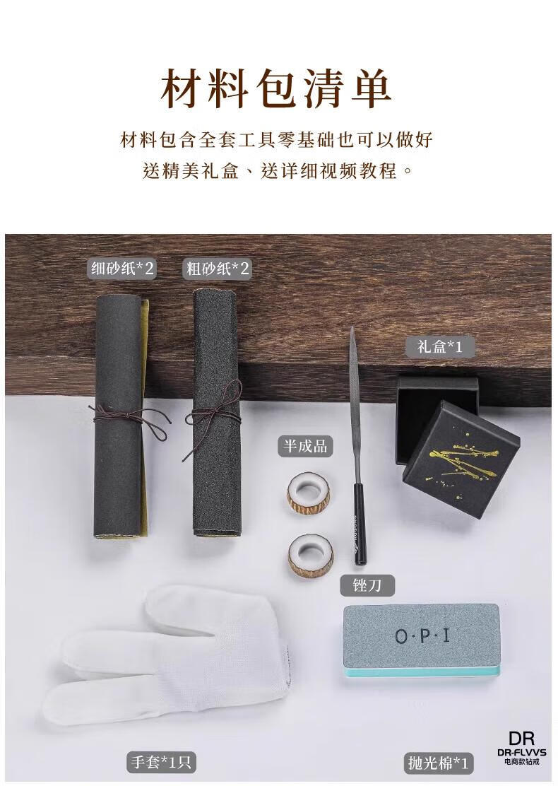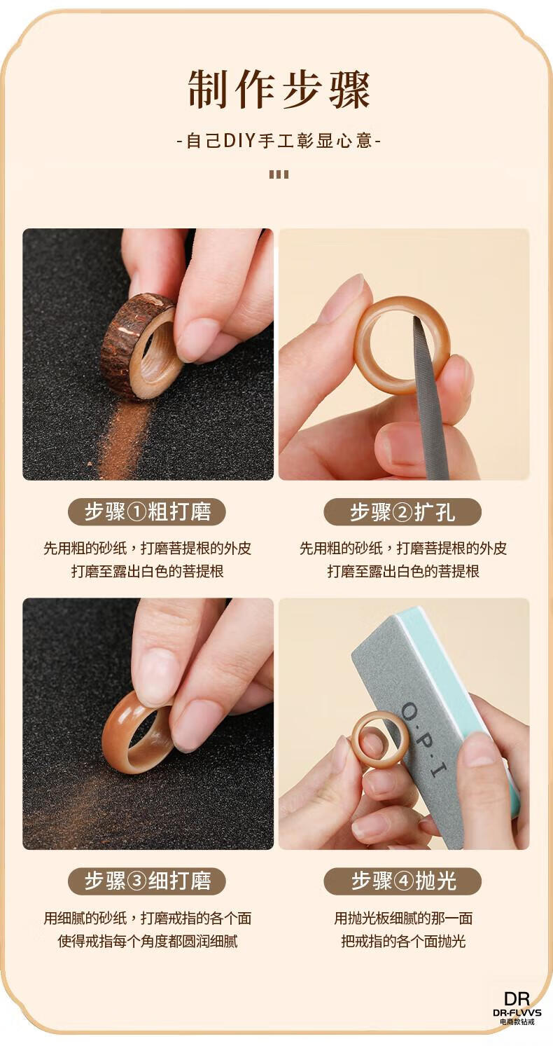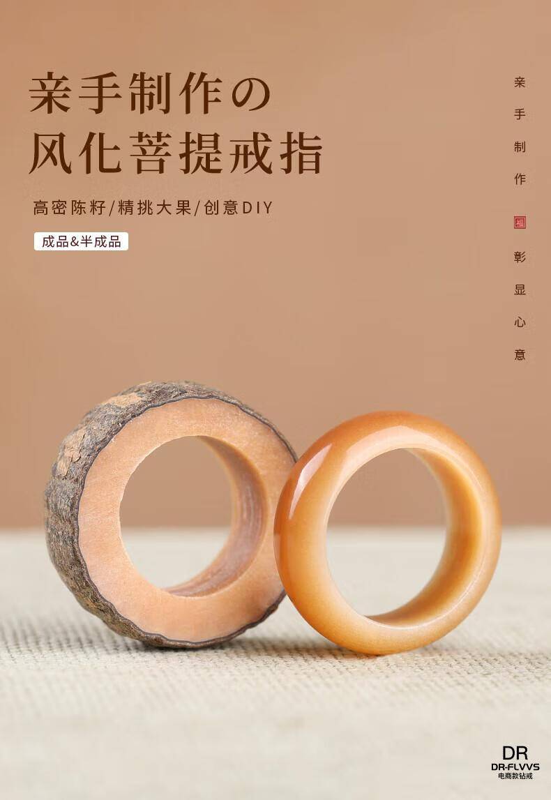 DL 1998 Fat Donglai same Bodhi ring Chen Zi white jade root female self-made semi-finished original seed handmade diy original fruit male couple green pair ring coarse sand + fine sand + polishing *2