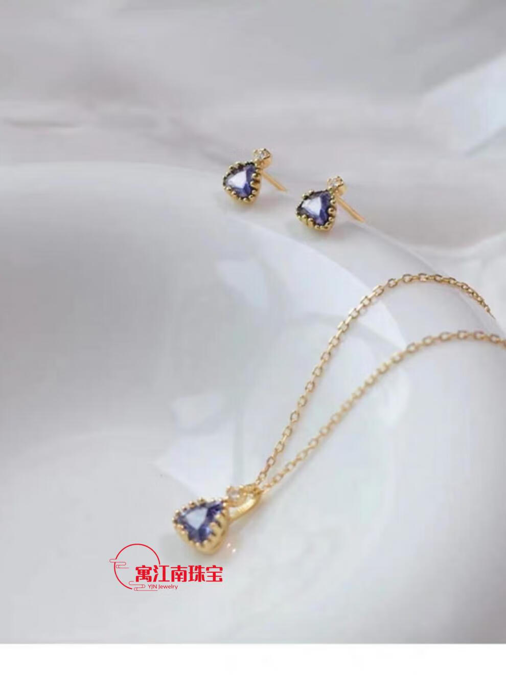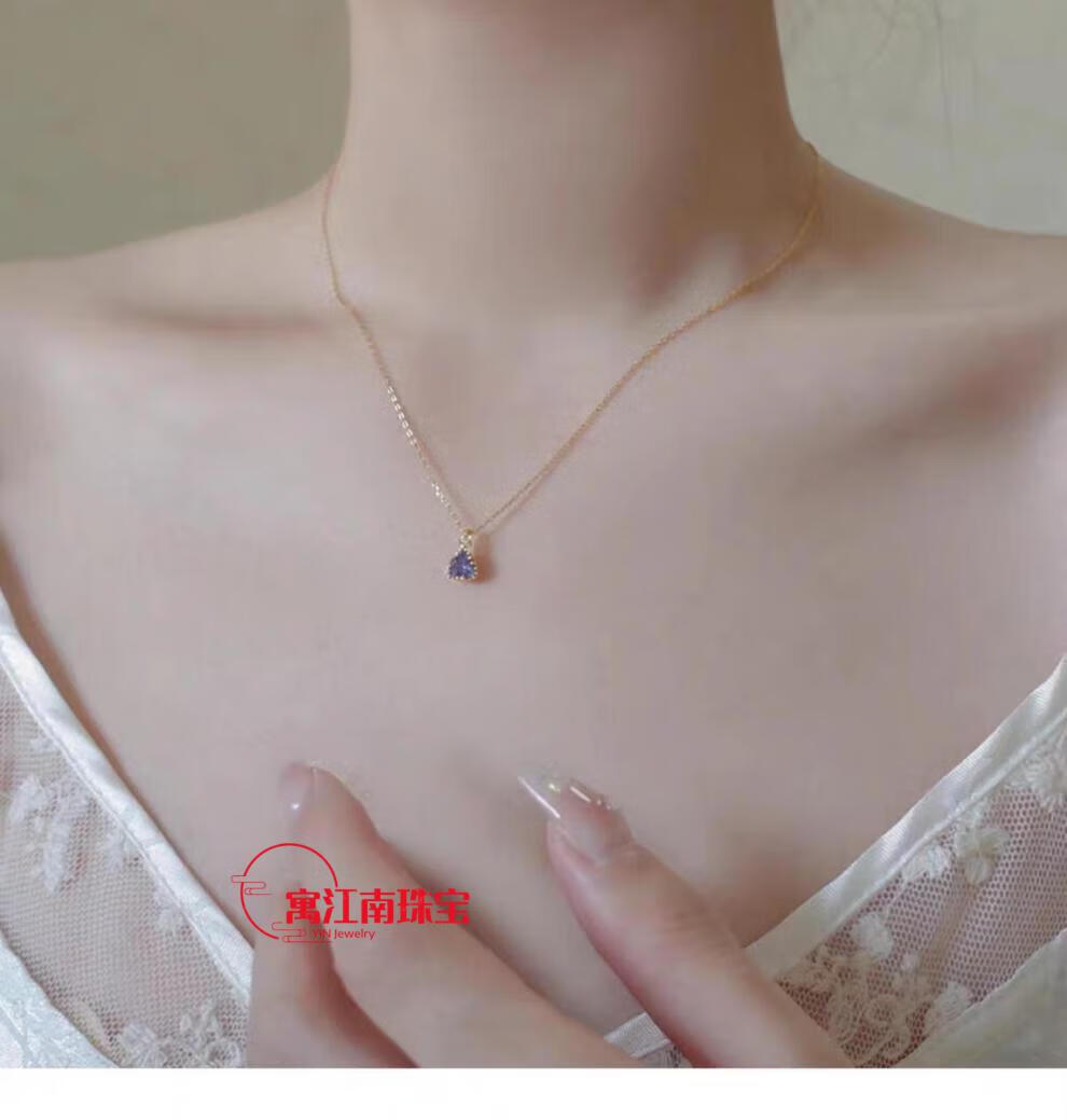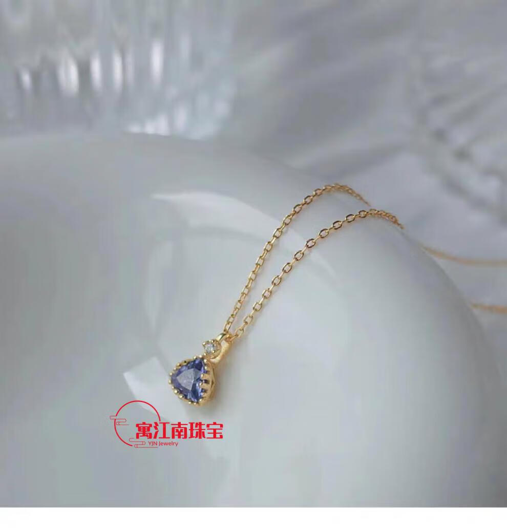 Fat Donglai's same style tanzanite necklace Japanese natural 18K gold light luxury amethyst pendant Tanzanite necklace