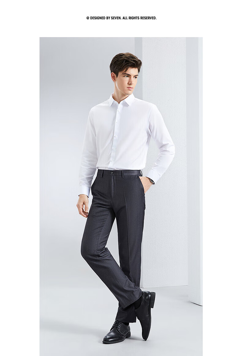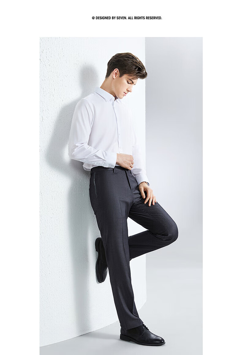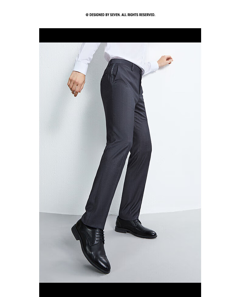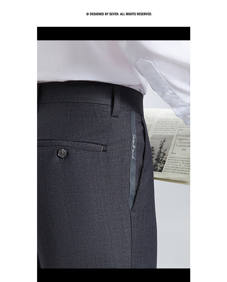 SEVEN rhino pleated trousers men's trousers spring and summer business versatile gray straight suit long trousers dark gray 32 170/80A