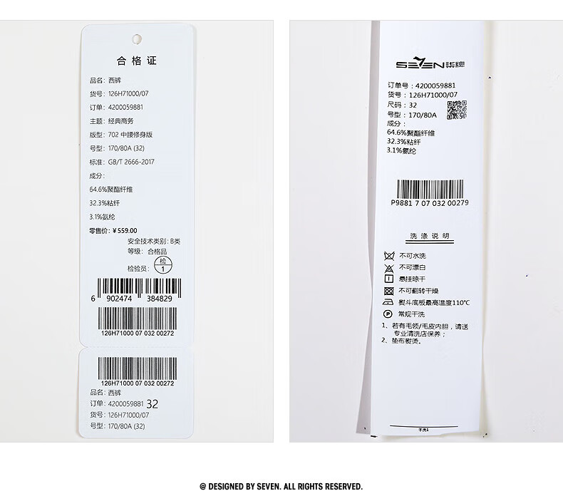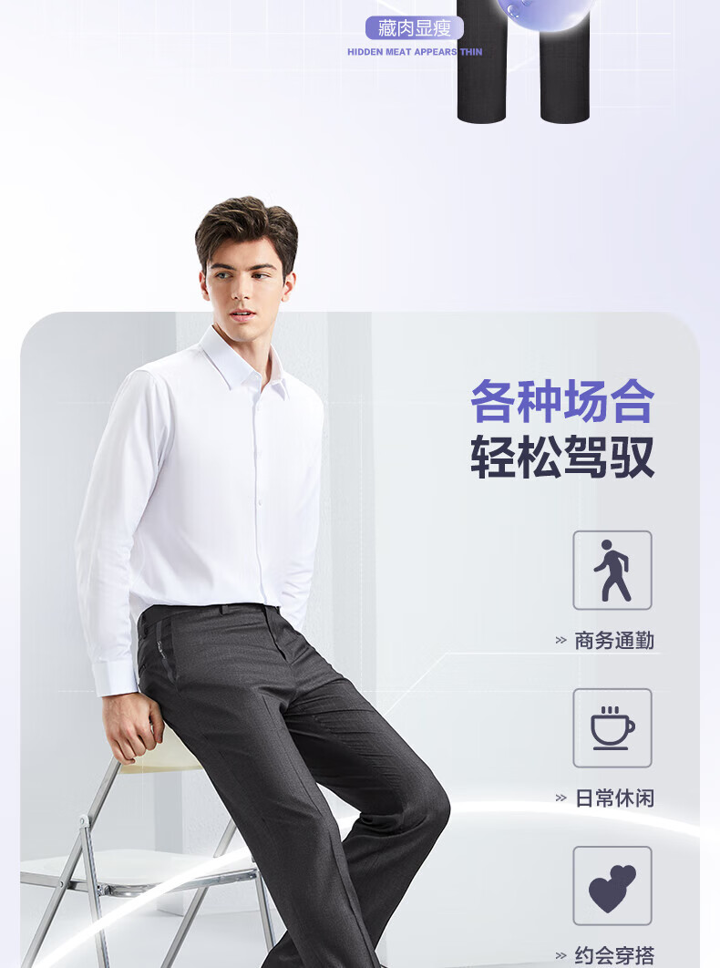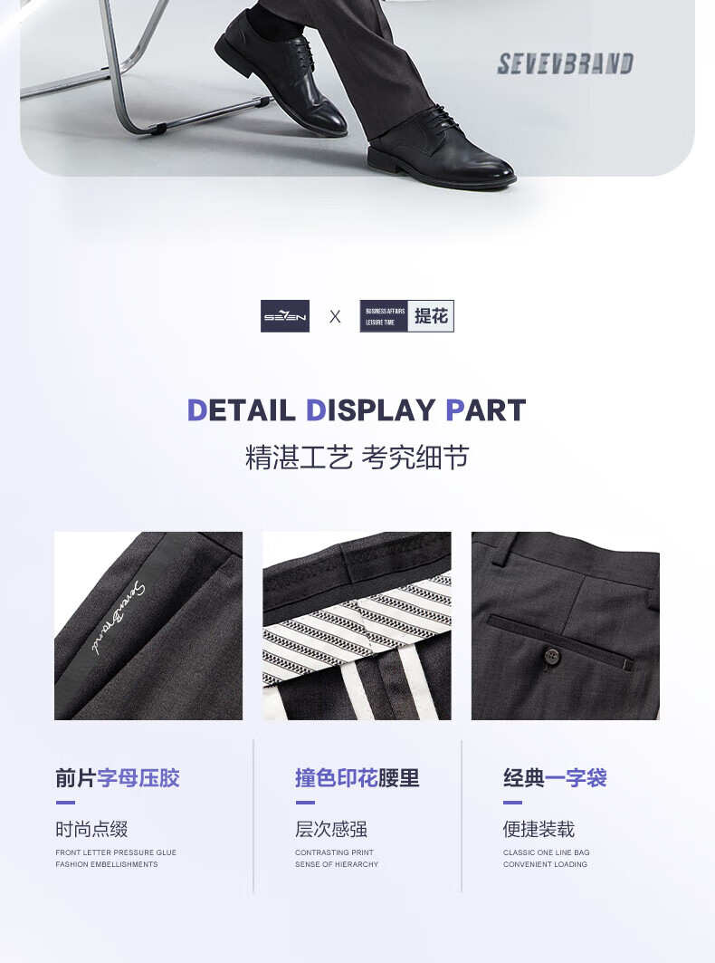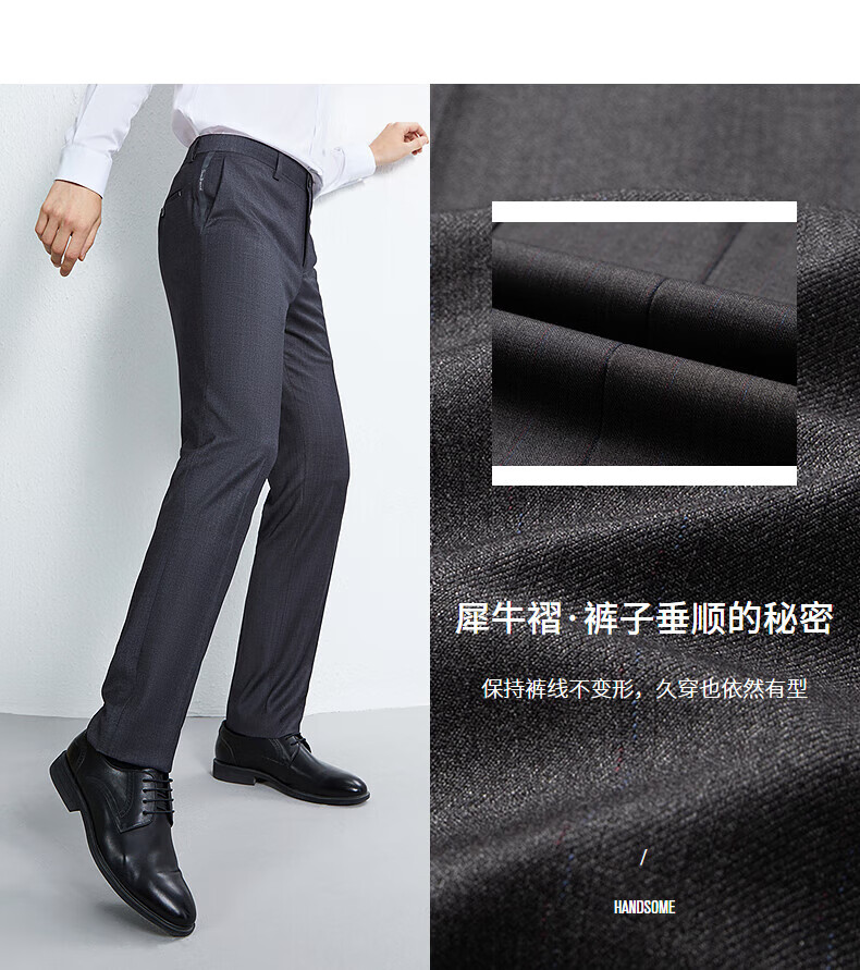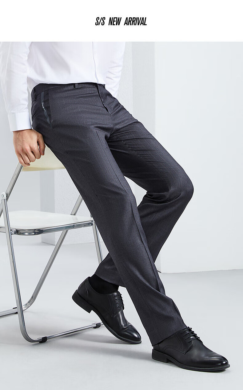 SEVEN rhino pleated trousers men's trousers spring and summer business versatile gray straight suit long trousers dark gray 32 170/80A