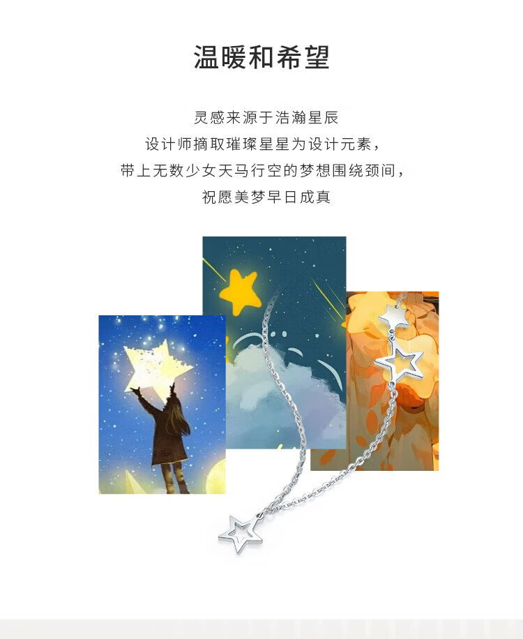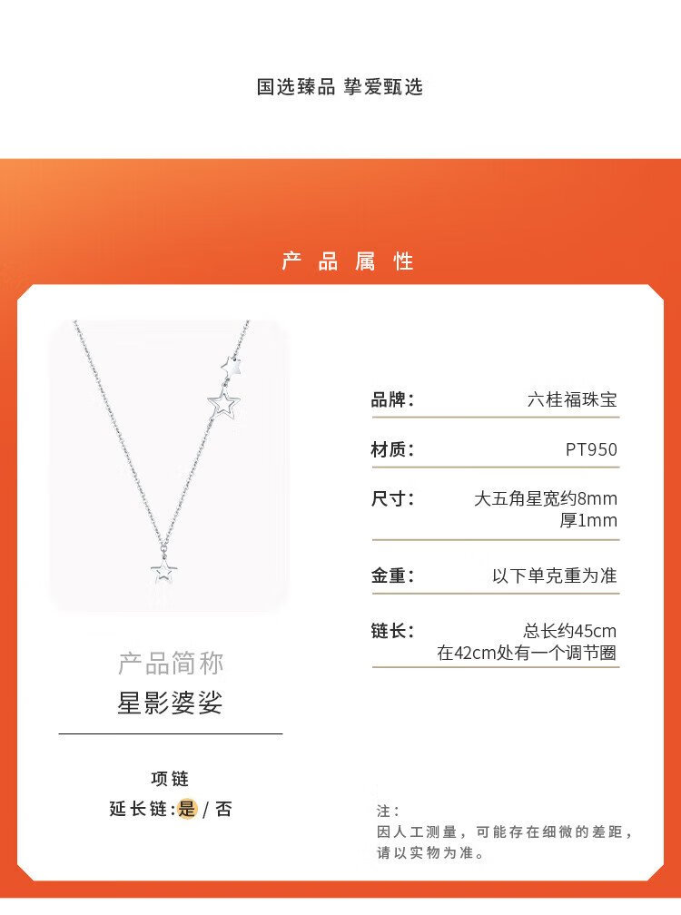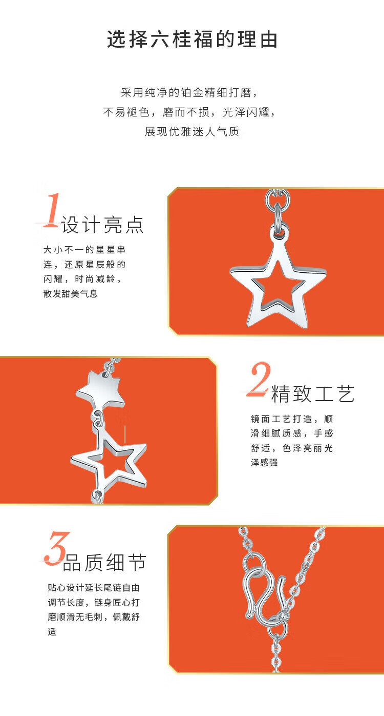 Liuguifu Jewelry platinum necklace for women PT950 five-pointed star platinum clavicle chain Christmas gift for girlfriend 3.55g