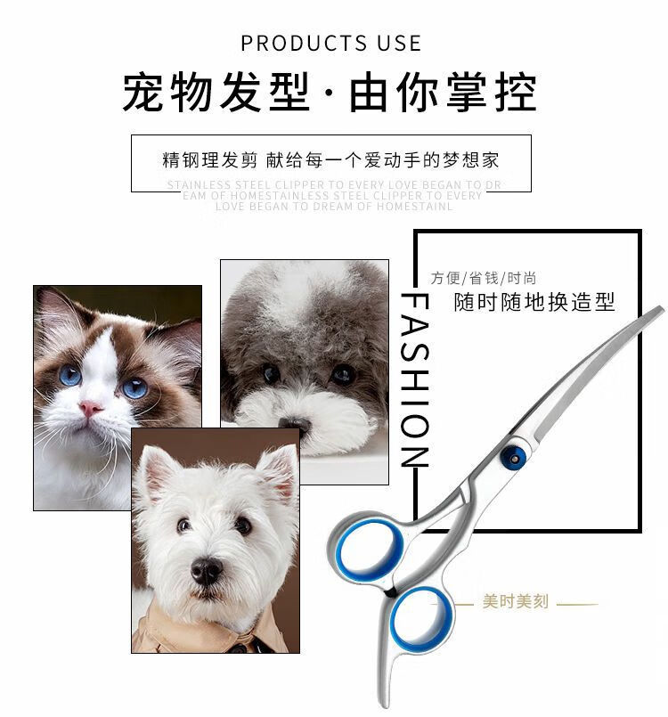 Pet Grooming Kits and Dogs Teddy Bichon Hair Cutting and Trimming Tools Special Curved and Straight Scissors Artifact Set Complete Set of Four Comes with Steel Comb + Bag (Store Manager)