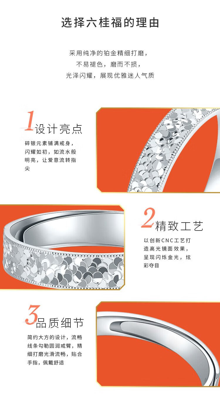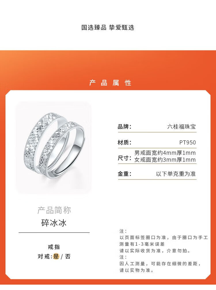 Liuguifu Jewelry platinum ring for men and women PT950 broken ice couple ring platinum ring birthday gift 3.45g women's ring