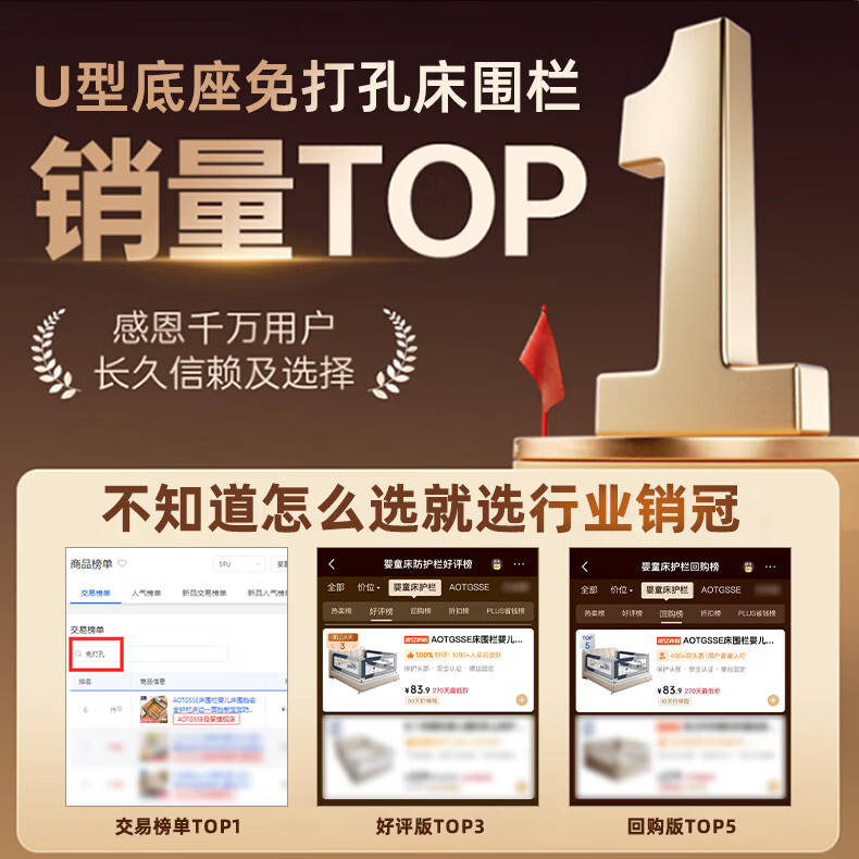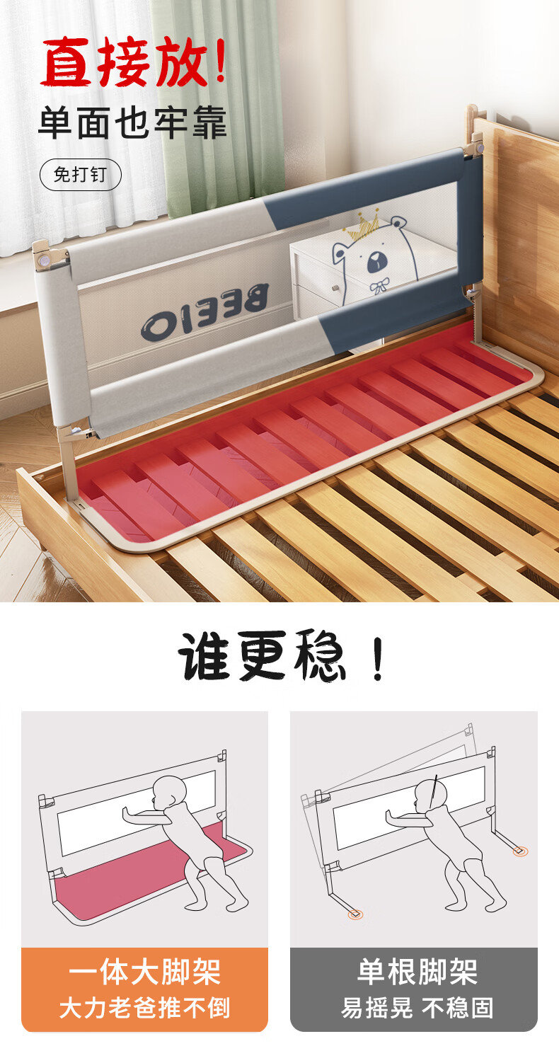 AOTGSSE bed fence crib fence safety guardrail bed side baffle baby anti-fall bed fence no punching no punching Crown Bear 1.8+2+2m three-sided