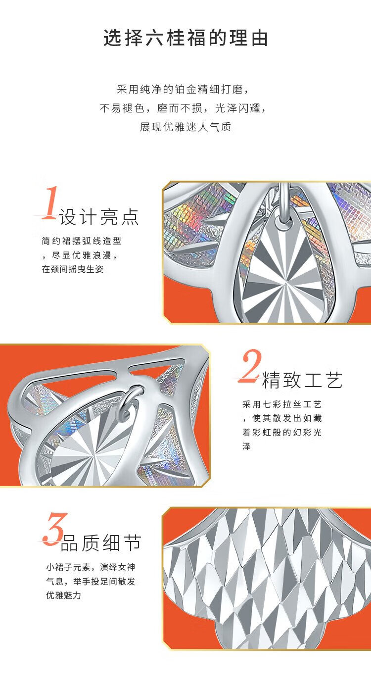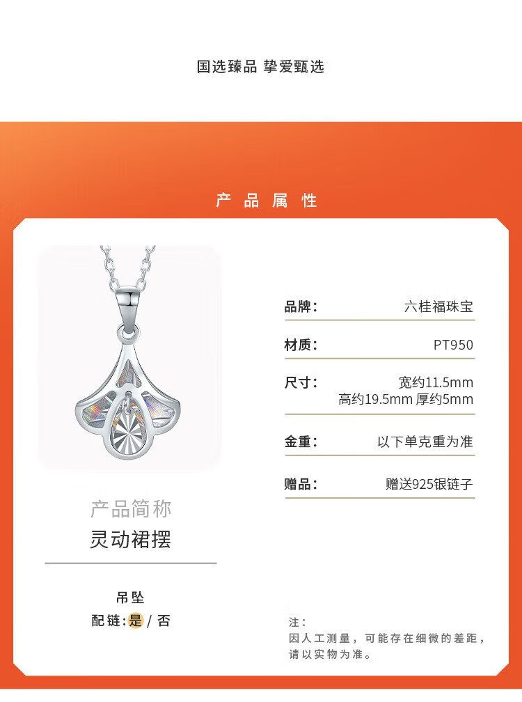 Liuguifu Jewelry Platinum Pendant Female PT950 Smart Skirt Platinum Pendant Birthday Gift Necklace for Girlfriend 1.35g