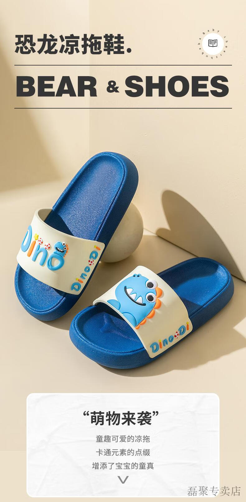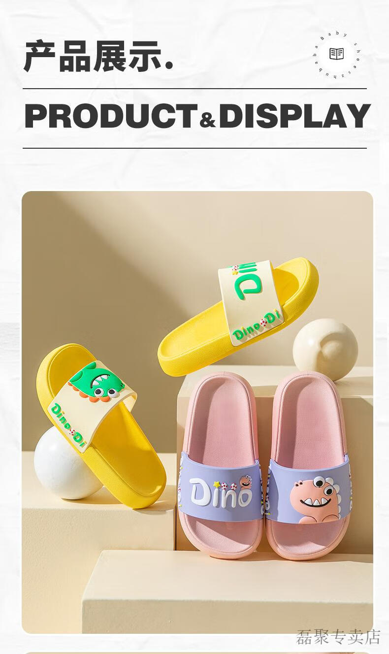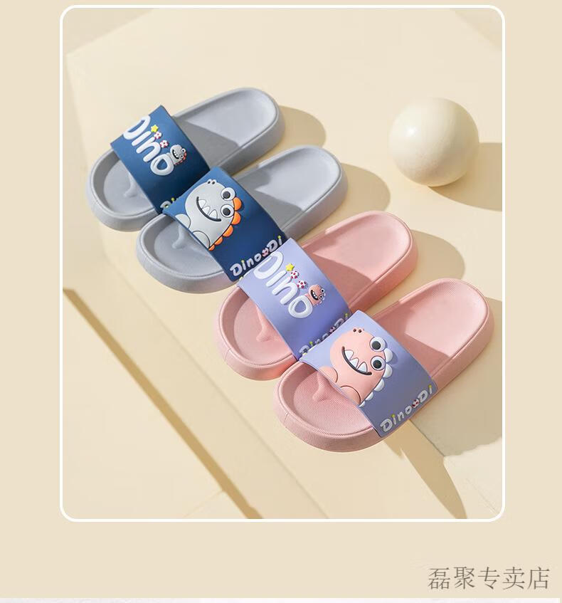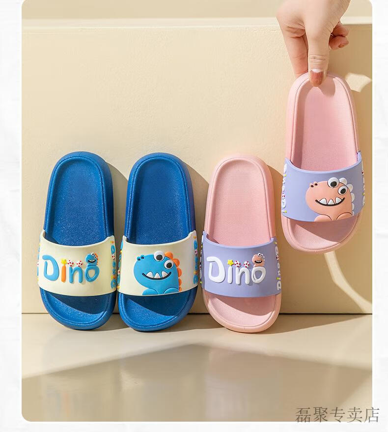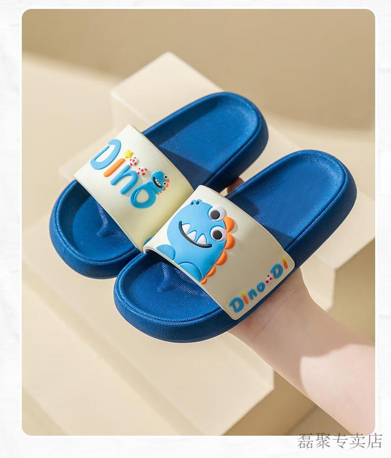 G.duck children's slippers boys summer baby slippers bath non-slip girls 2024 new parent-child home indoor shoes blue-Dinosaur 210 (shoe inner length 20.5CM)