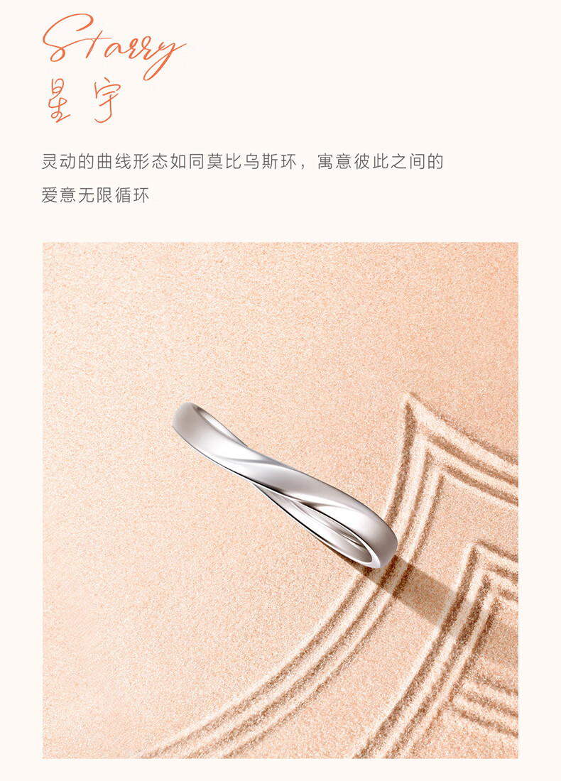 Chow Sang Sang PROMESSA Xingyu Platinum Ring Wave Couple Ring Men 94709R Pricing 17 Circles