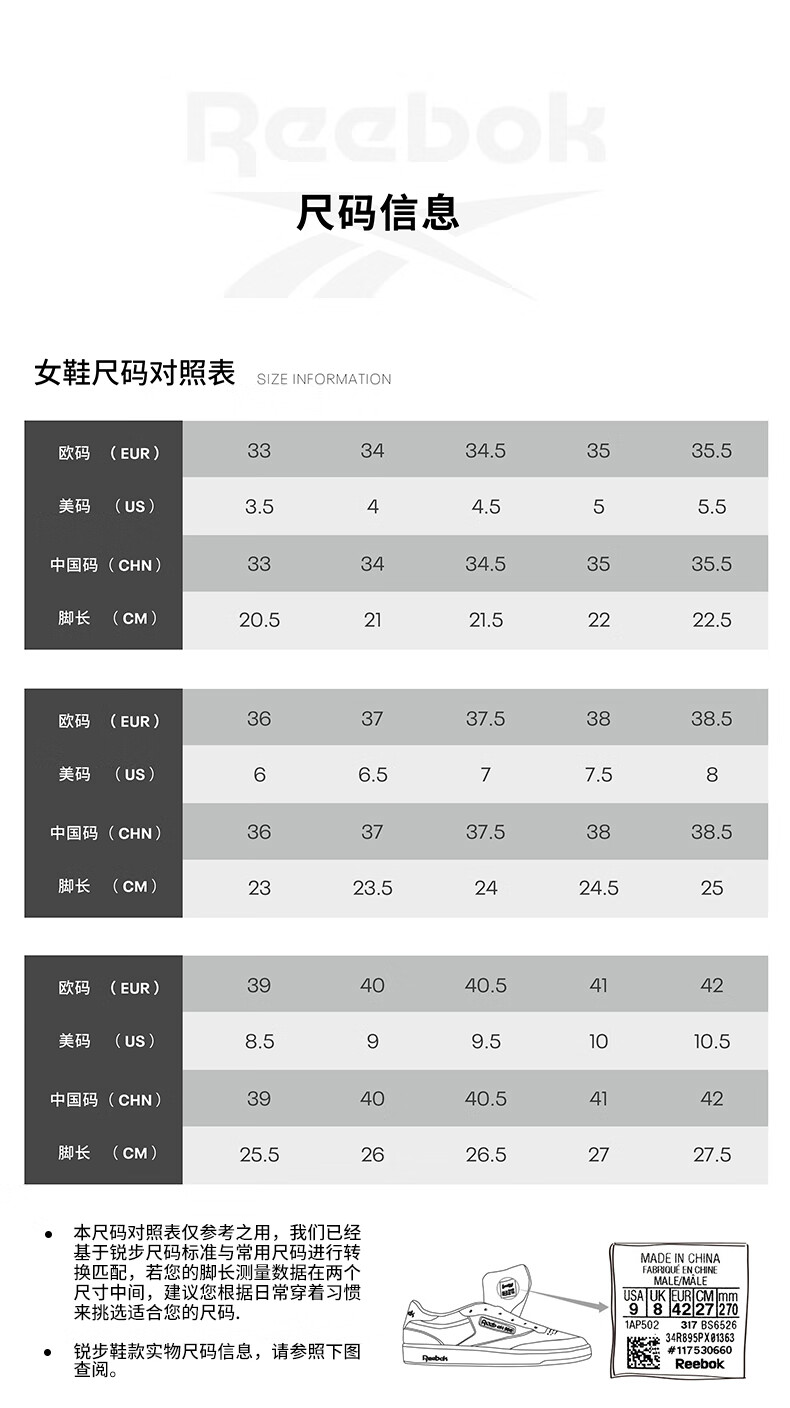 China (cm) 36 - 37 38 - 39 40 - 42 43 - 44 45 - 47