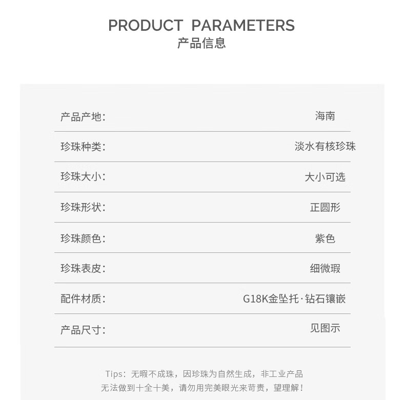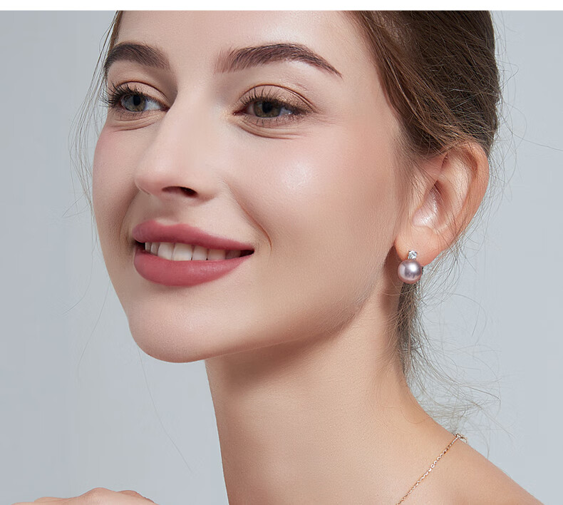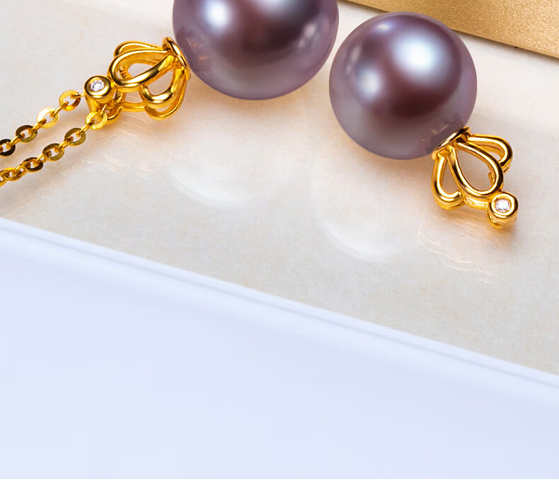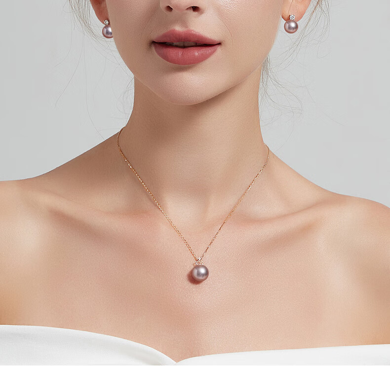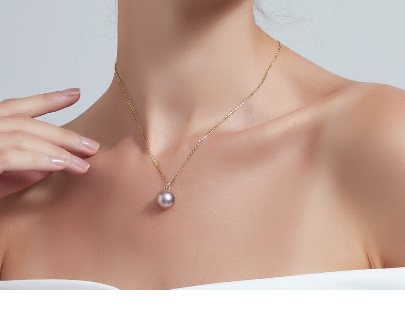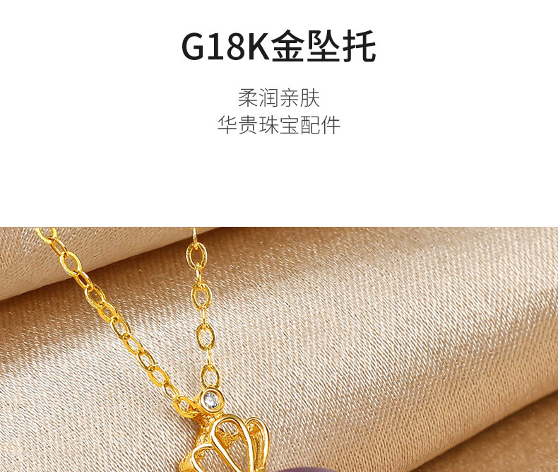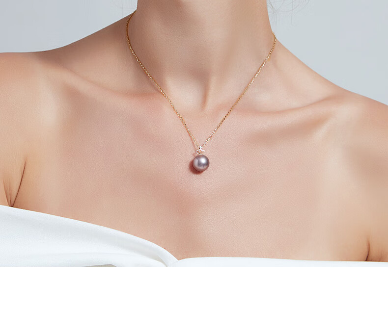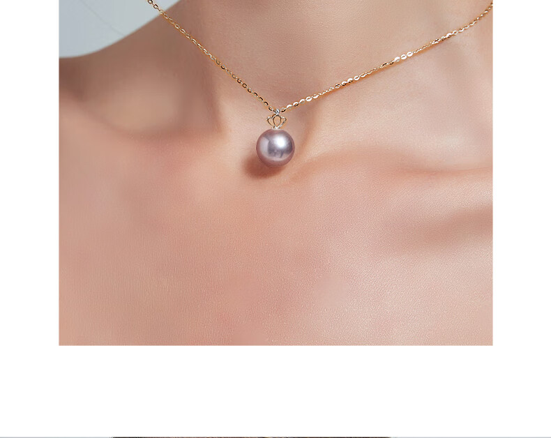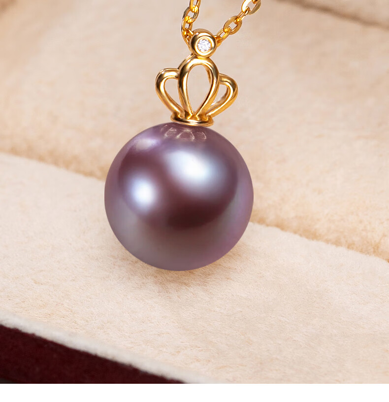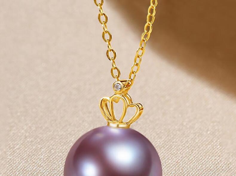 Haitong Jiuzilihuo 18K gold diamond purple freshwater pearl pendant single simple crown necklace gift for women minor flaws 10-11mm