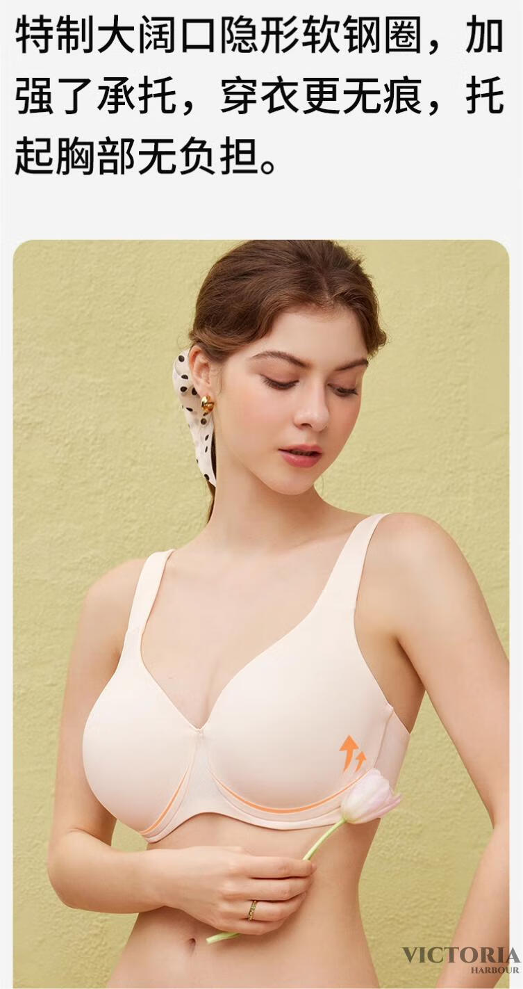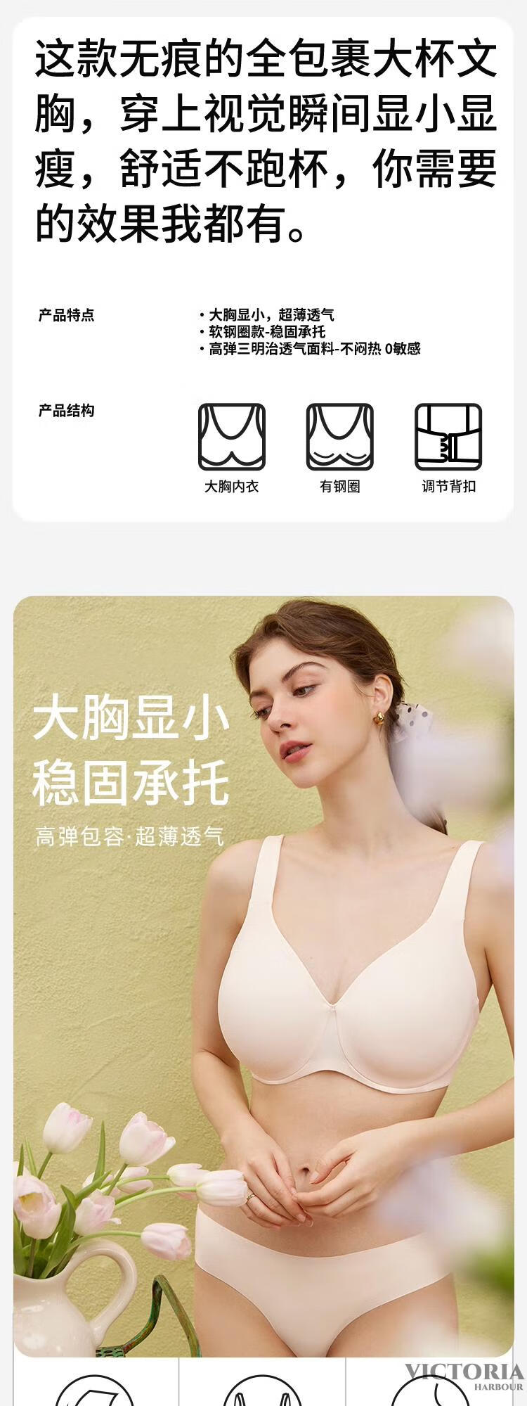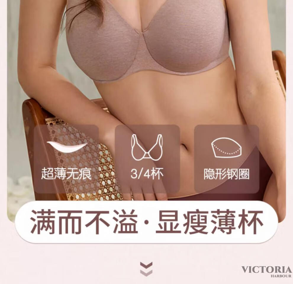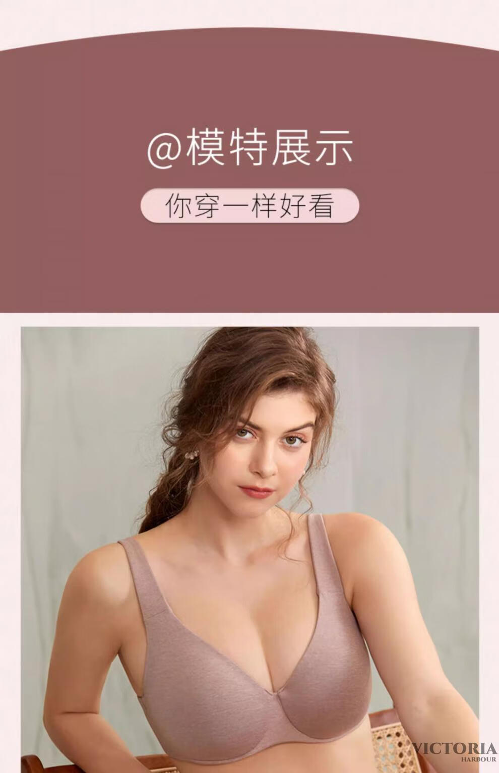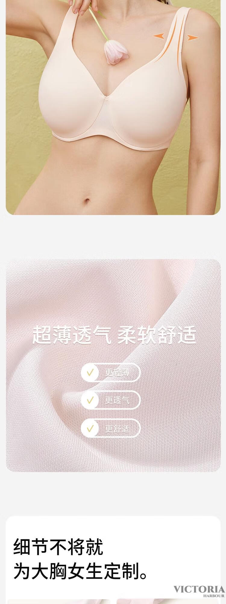 VICTORIA HARBOUR Victoria Harbor Underwear Women's New Seamless Full Cup Large Breasts Show Small Push Up Large Size Anti-Sagging Thin Bra Mocha Brown Smooth Thin 80C