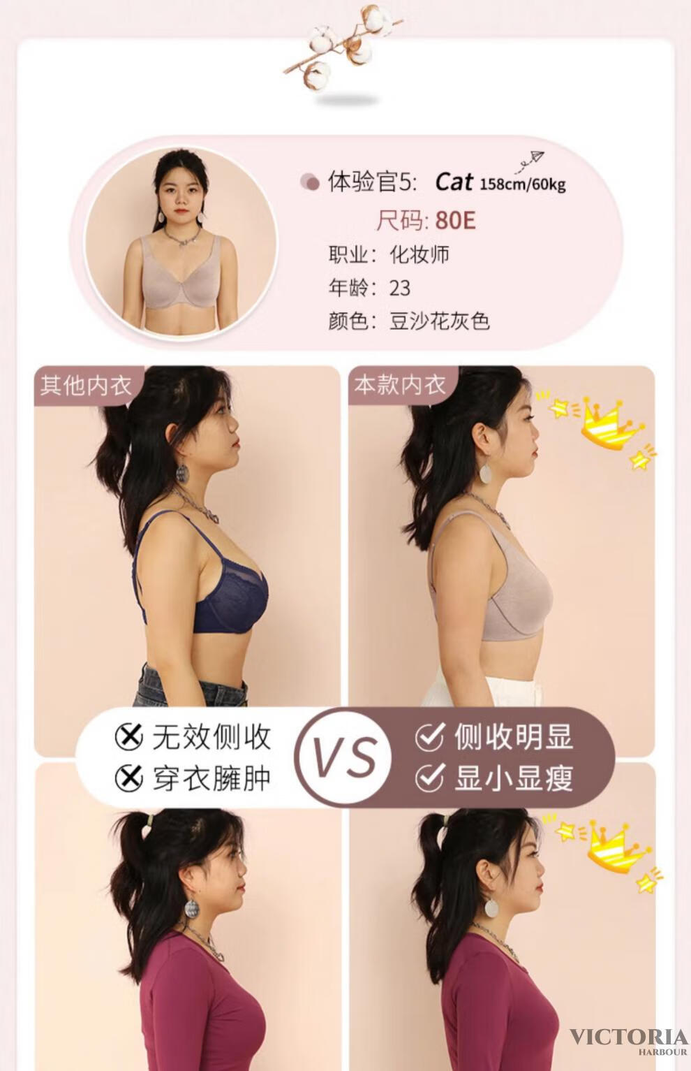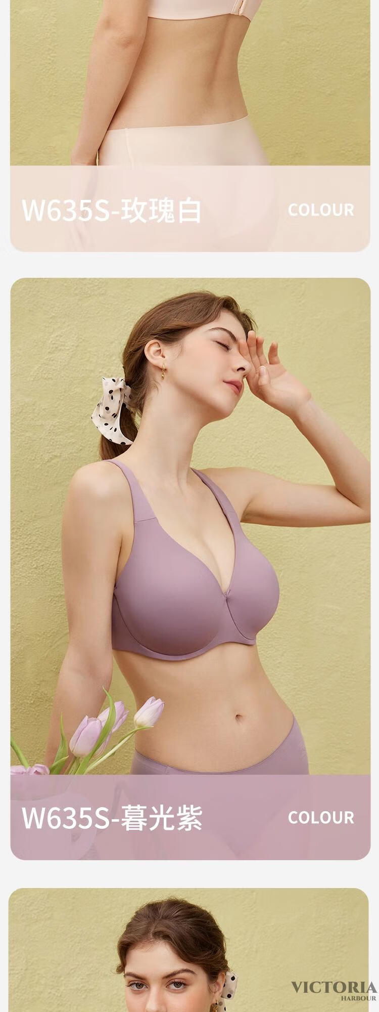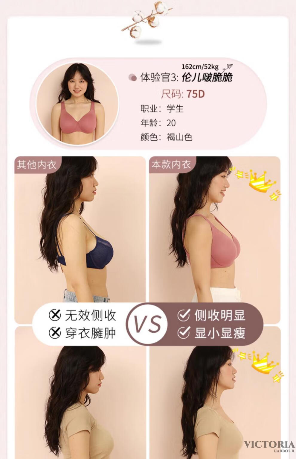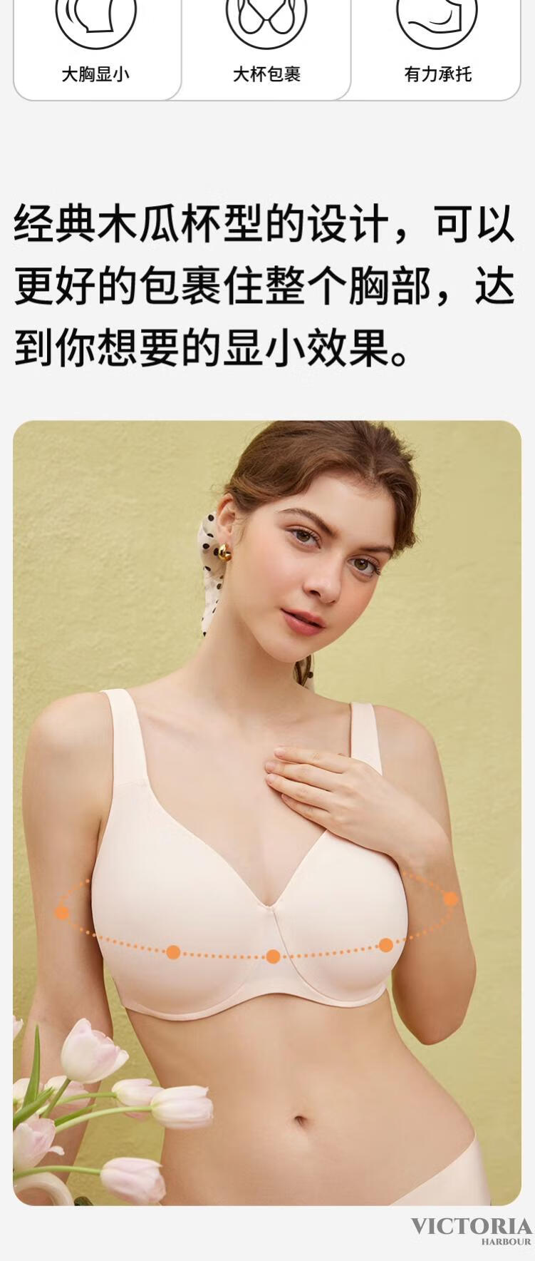 VICTORIA HARBOUR Victoria Harbor Underwear Women's New Seamless Full Cup Large Breasts Show Small Push Up Large Size Anti-Sagging Thin Bra Mocha Brown Smooth Thin 80C