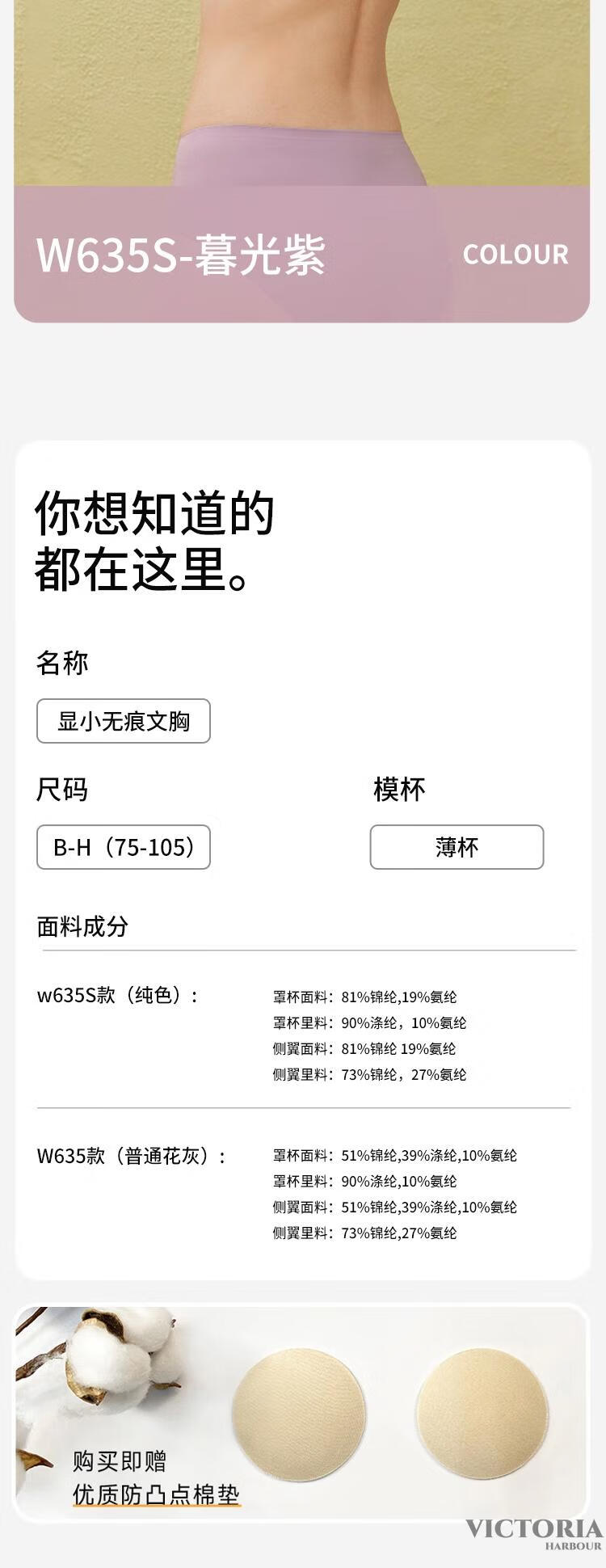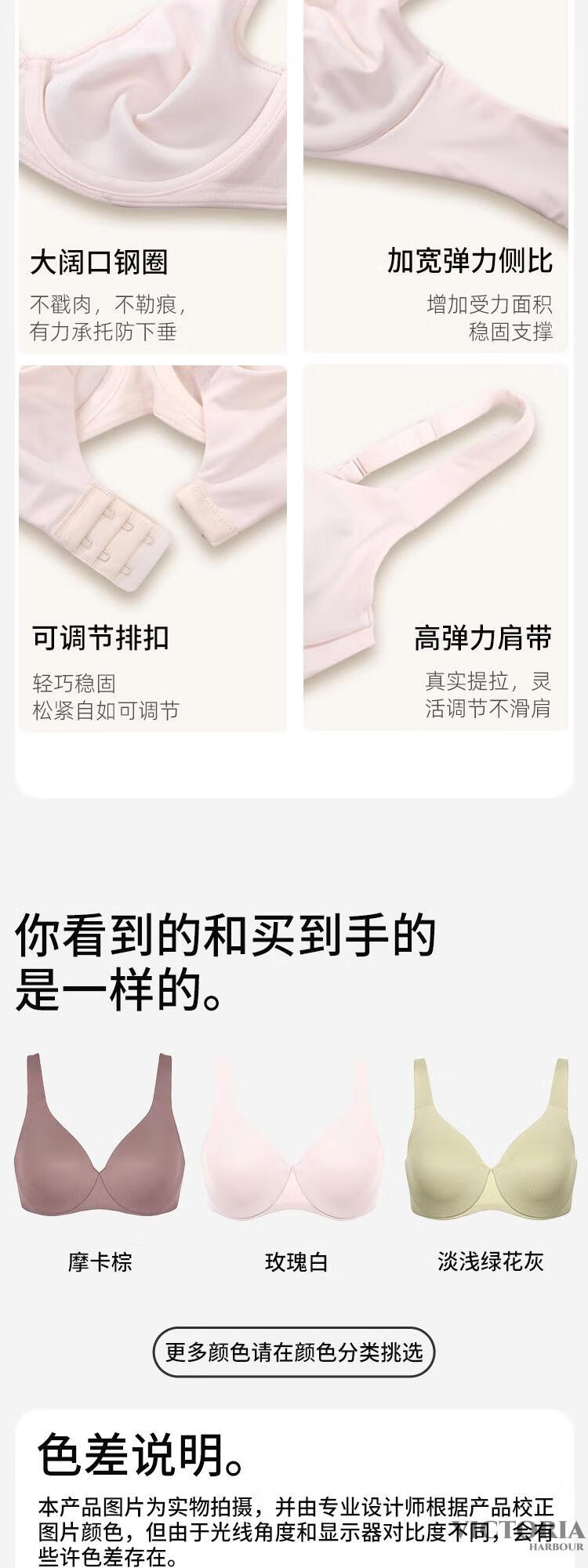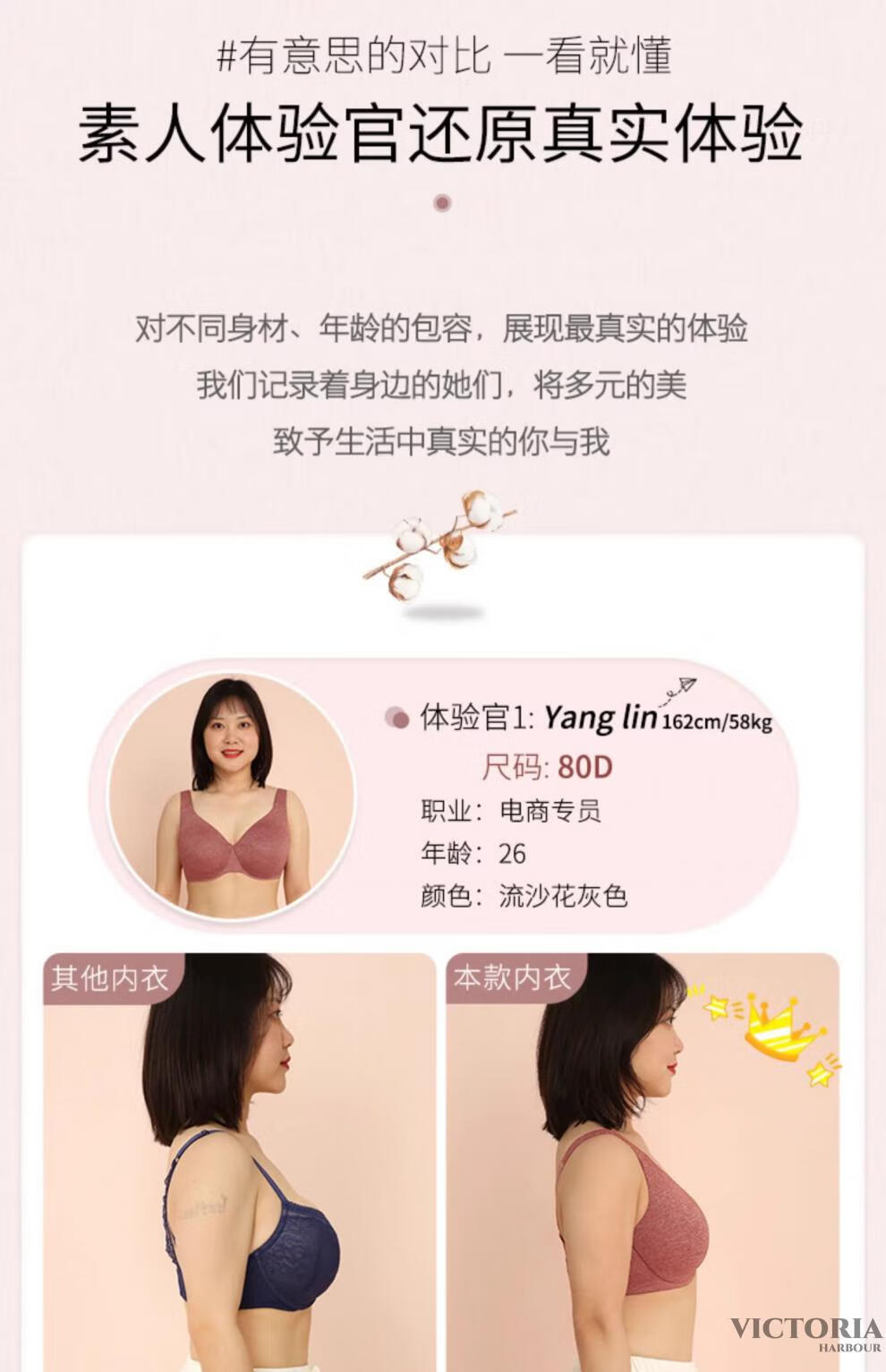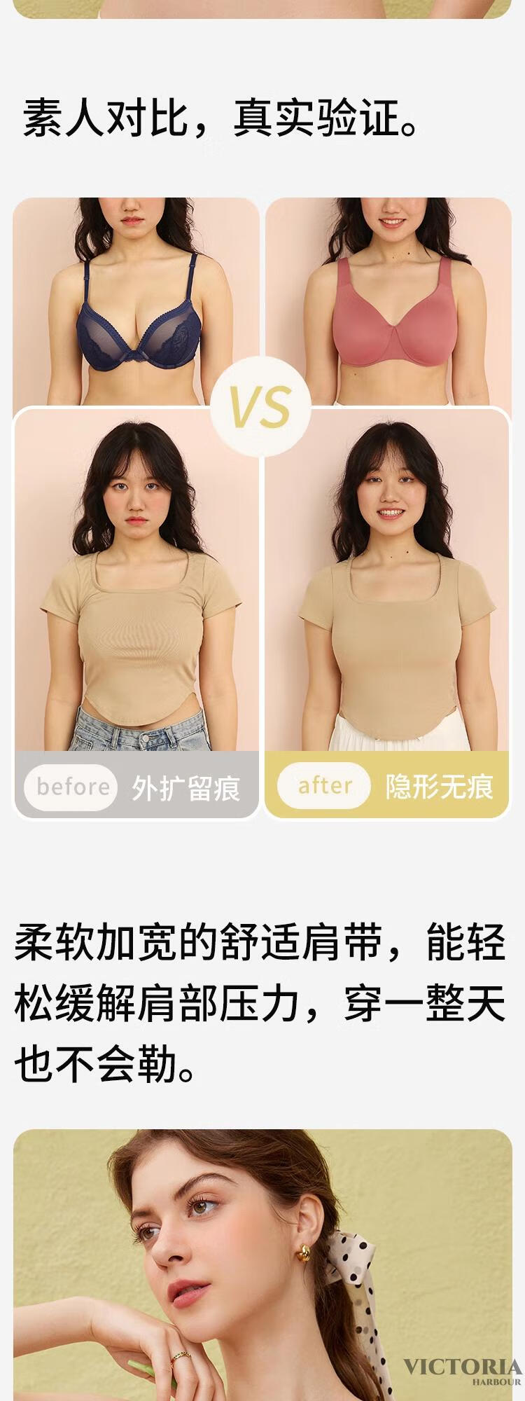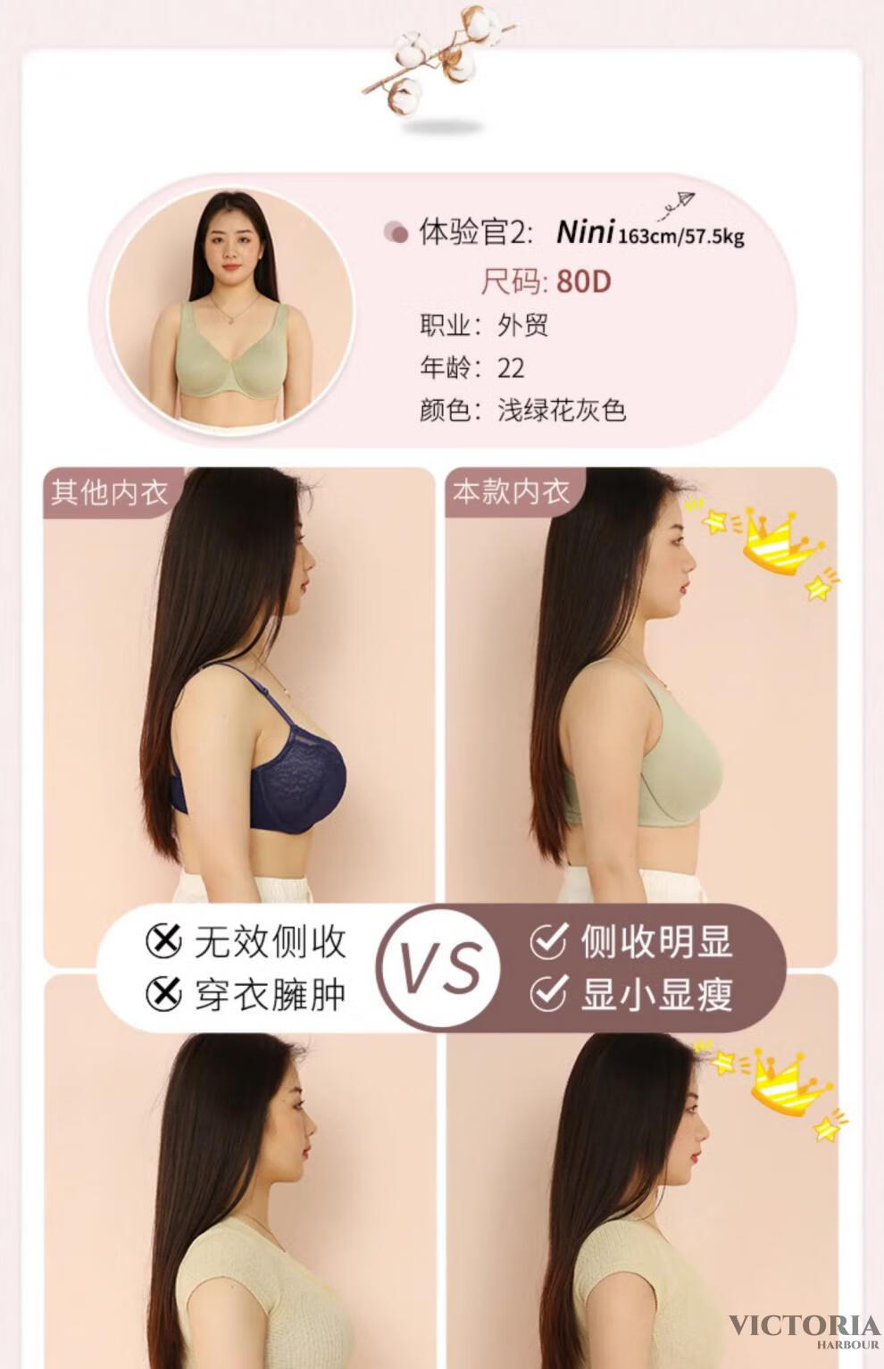 VICTORIA HARBOUR Victoria Harbor Underwear Women's New Seamless Full Cup Large Breasts Show Small Push Up Large Size Anti-Sagging Thin Bra Mocha Brown Smooth Thin 80C