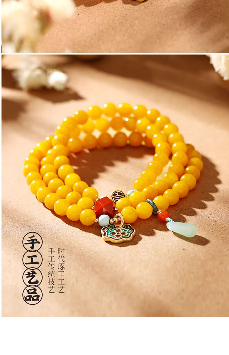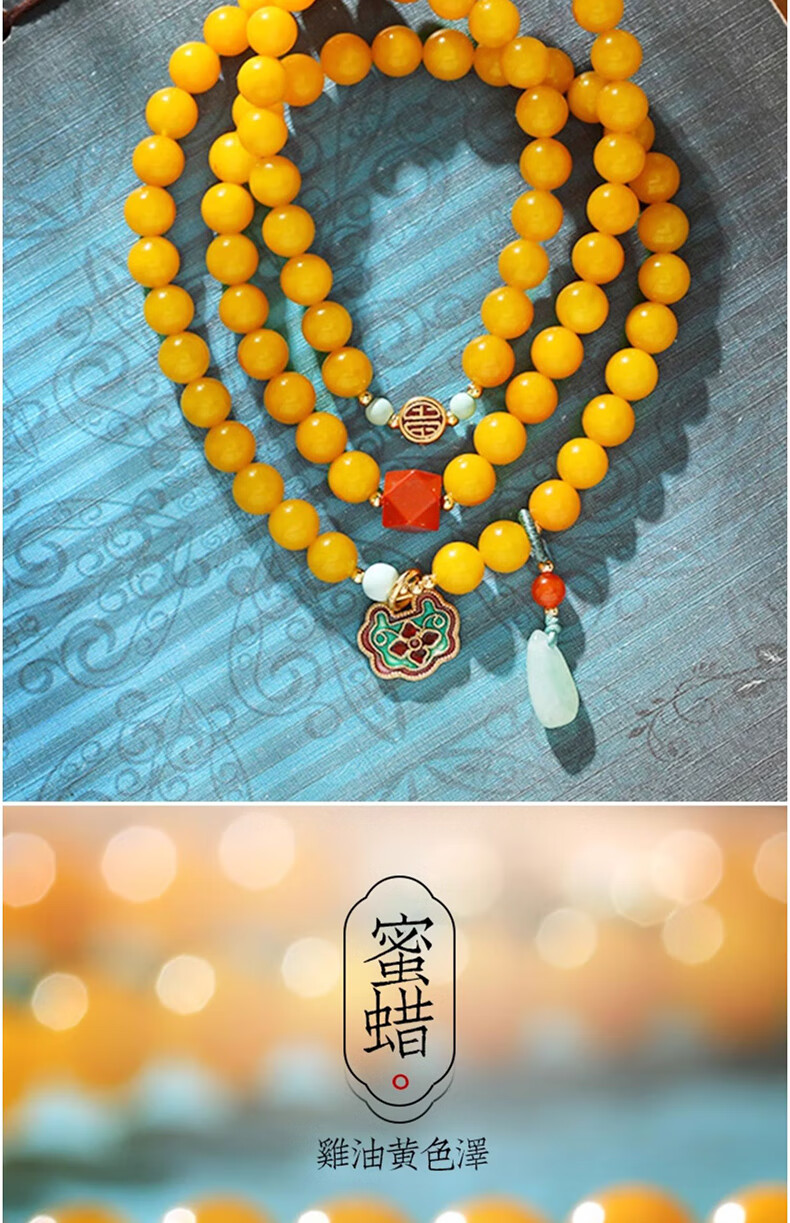 La Yun Feiyin Natural Beeswax Bracelet Women's Multiple Circles Chicken Oil Yellow Bracelet Full of Honey Old Honey Amber High-end Temperament Accessories Hand Accessories Multiple Circles Full of dense Beeswax Bracelets
