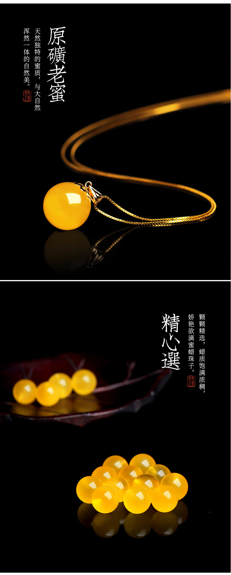 Layun Feiyin natural beeswax pendant for women amber chicken fat yellow old beeswax necklace 18K gold gold buckle inlaid with round beads 11-12mm+925 silver gold chain