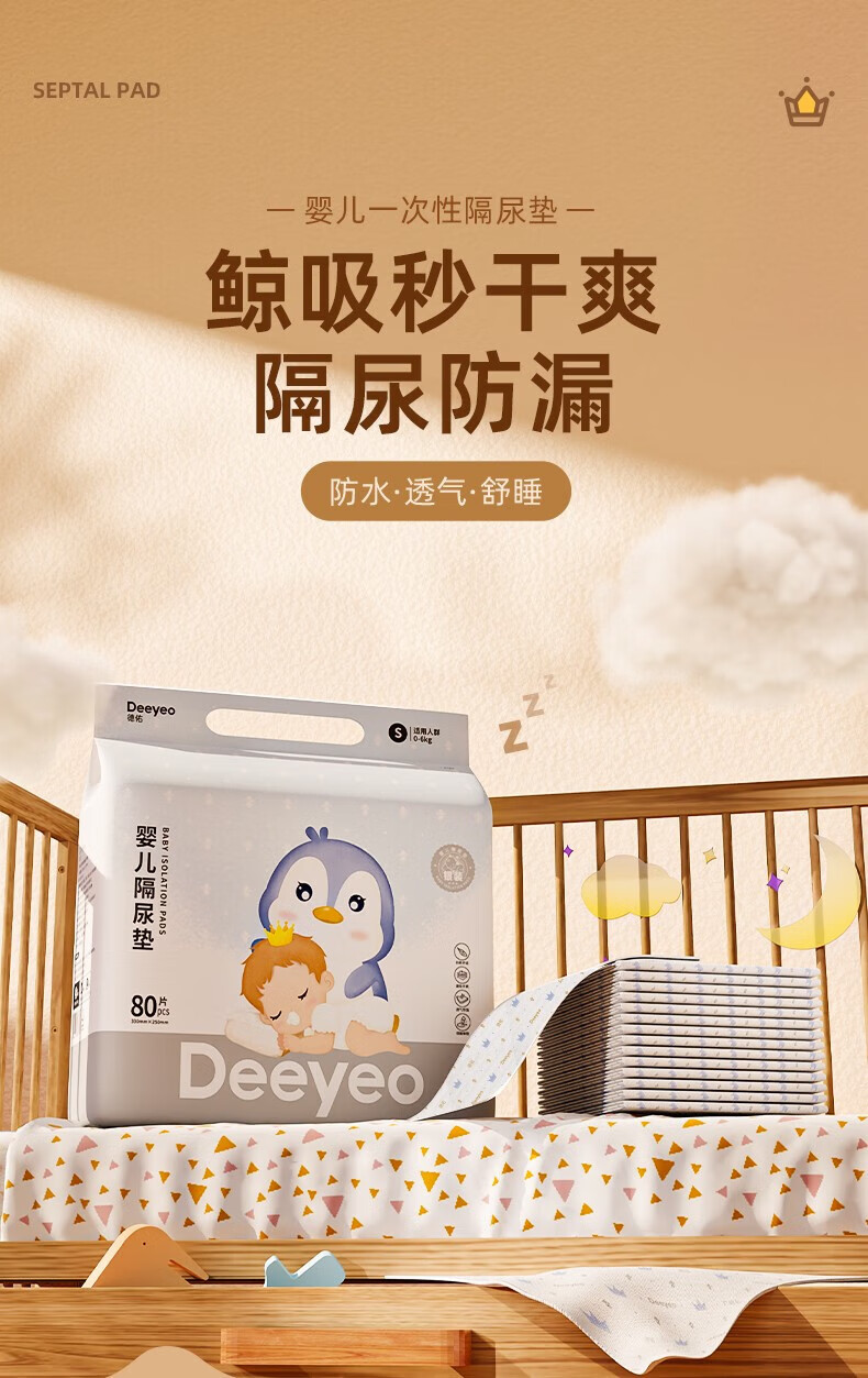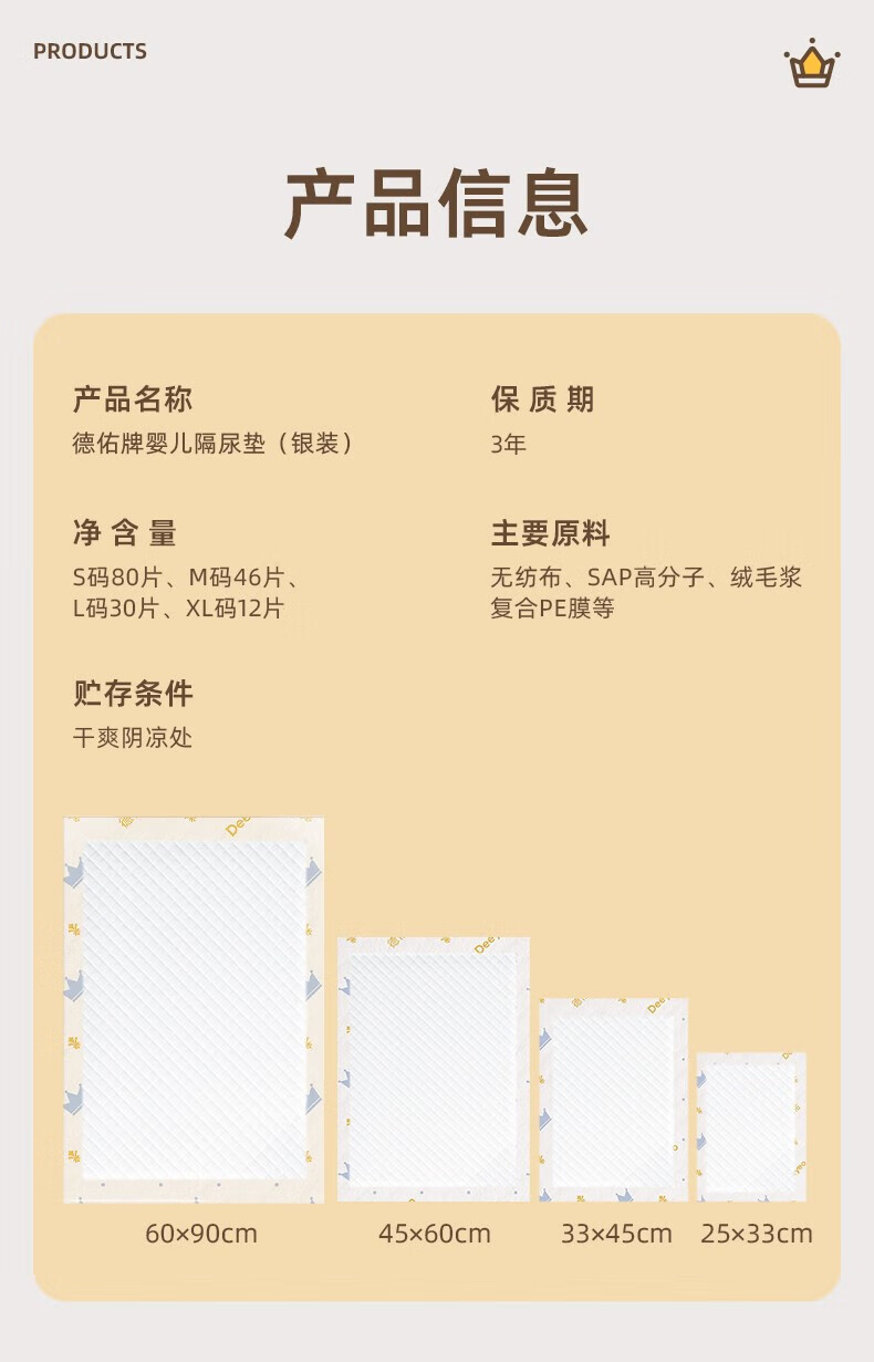 Deyou baby diaper pad disposable diaper waterproof breathable non-washable nursing pad newborn baby maternity pad diaper pad Silver M size 46 pieces/pack *4 pack