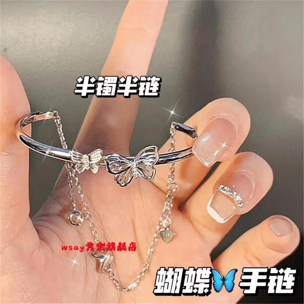 WSAY bestie bracelet high-end in butterfly girl light luxury niche exquisite half bracelet half chain tassel bracelet hand butterfly tassel bracelet 2 pieces