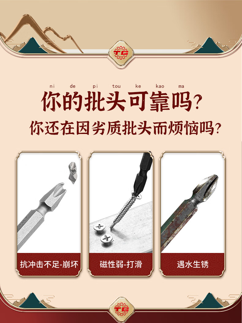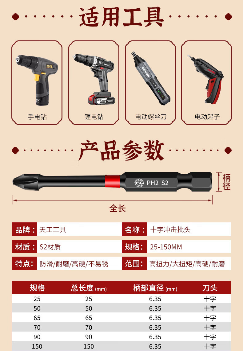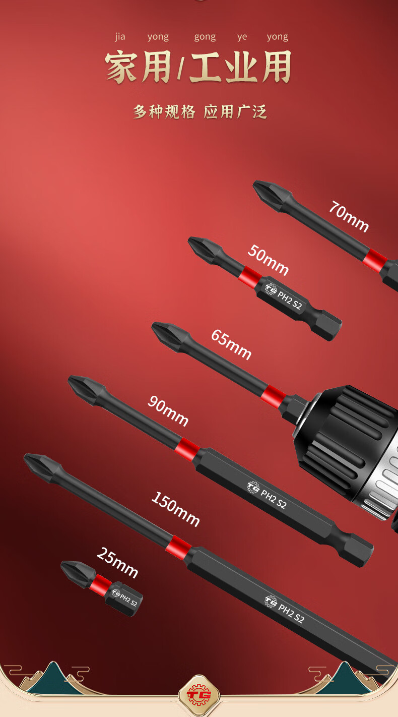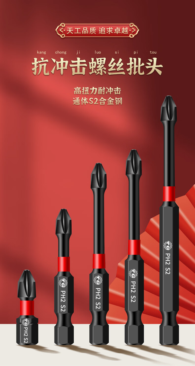 TIANGONG cross bit high hardness hand drill impact strong magnetic bit screw set electric screwdriver bit strong magnetic impact resistance 65mm 1 piece