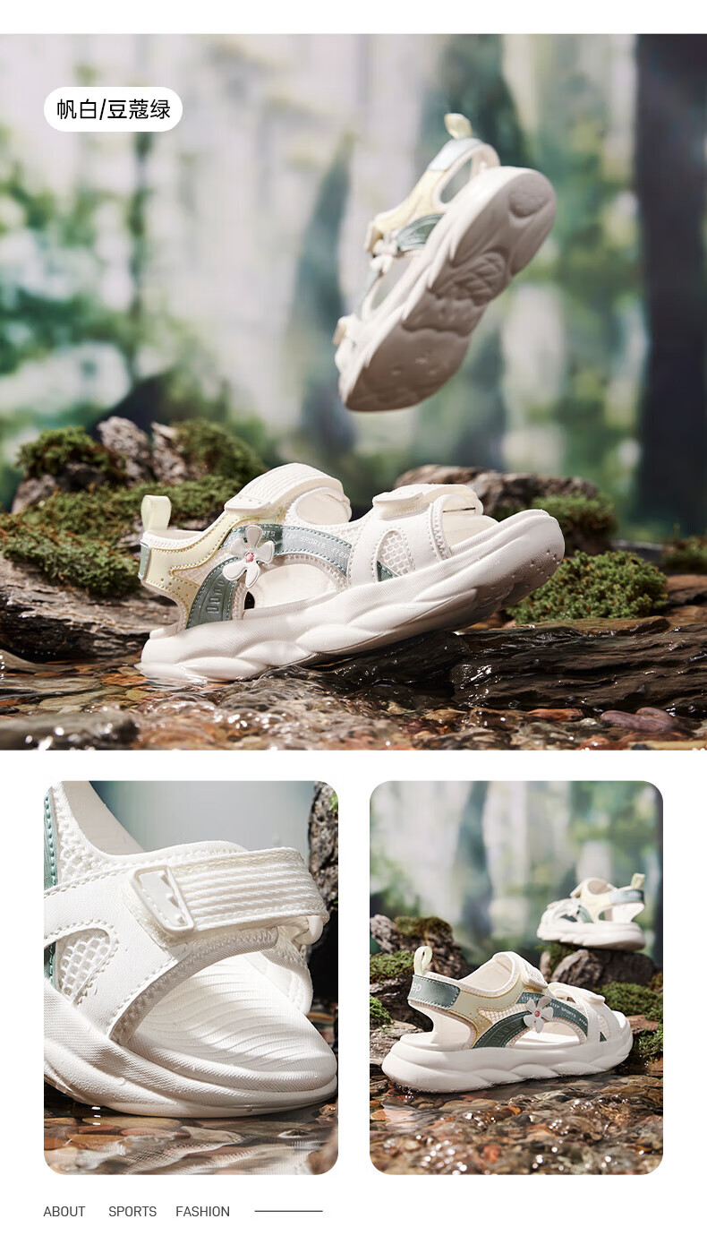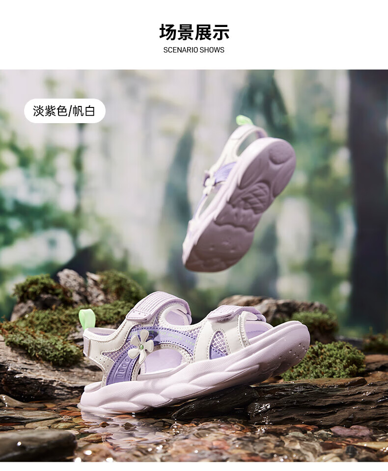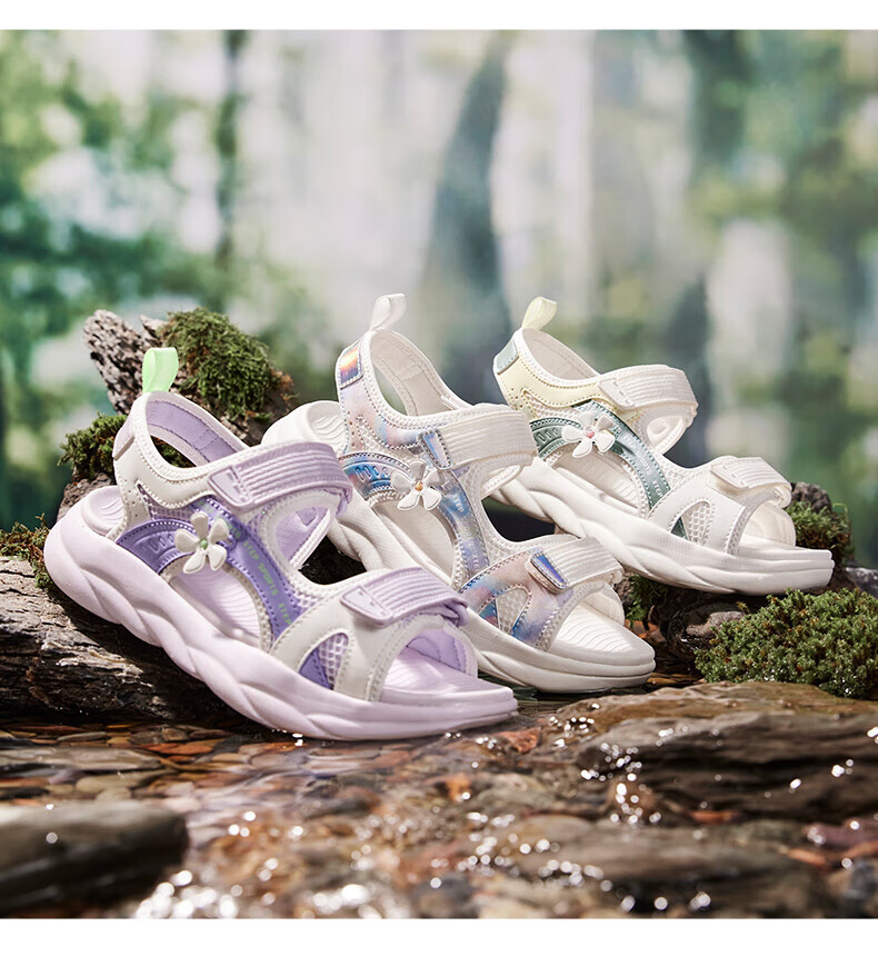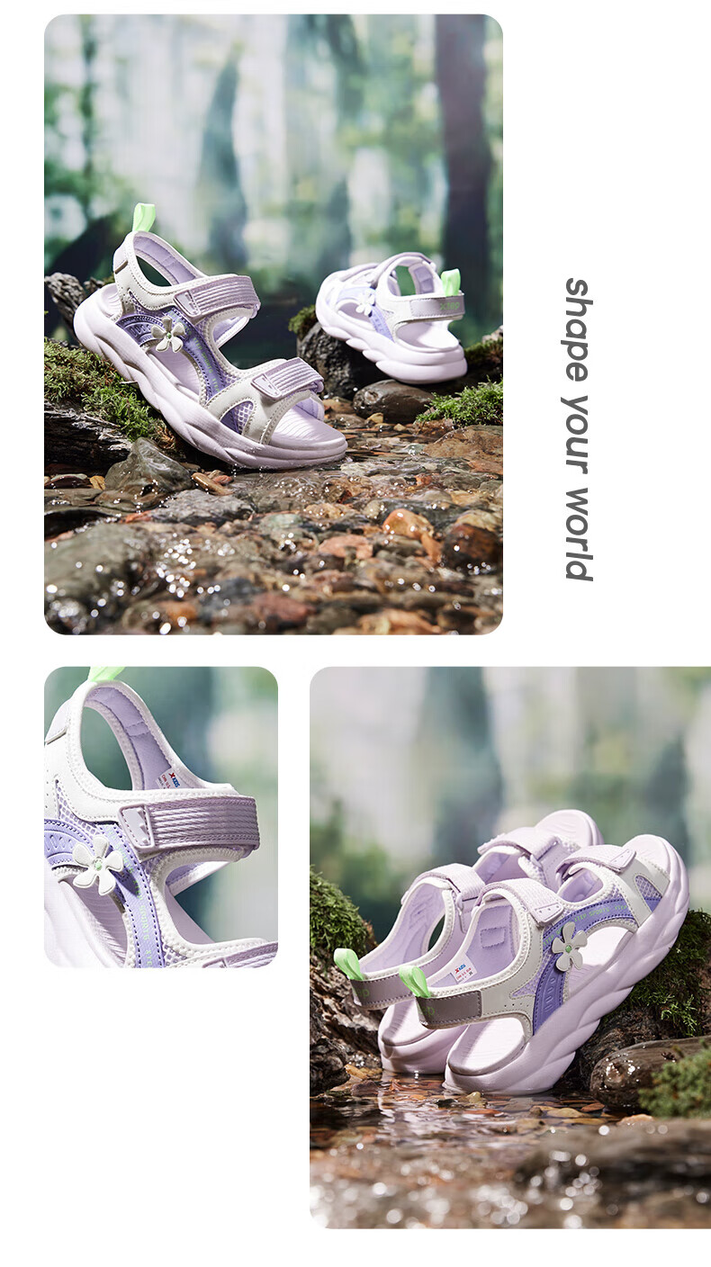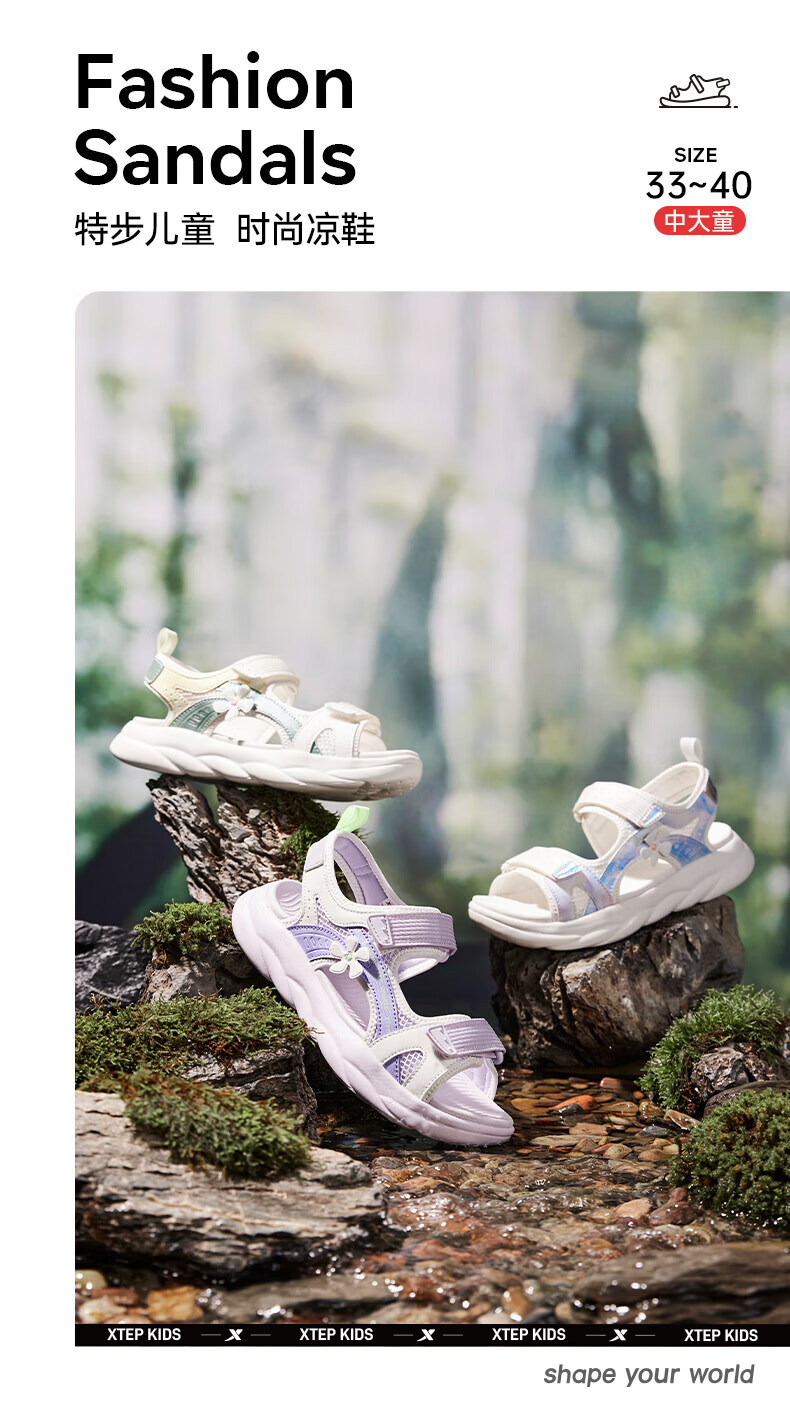 Xtep children's sports sandals for big children and girls in summer new open-toe sandals camouflage contrast sandals beach shoes lilac/sail white 33