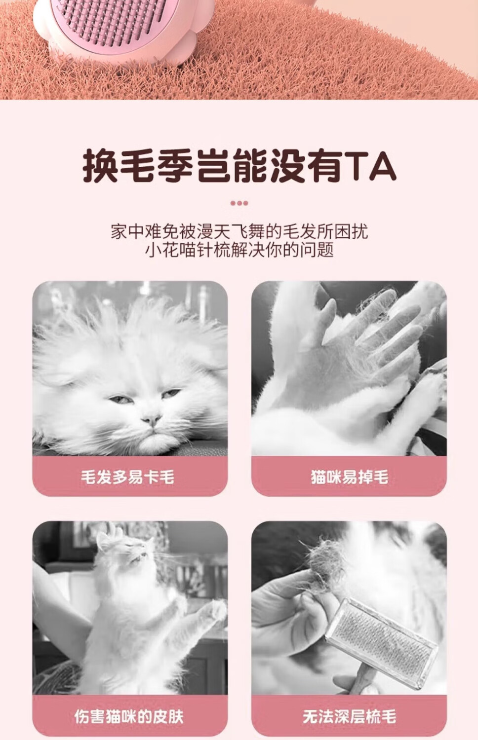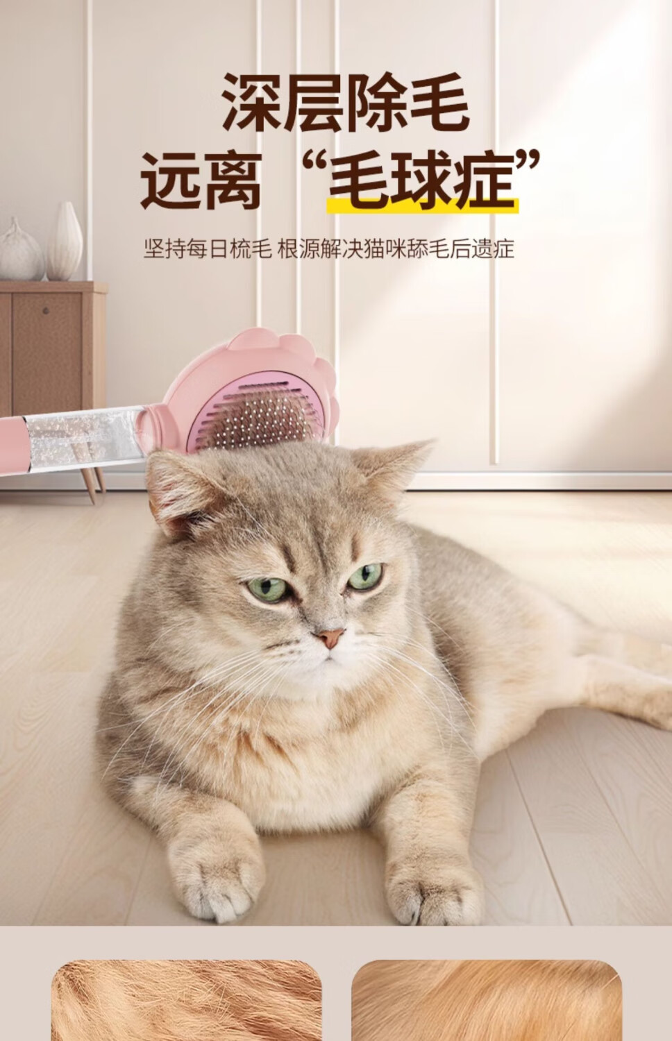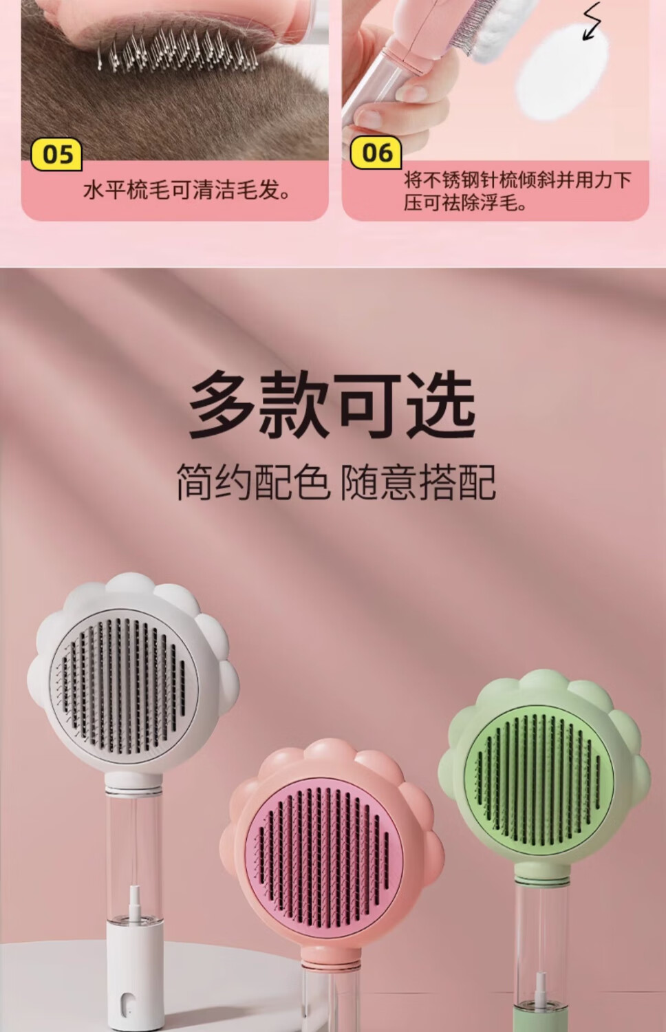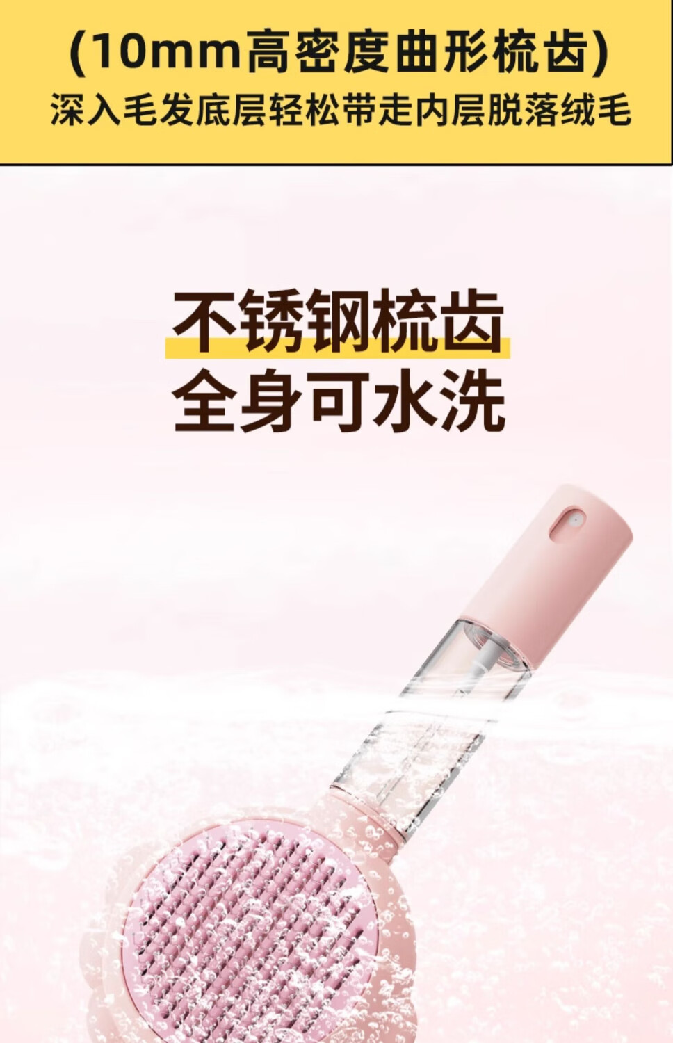 Bellega pet spray massage comb, no bathing, special anti-flying cat comb for cat and dog hair, spray water to remove floating hair brush artifact, pink-spray type