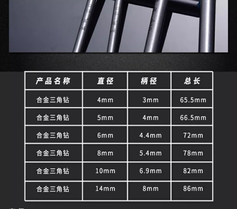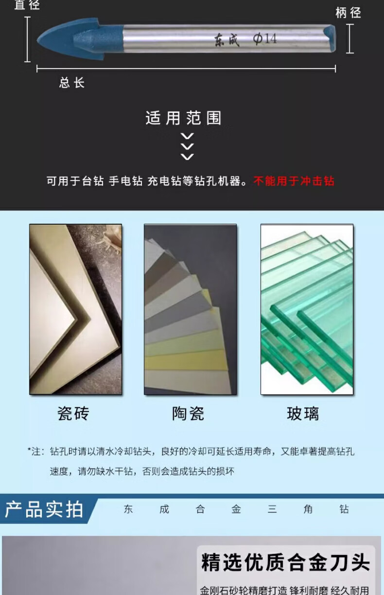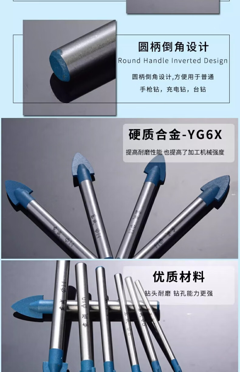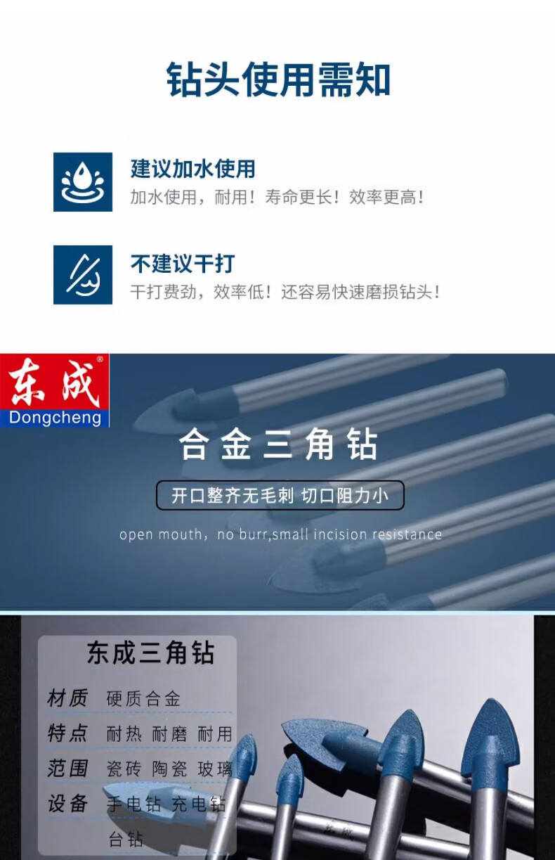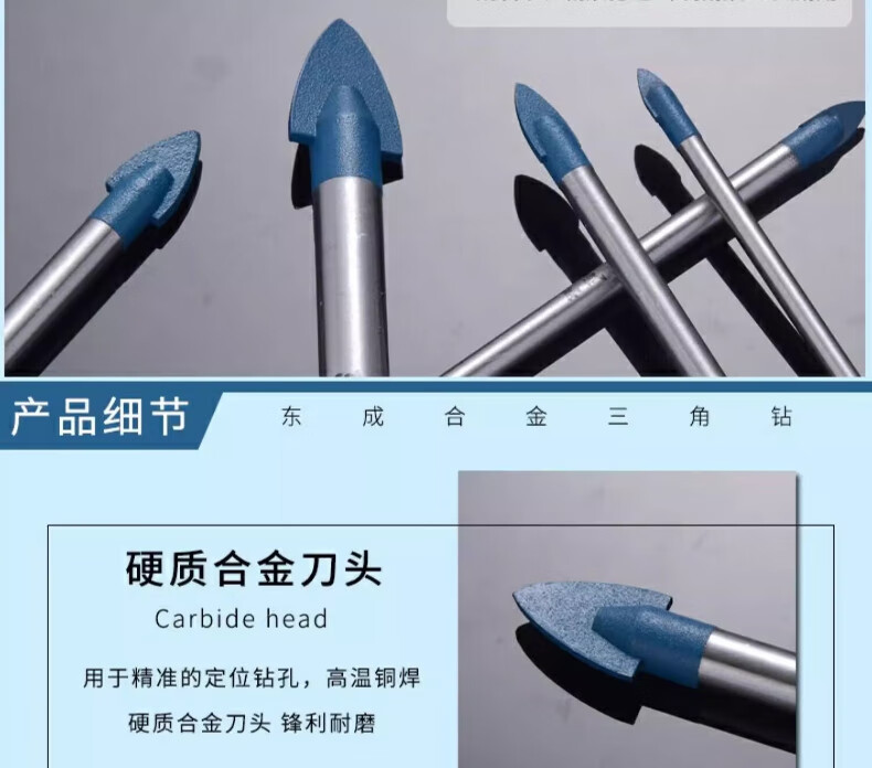 Dongcheng tile drill bit set alloy tile ceramic wall glass rotary electric drill drilling triangle drill bit 6mm ten pieces 6x72mm