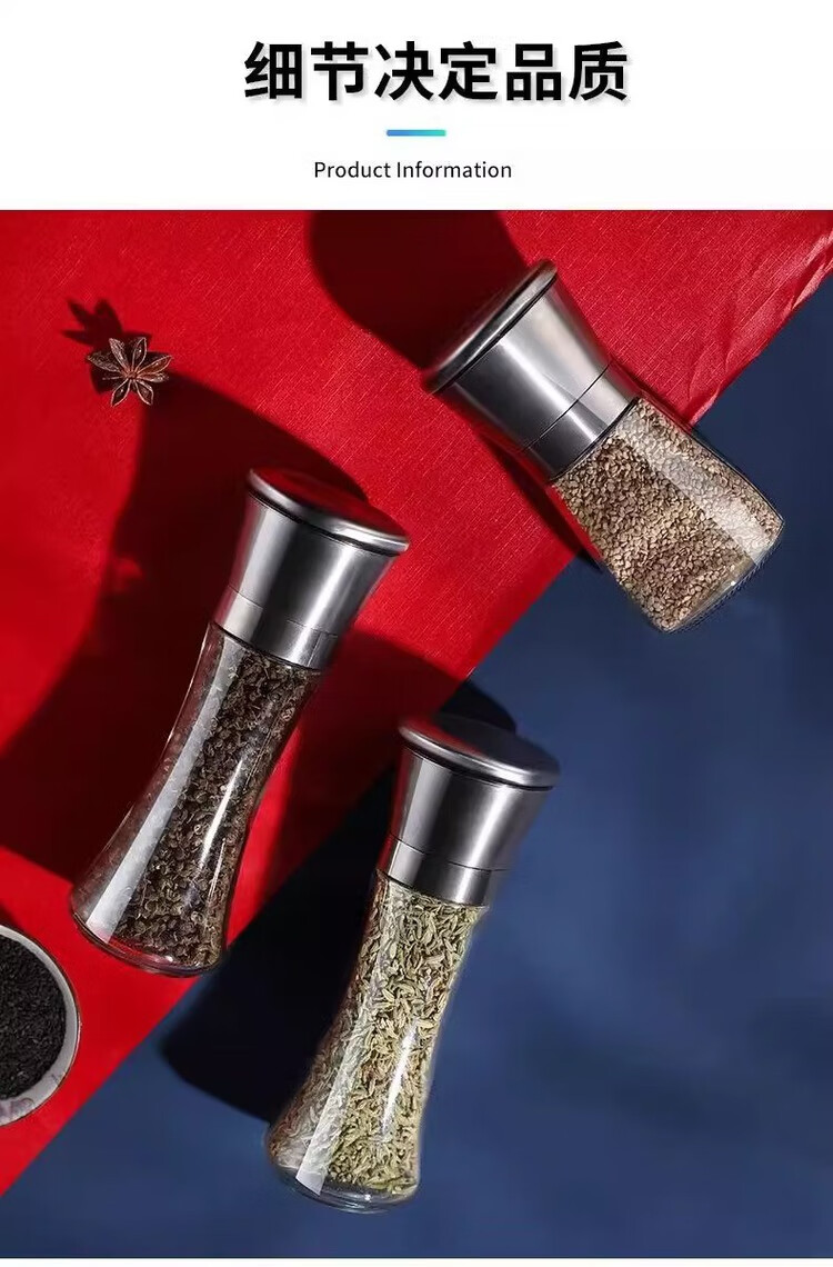 Fu Xifeng pepper grinder manual peppercorn grinding bottle black and white pepper grinding artifact household seasoning bottle seasoning grinder upgraded stainless steel lid high model 2 pieces 0ml