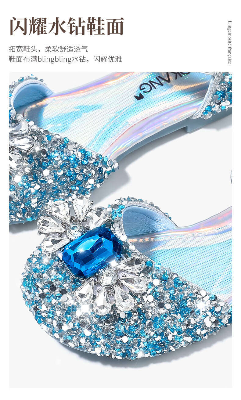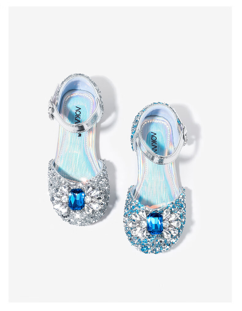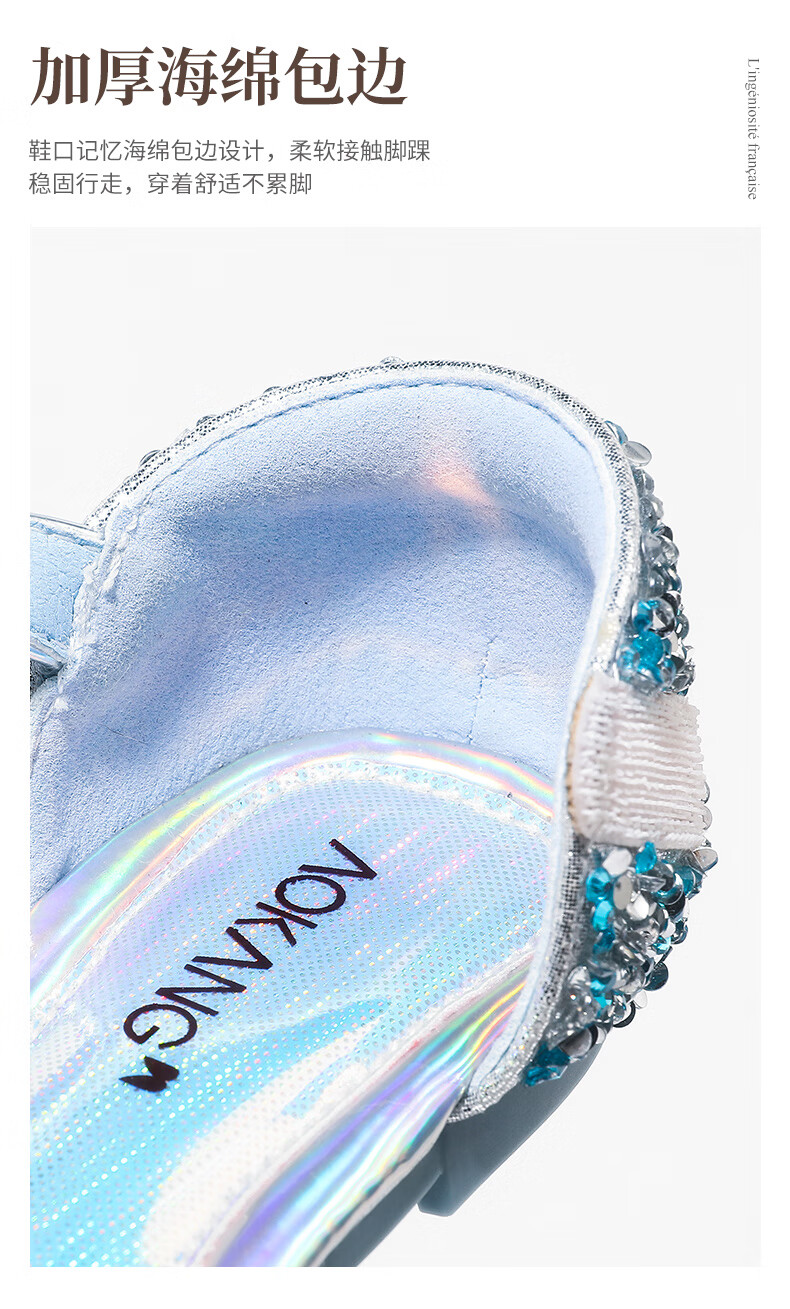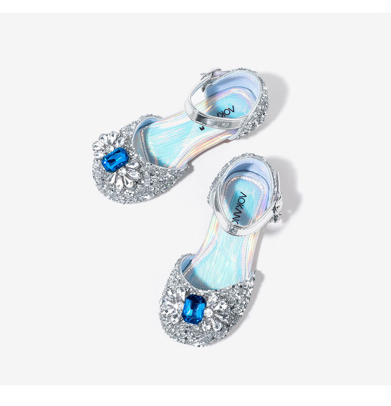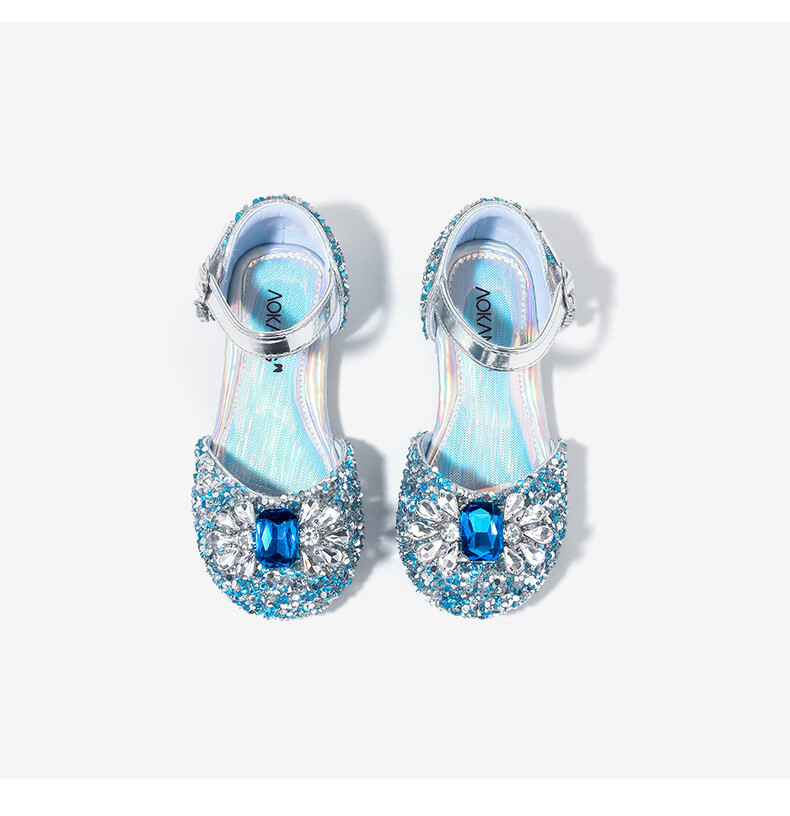 Aokang Aokang children's shoes girls crystal shoes 2025 summer new style Princess Elsa shoes fashionable soft sole shoes girls sandals blue 26