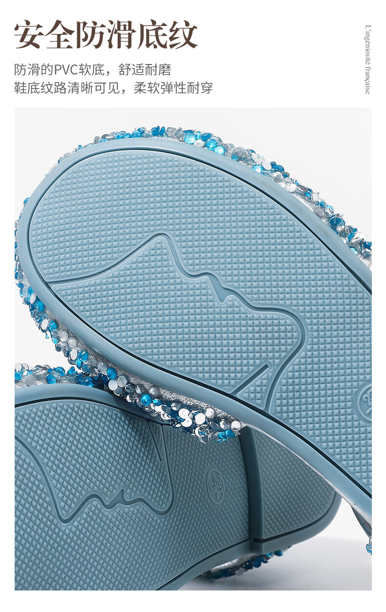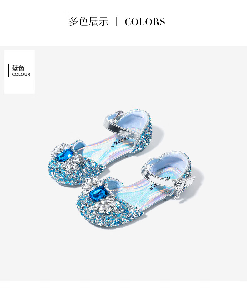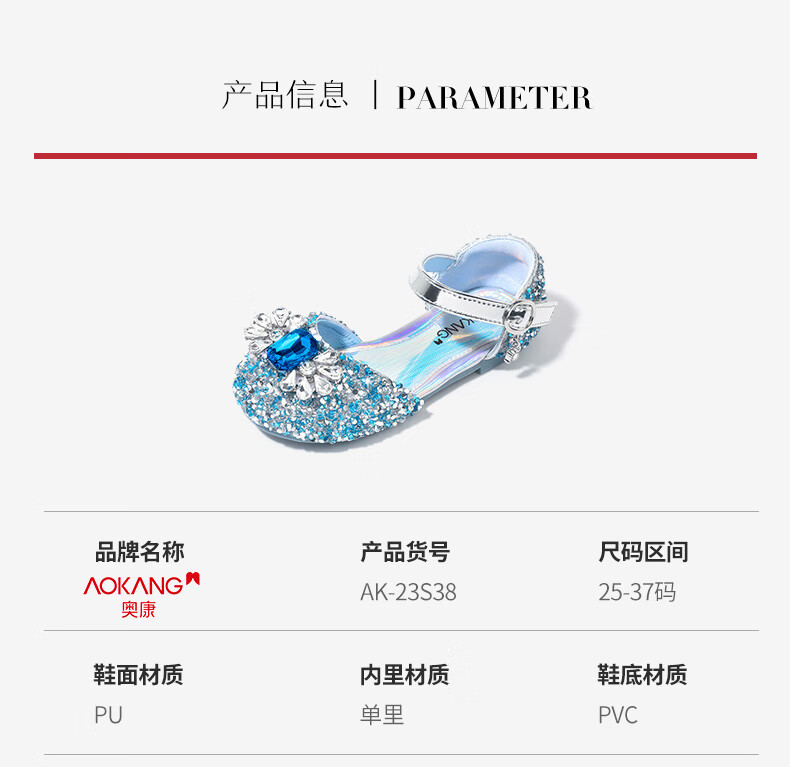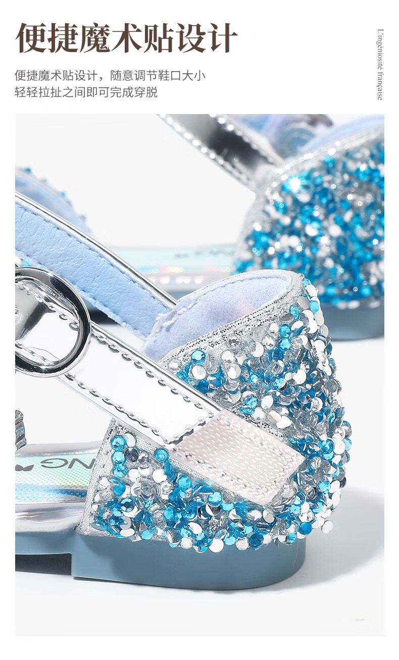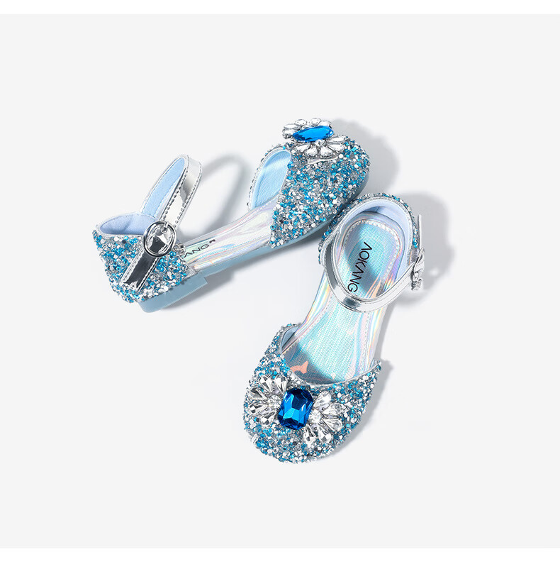 Aokang Aokang children's shoes girls crystal shoes 2025 summer new style Princess Elsa shoes fashionable soft sole shoes girls sandals blue 26