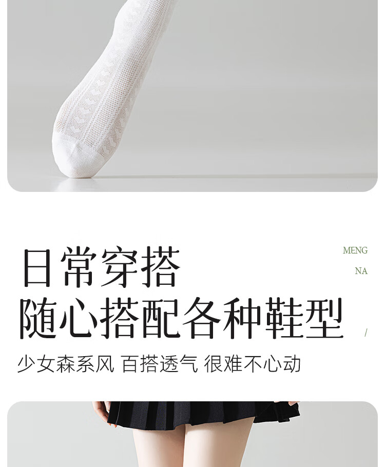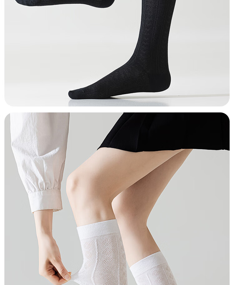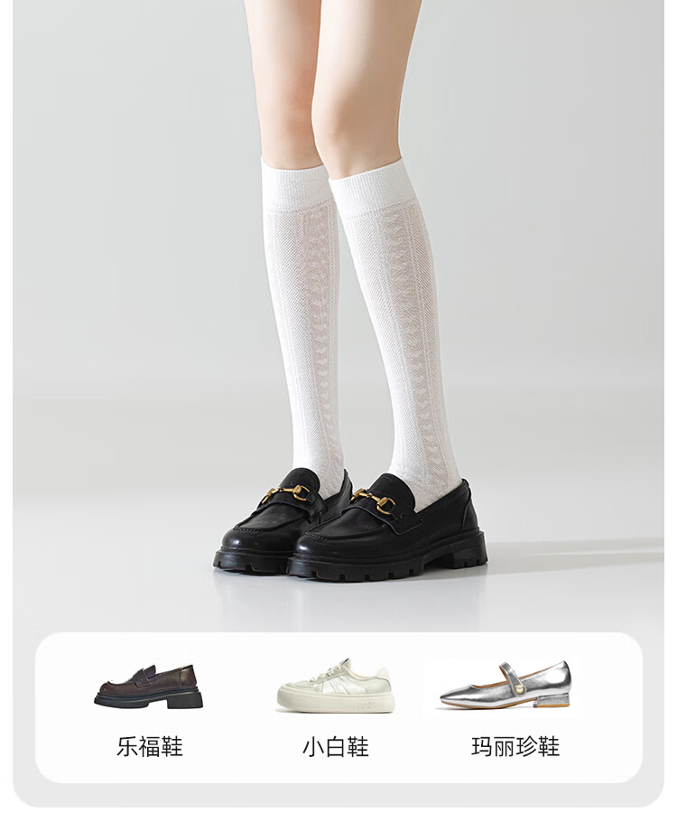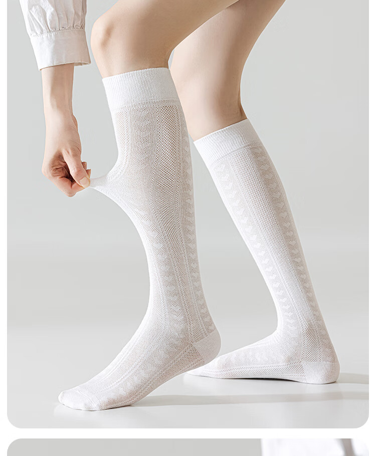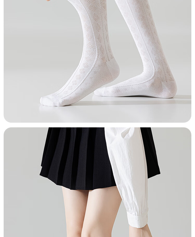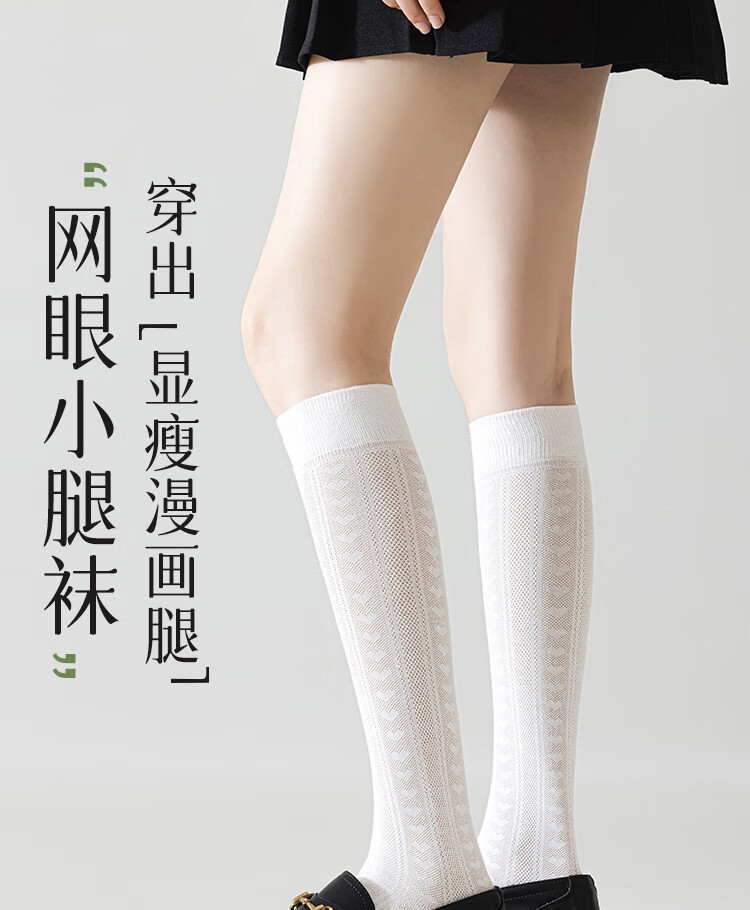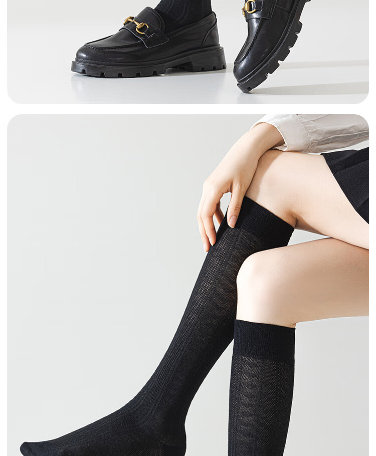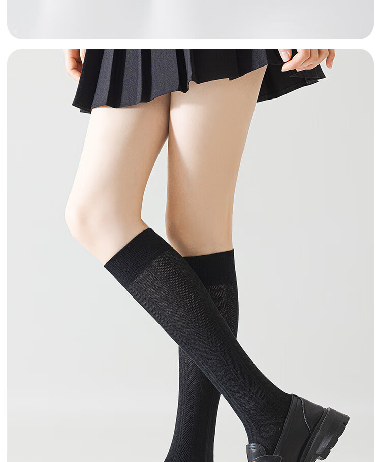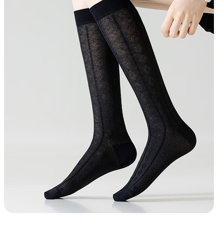 Mona Socks Women's Spring and Summer Breathable Mesh Calf Socks Fashionable Stockings Over-the-Knee Socks Japanese and Korean Trendy Long Stockings - Black