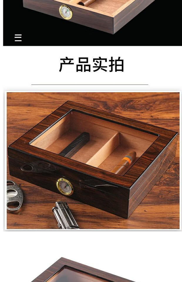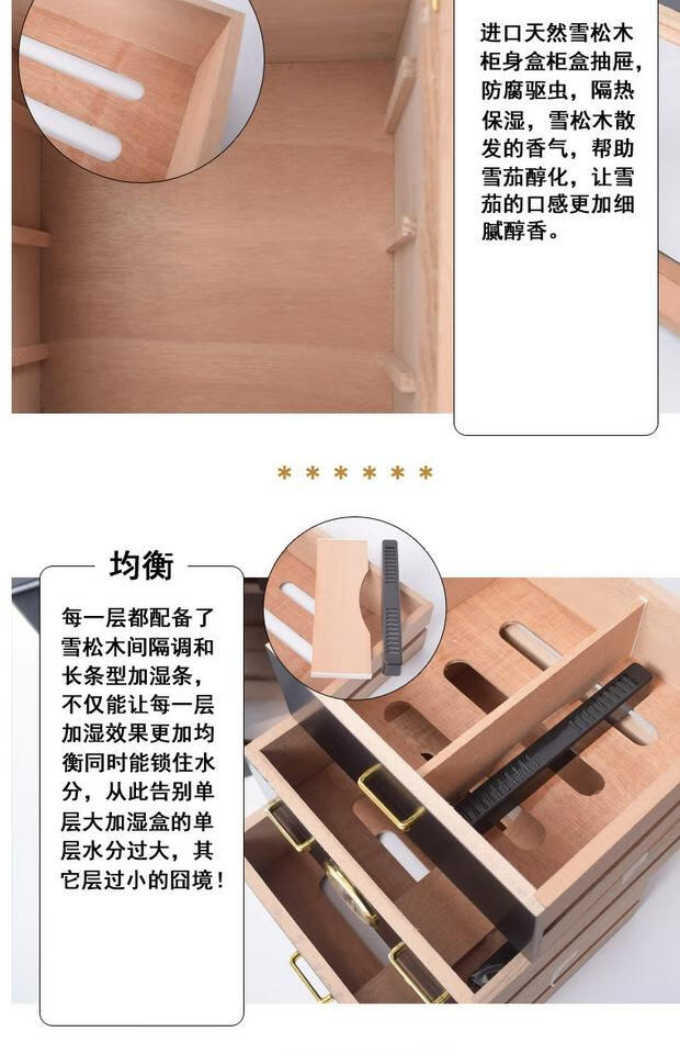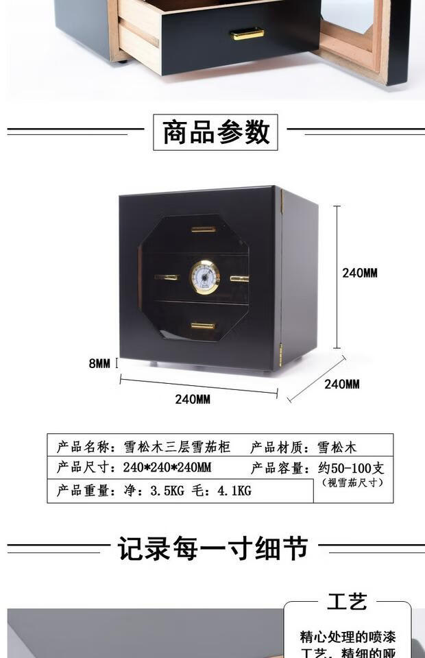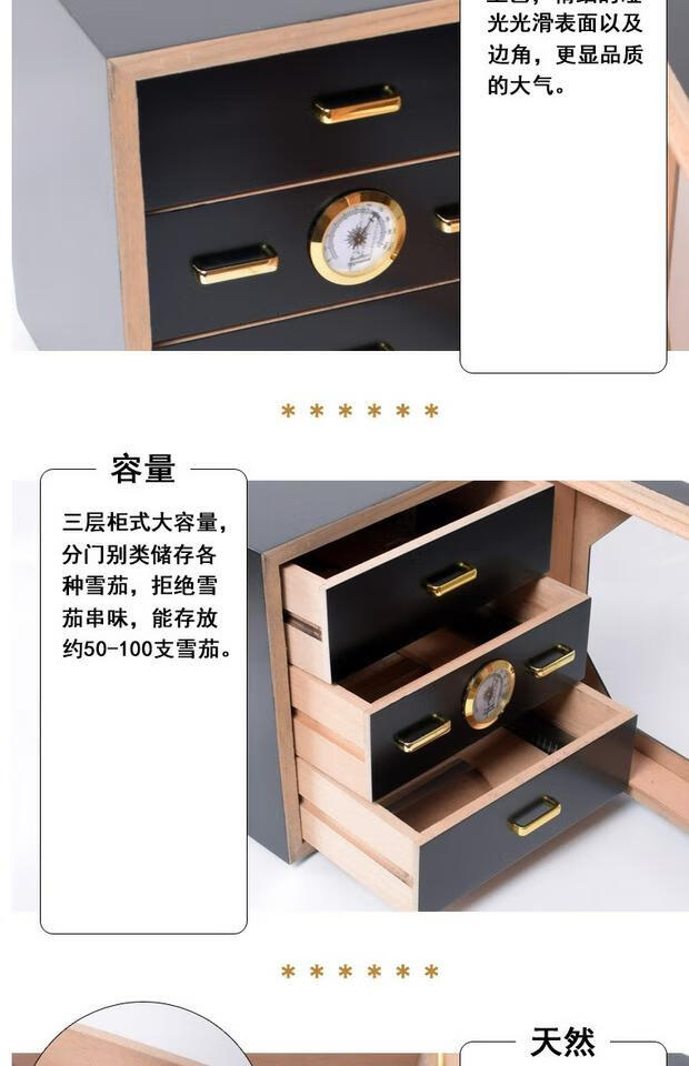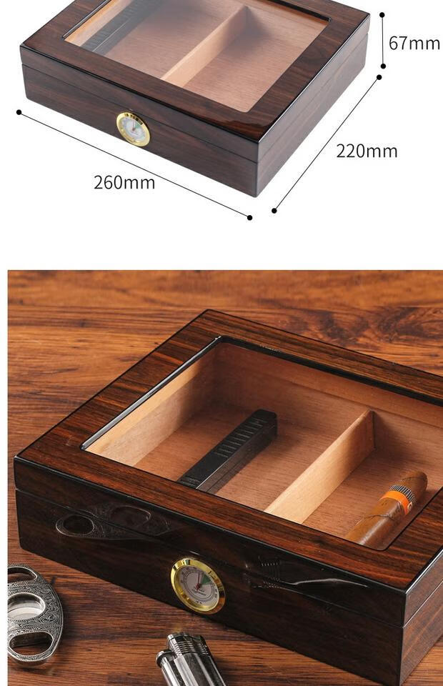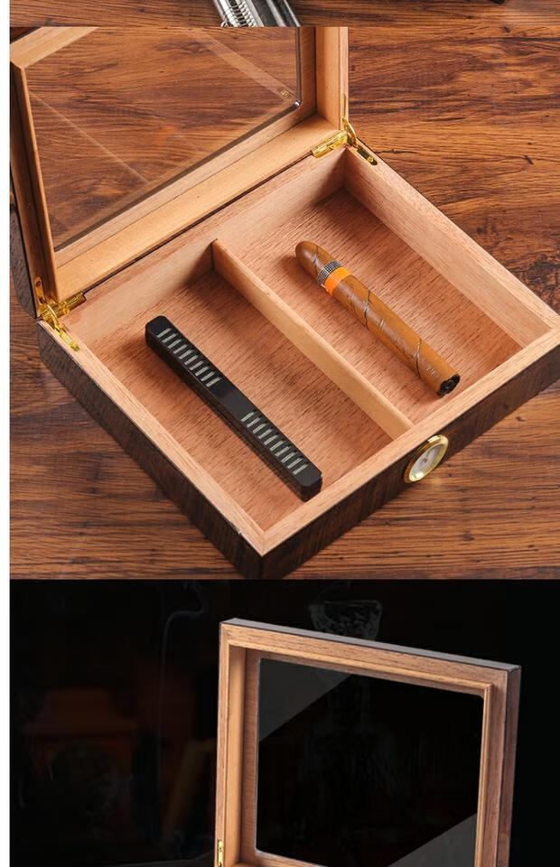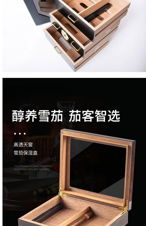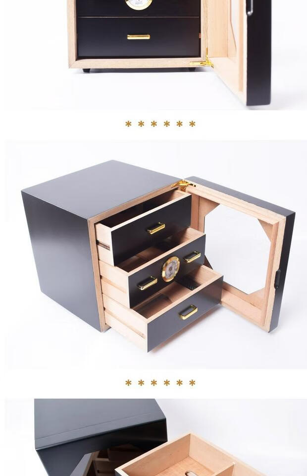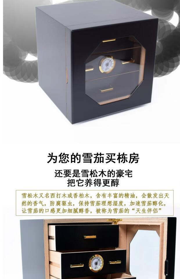 Set of Hakka cigar humidor three-layer small household cigar cabinet cigar box Spanish cedar wood aging box storage box transparent window holds about 30 cigars