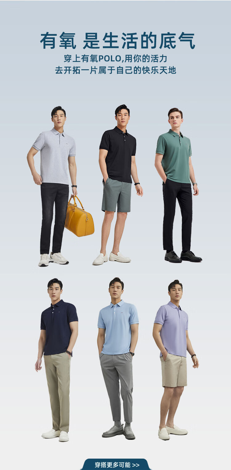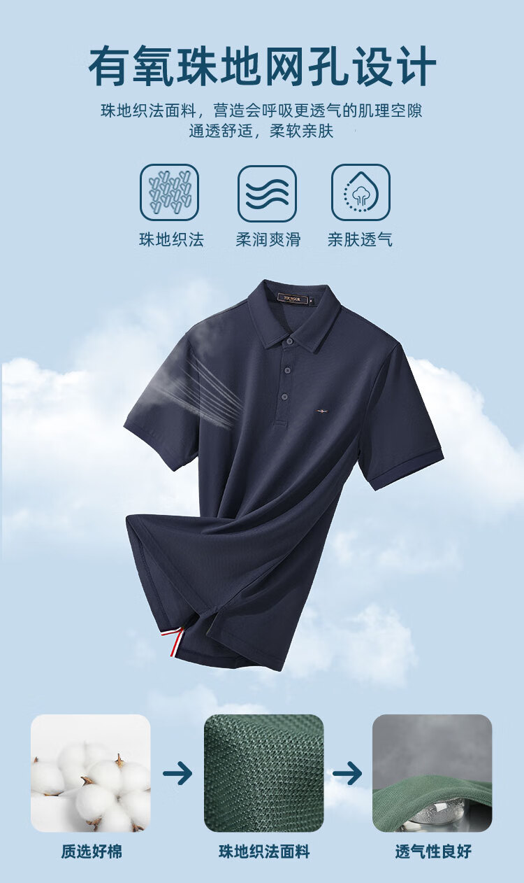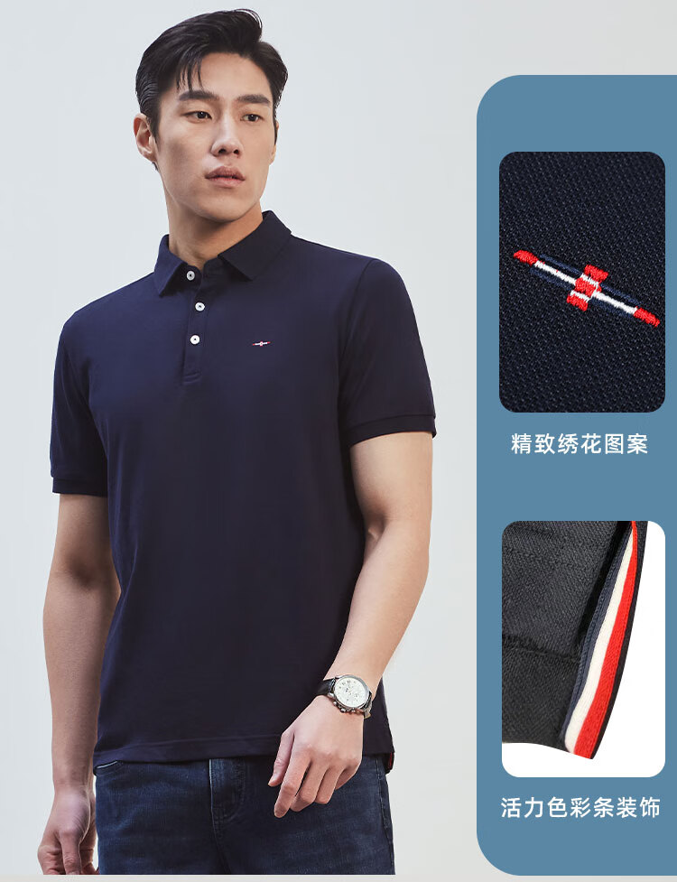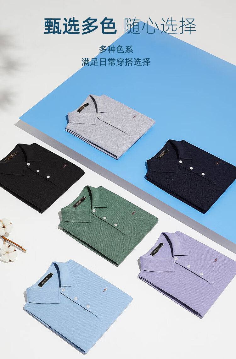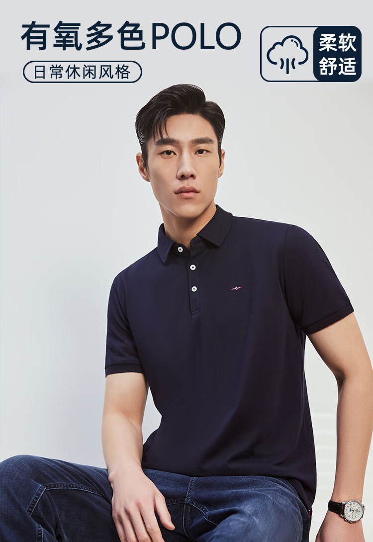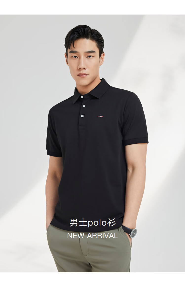 YOUNGOR short-sleeved polo shirt men's lapel shape-protective collar design cotton polyester fabric feels comfortable new polo shirt VSPC533113ACA black XL