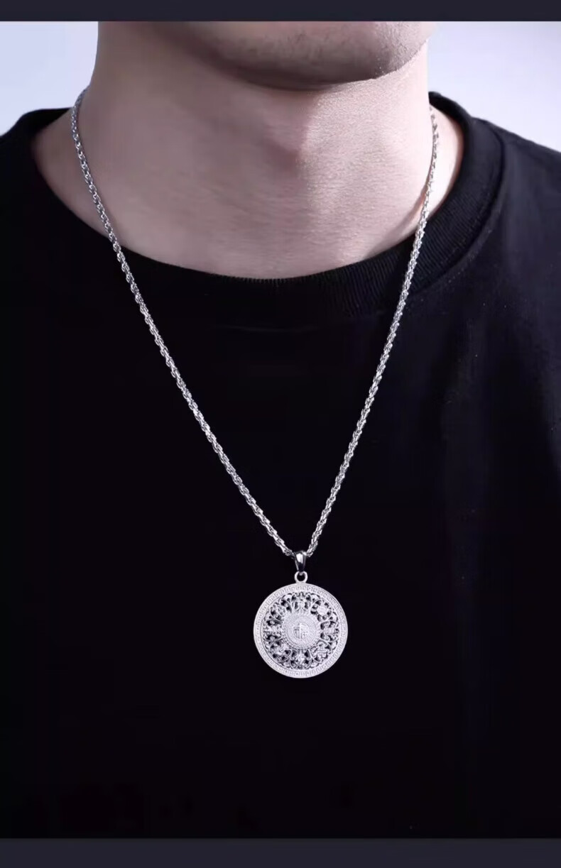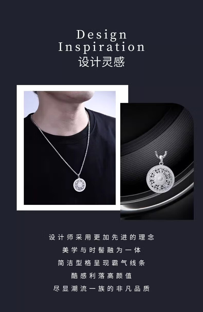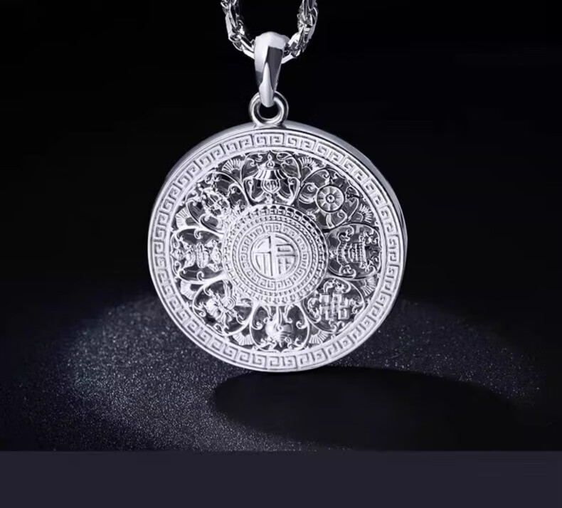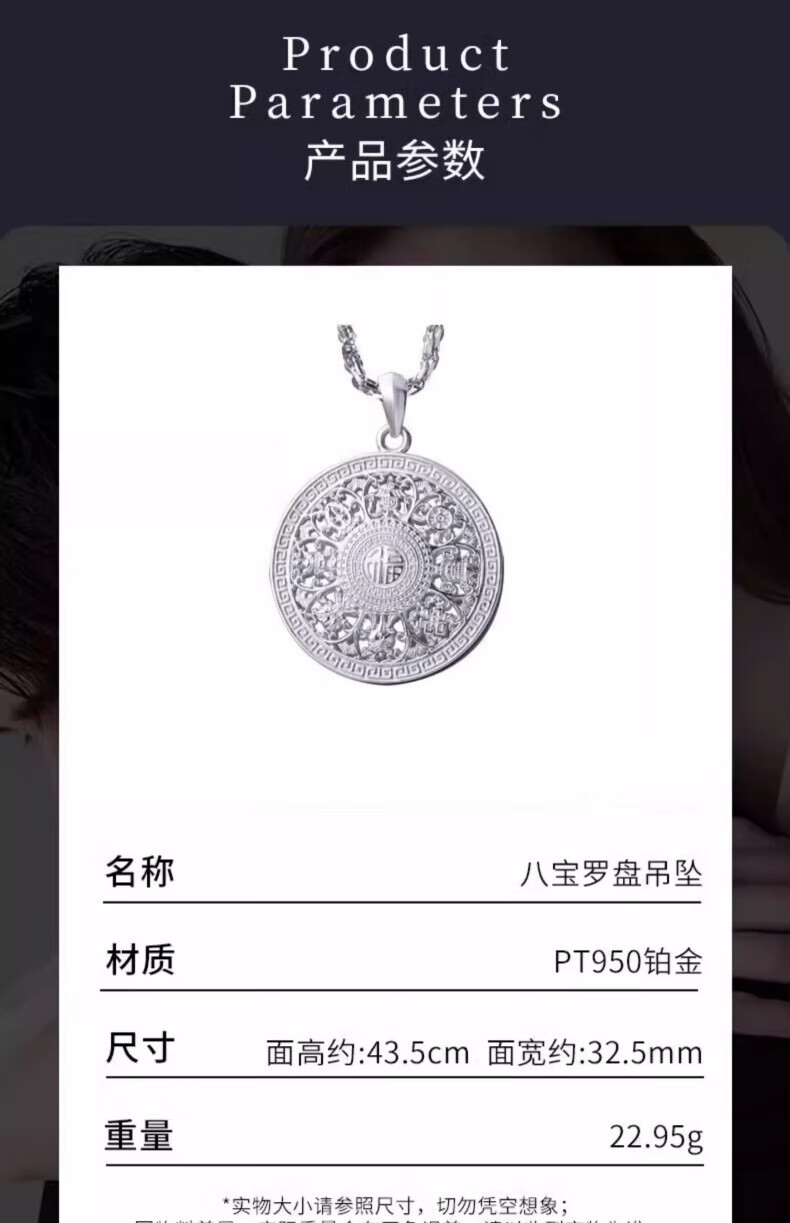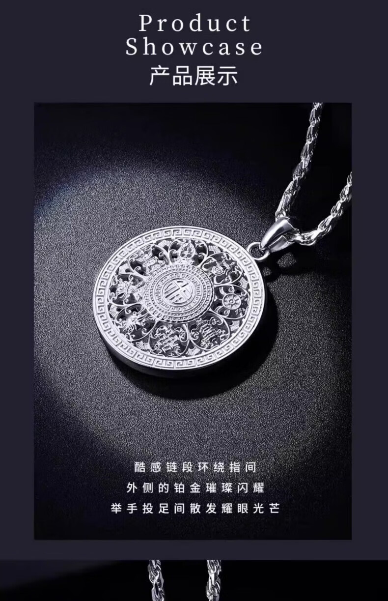 Xijin Jewelry Platinum PT950 Eight Treasures Compass Pendant for Men and Women Platinum Round Pendant Fashionable and Simple Gift for Boyfriend 35.26g (With Black String)